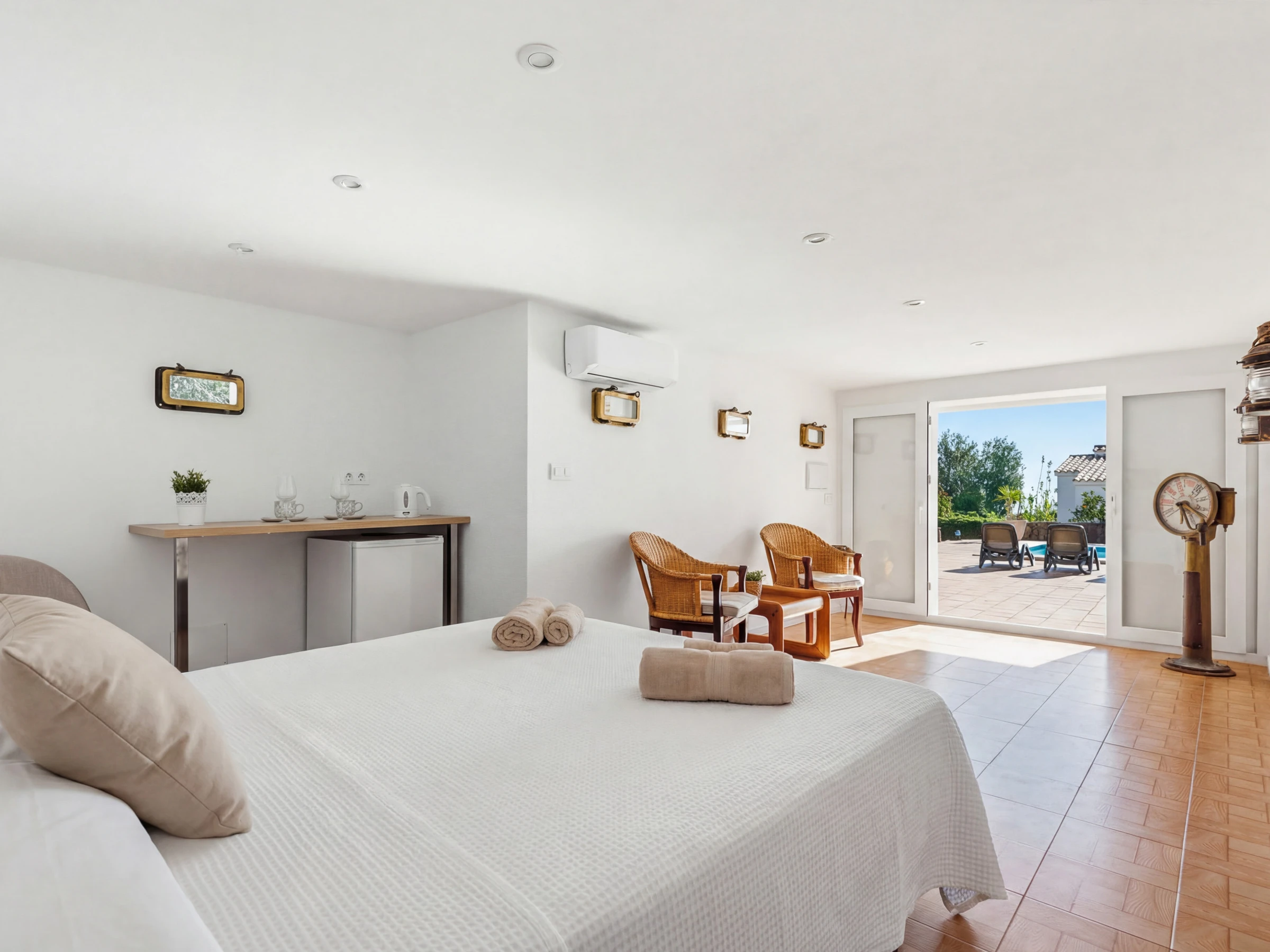 Der Innenbereich ist vollständig mit Klimaanlage im Wohnzimmer und einigen Zimmern ausgestattet, was perfekt für die heißesten Tage ist. Die separate Küche ist komplett mit Haushaltsgeräten wie Kühlschrank, Waschmaschine, Ofen, Geschirrspüler, Mikrowelle, Toaster, Kaffeemaschine und anderen Utensilien ausgestattet, die die Zubereitung von Familienmahlzeiten erleichtern werden.