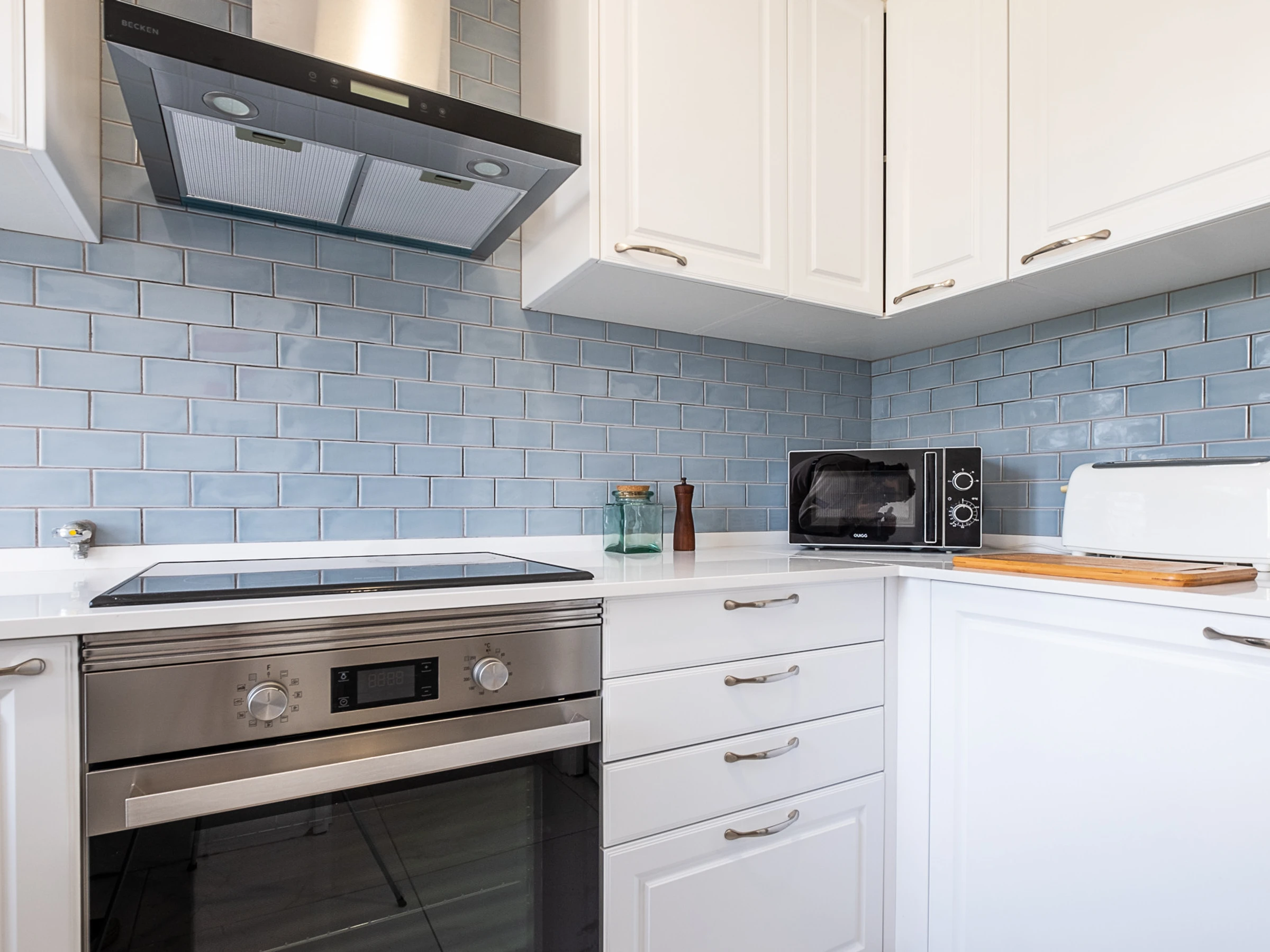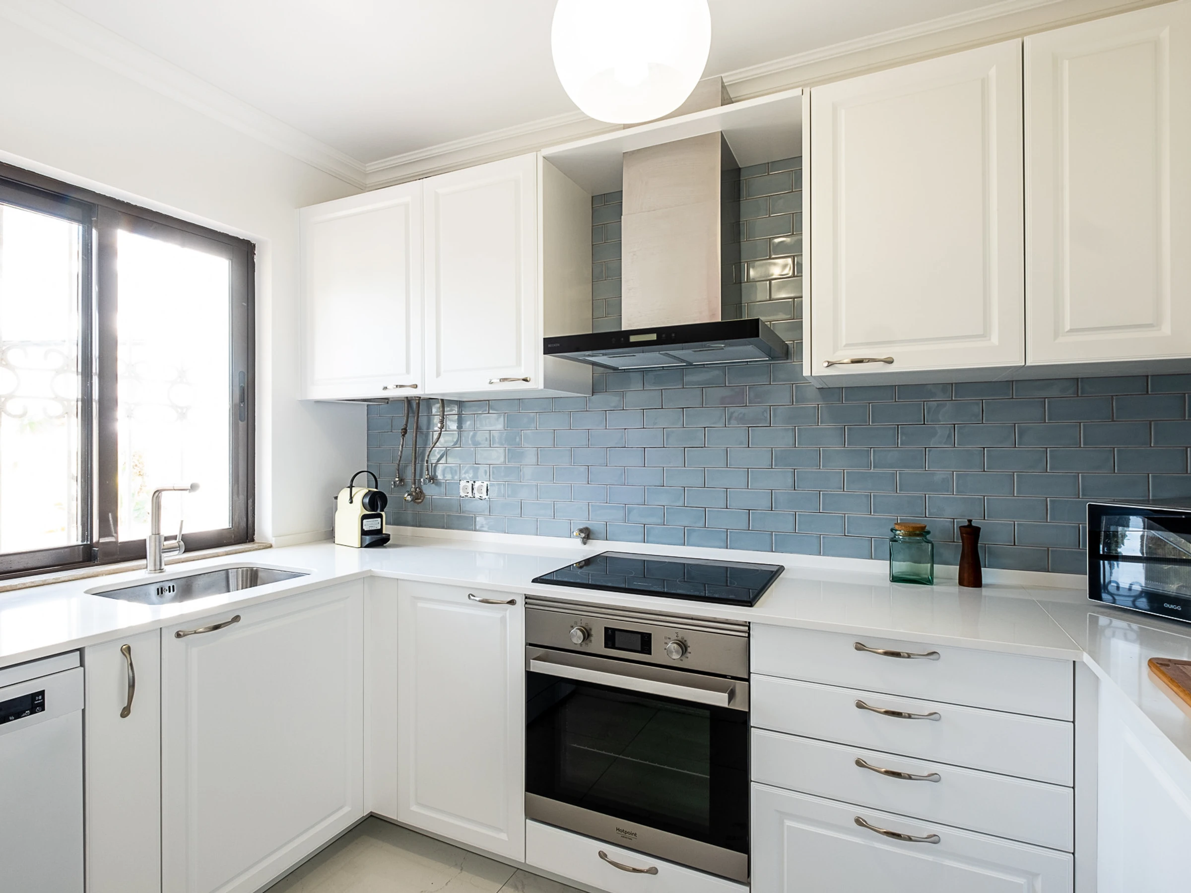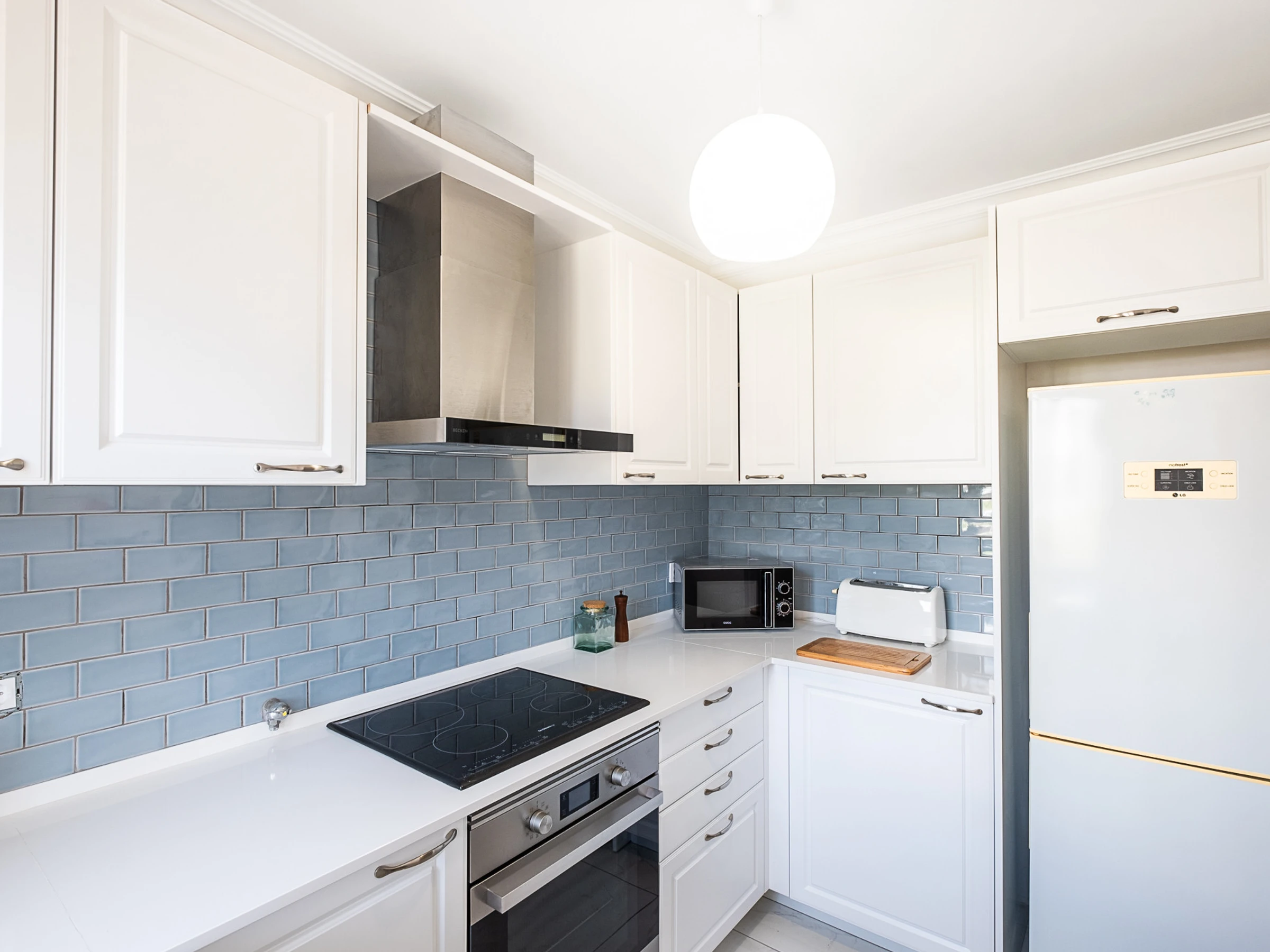 Dieses küche, mit gemixt: gas und elektrisch, ist ausgestattet in kühlschrank, mikrowelle, backofen, gefrierschrank, spülmaschine, geschirr/besteck, kaffeemaschine, toaster, wasserkocher und herdplatte.