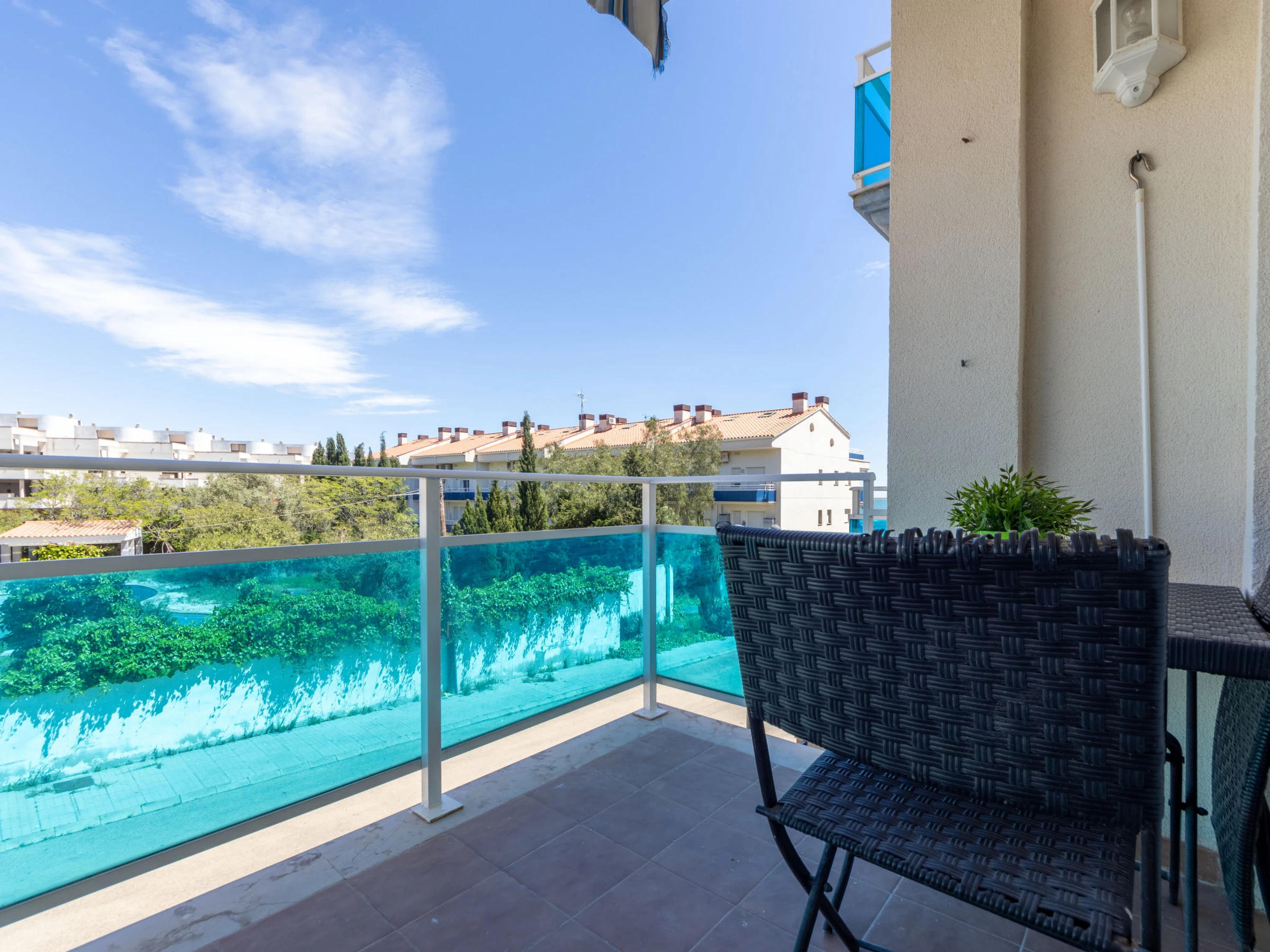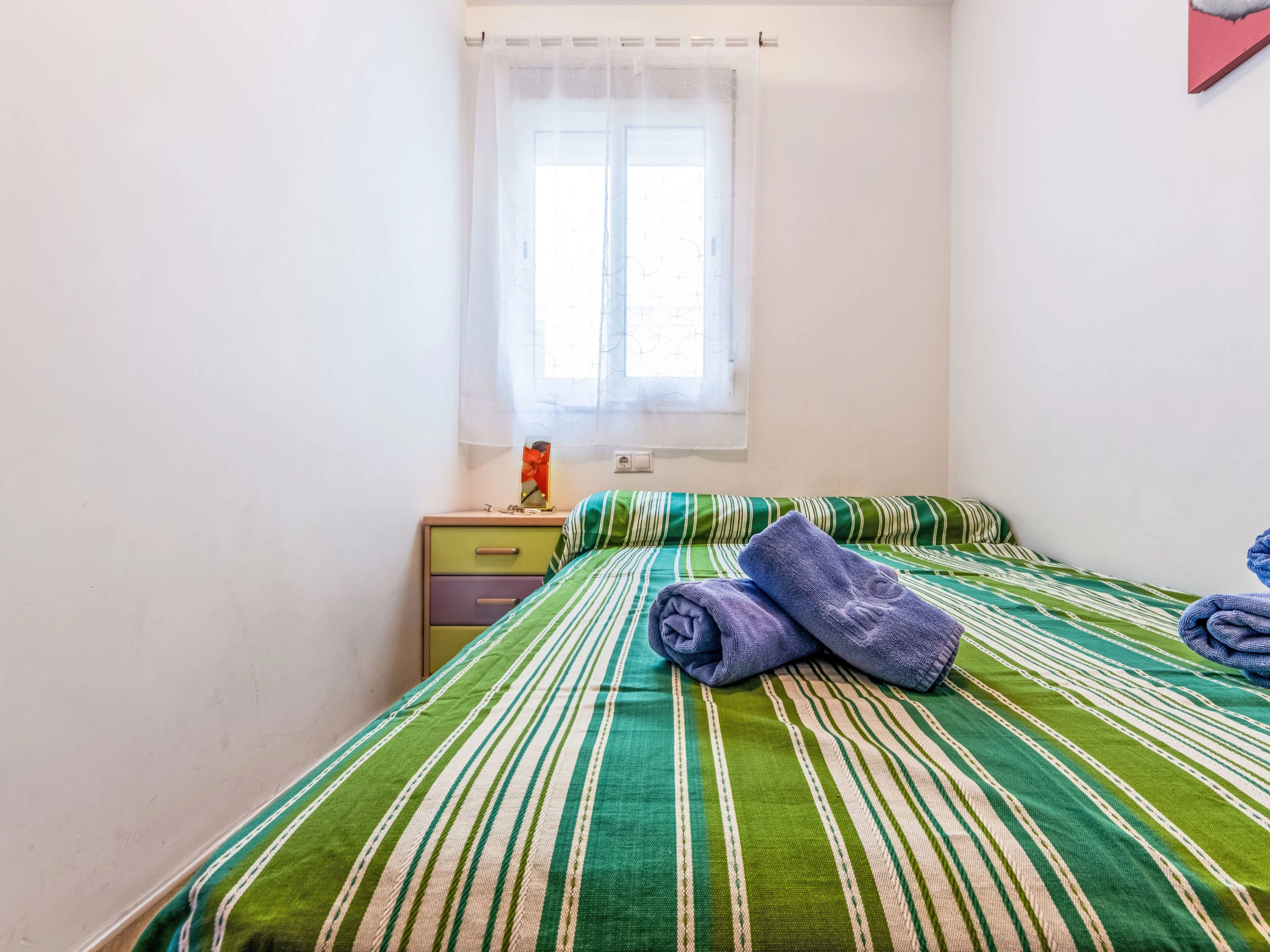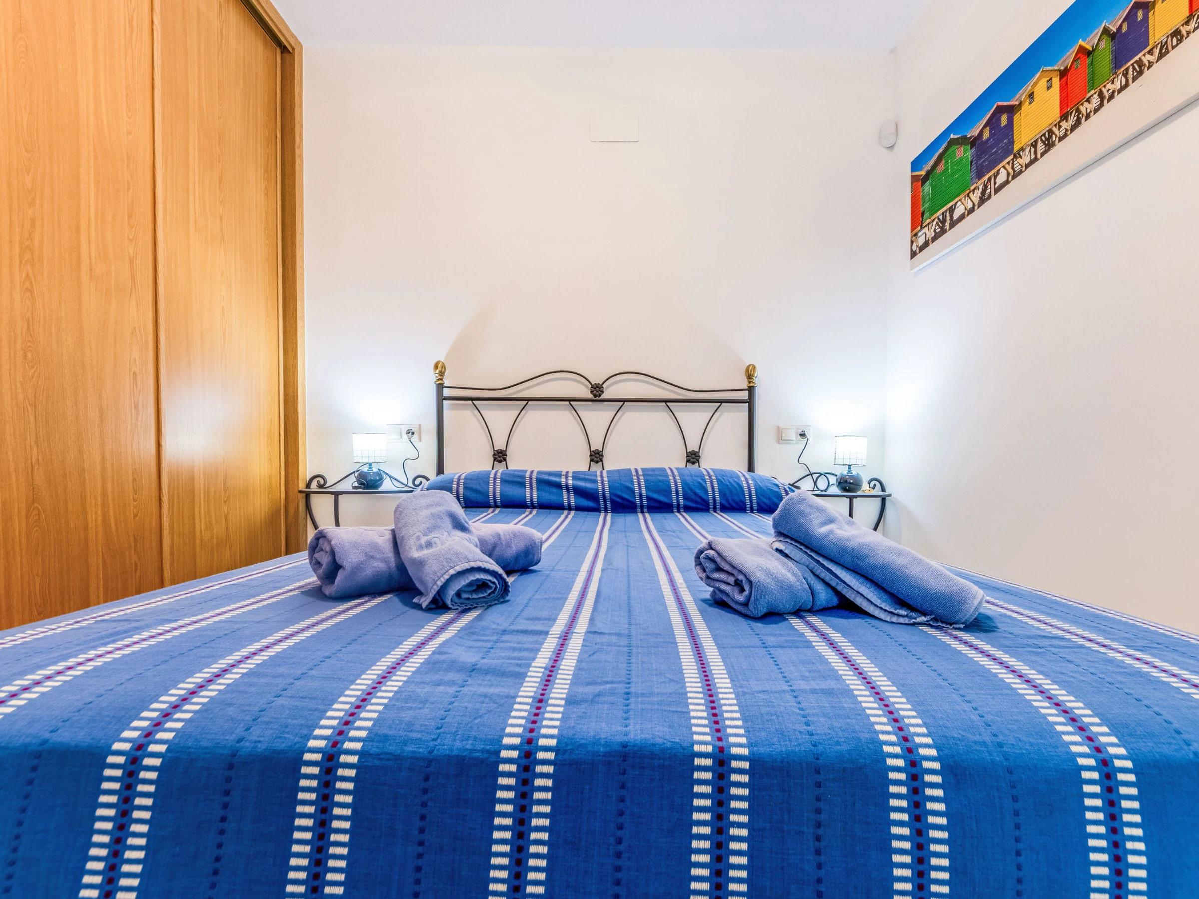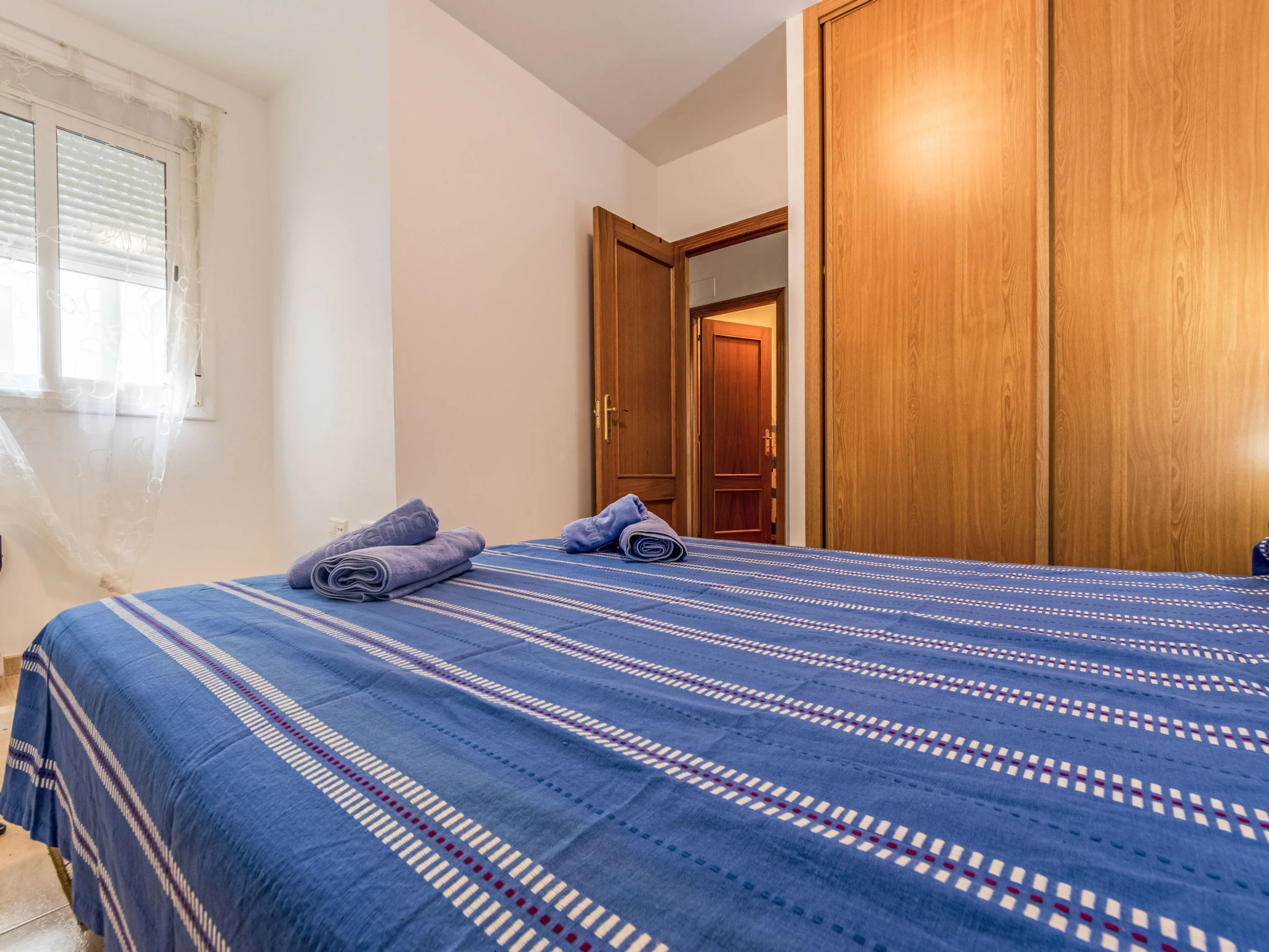 "Merida", 3-Zimmer-Wohnung 43 m2. Rustikal eingerichtet: Wohn-/Esszimmer mit Digital-TV, Klimaanlage und Warmluftheizung. Ausgang zum Balkon. 1 Zimmer mit 1 franz. Bett (1 x 150 cm, Länge 190 cm). 1 Zimmer, ohne Schrank mit 1 franz. Bett (1 x 135 cm, Länge 190 cm). Offene Küche (Backofen, 3 Glaskeramikplatten, Toaster, Wasserkocher, Mikrowelle, Tiefkühler, elektrische Kaffeemaschine). Dusche/Bidet/WC. Heizung nicht in allen Räumen. Sicht auf das Meer. Zur Verfügung: Waschmaschine, Bügeleisen, Haartrockner. Internet (WLAN, gratis). [hidden] // Reg. Nr.: ESFCTU0000430110001528920000000000000[hidden]-166
