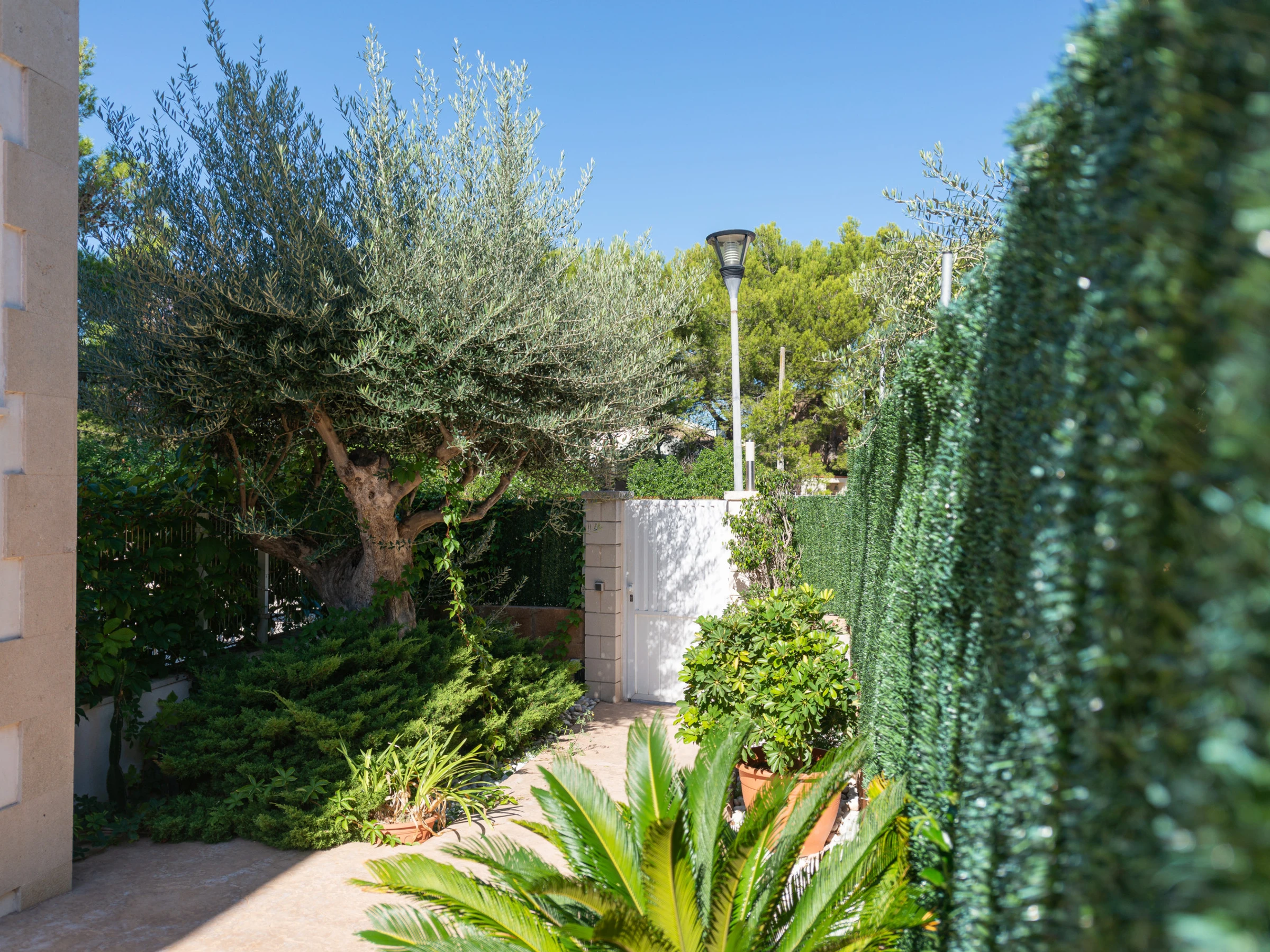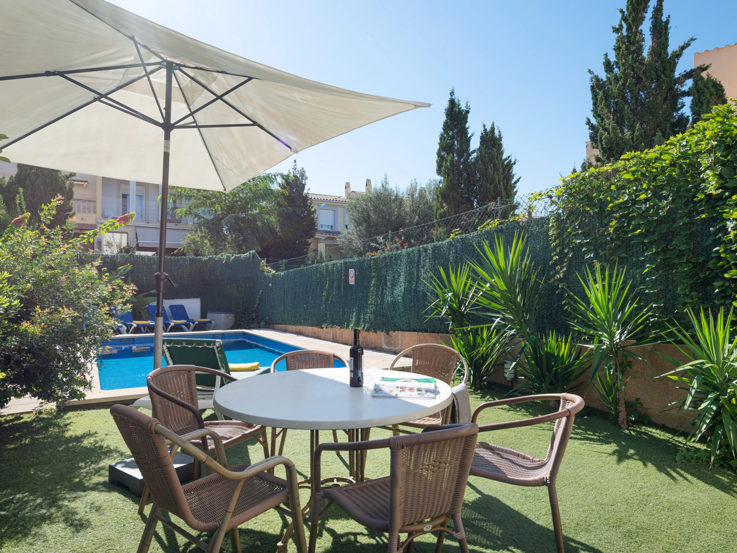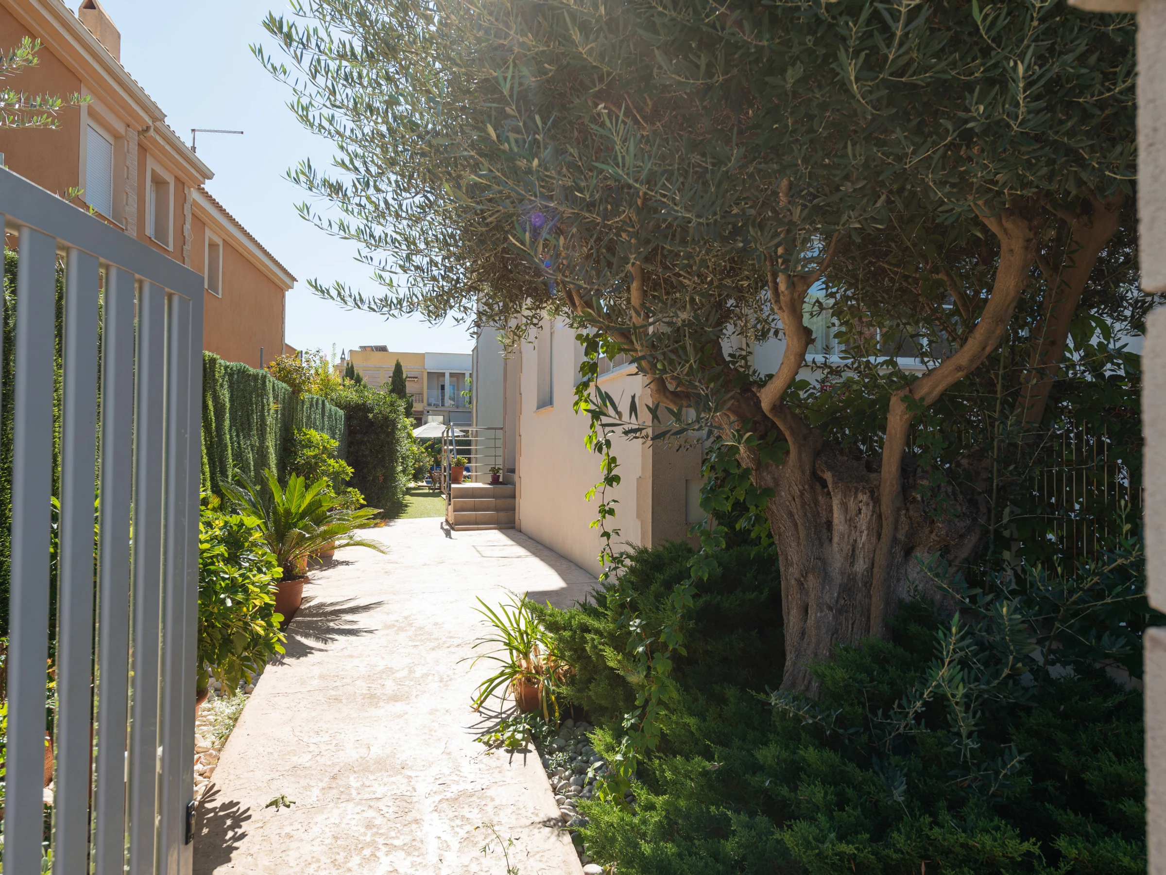 Der Zugang zum Grundstück erfolgt über den Garten mit seinem privaten Swimmingpool, der im Sommer für Abkühlung sorgt.
