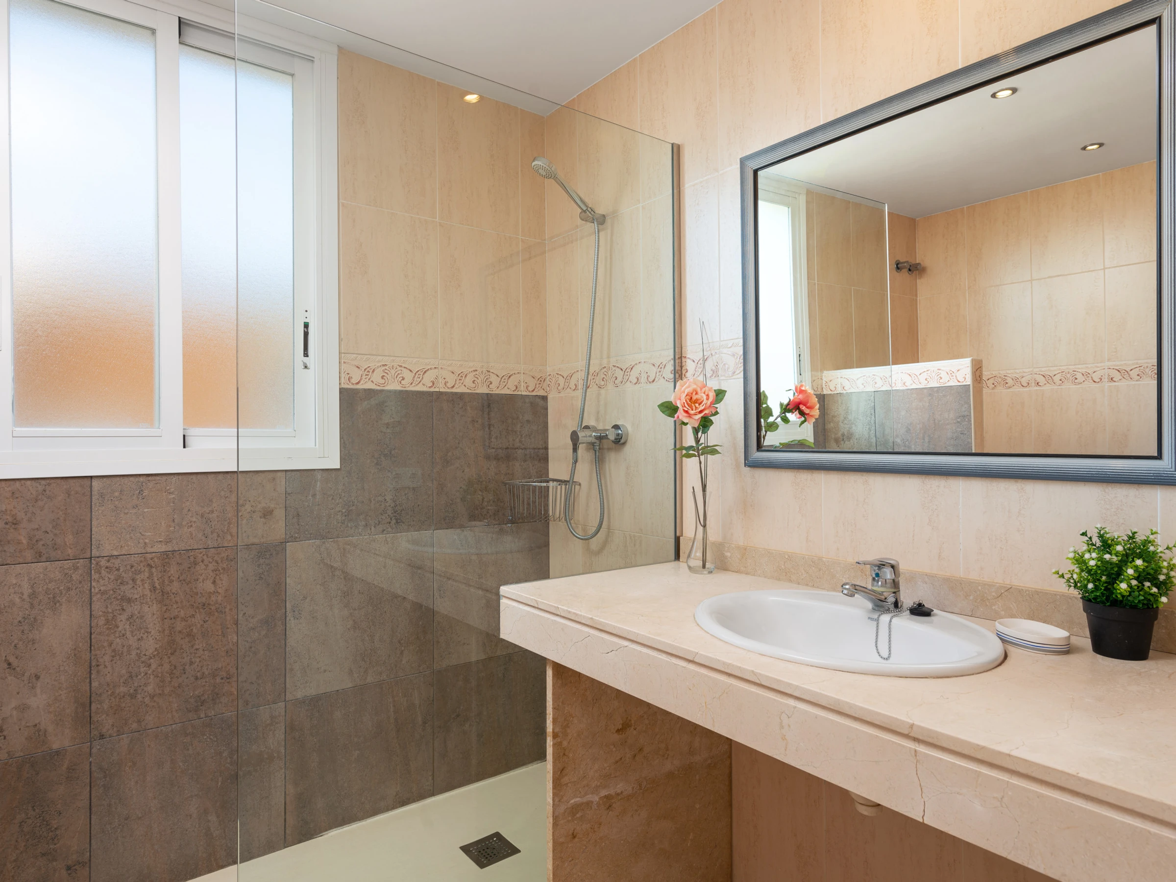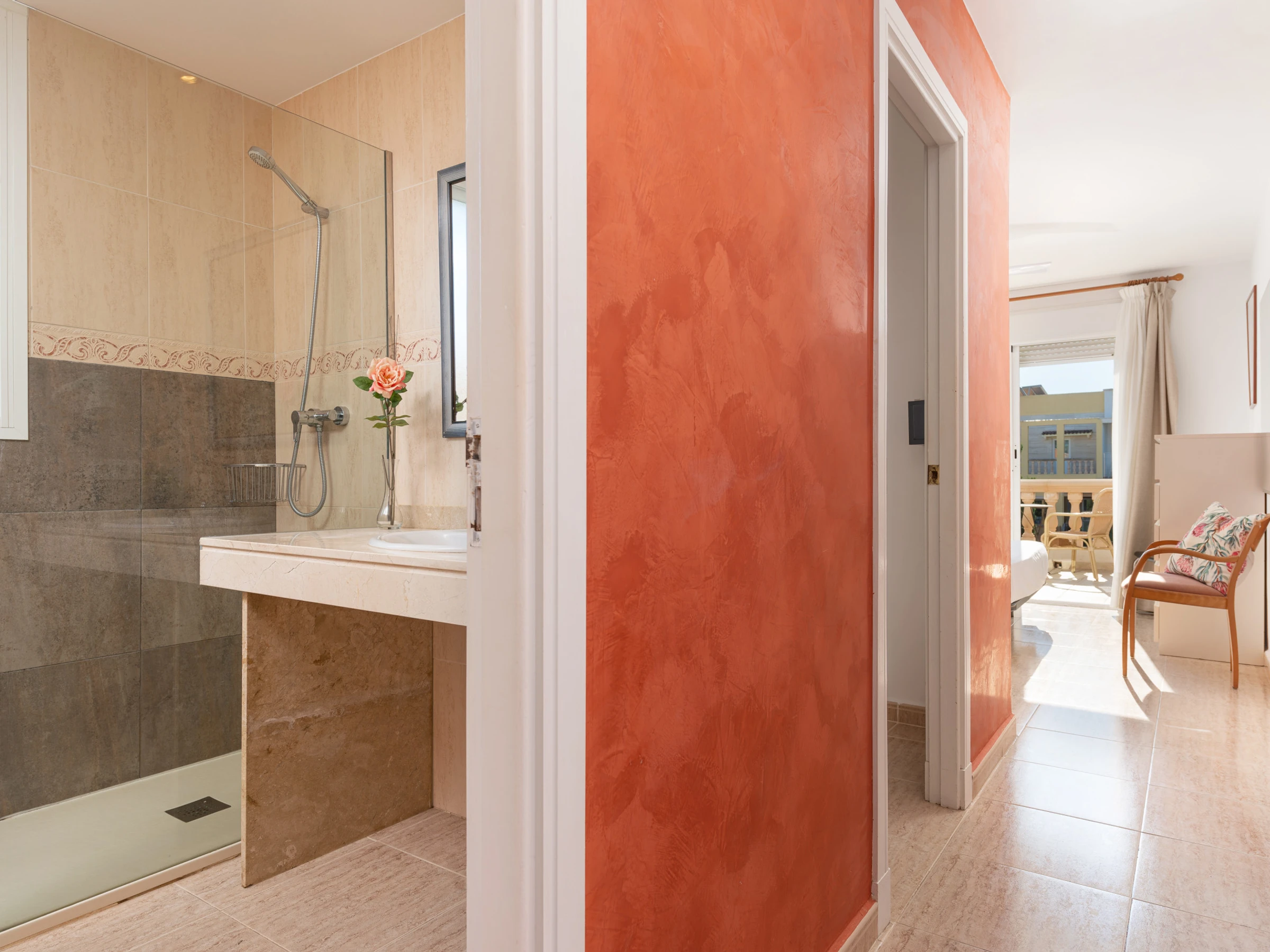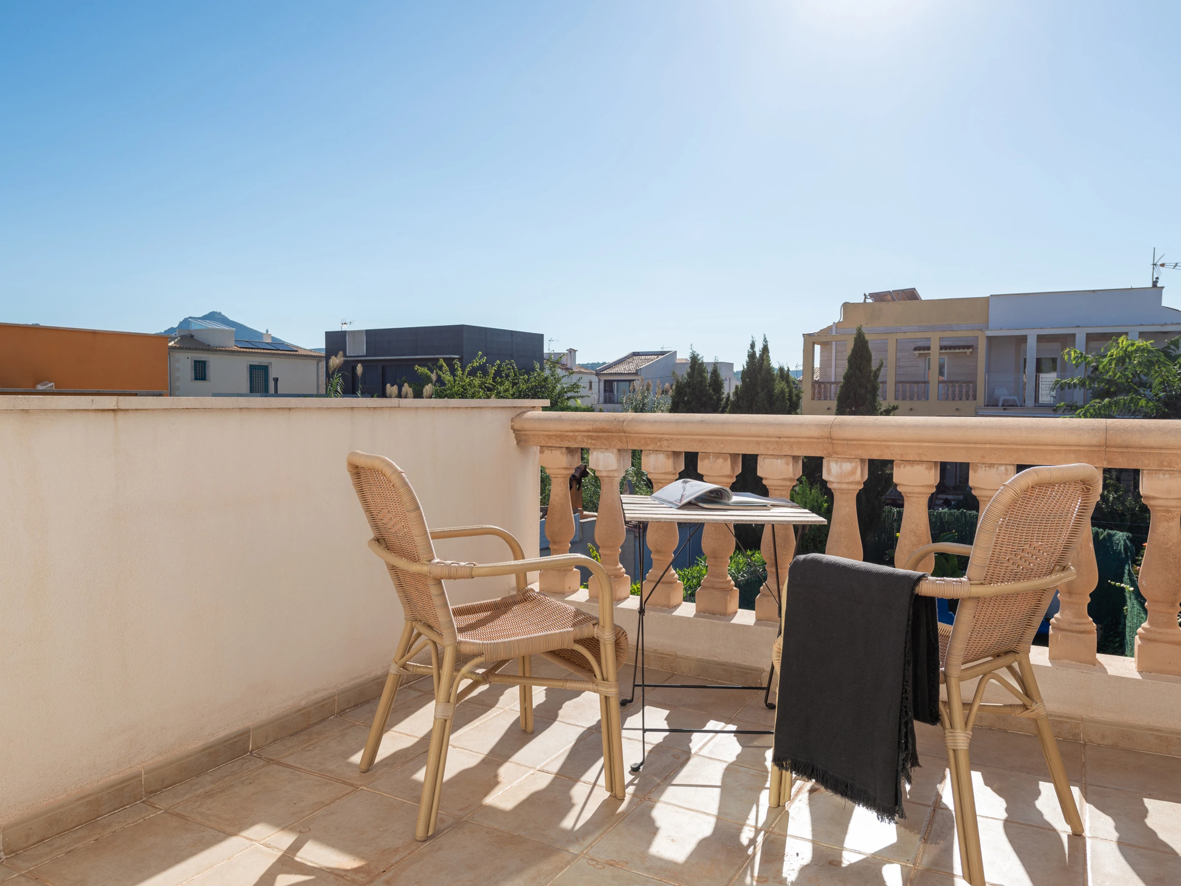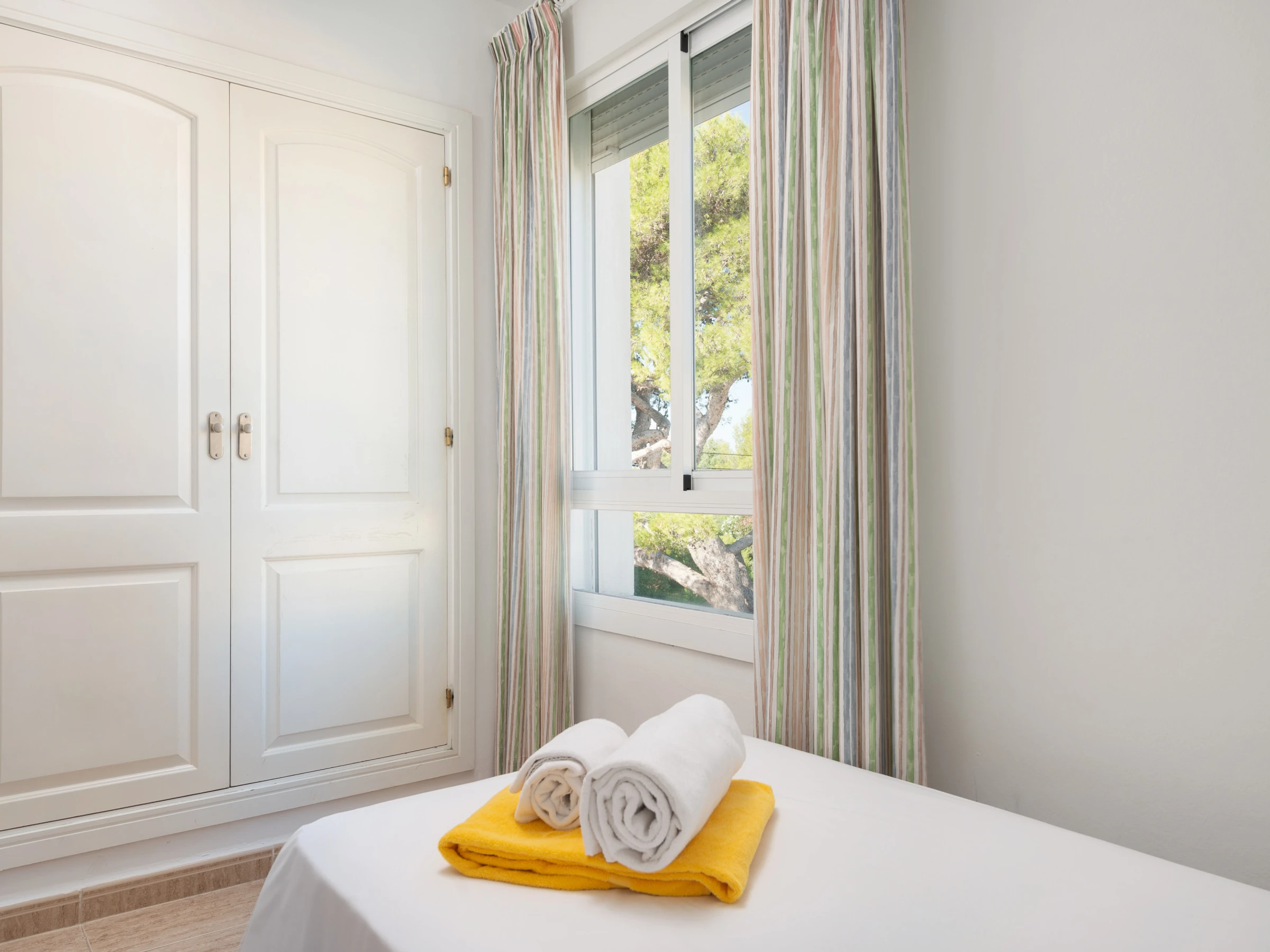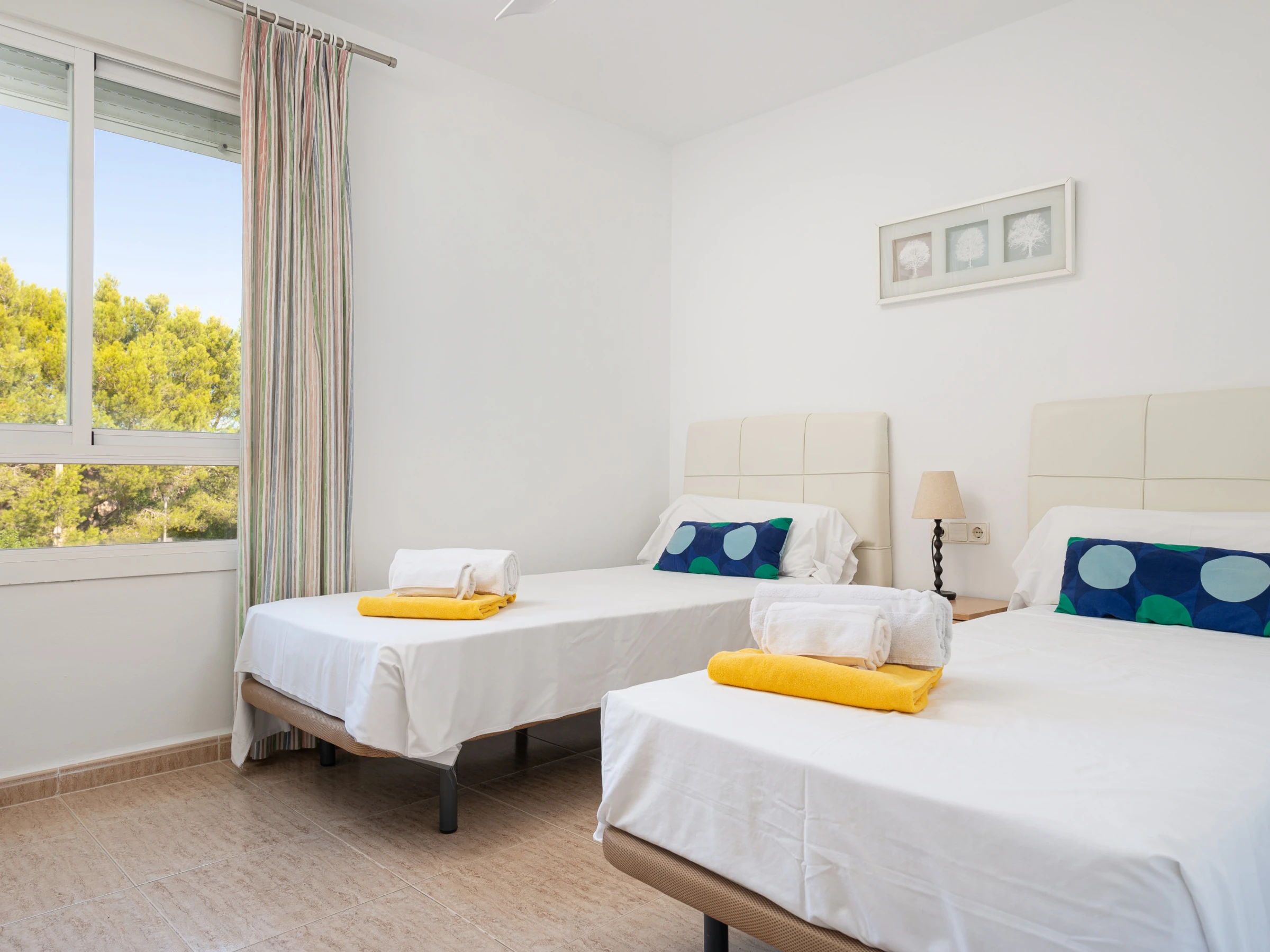 Zwei der Schlafzimmer sind mit je zwei Einzelbetten ausgestattet, das dritte Schlafzimmer verfügt über ein Doppelbett und eine eigene Terrasse, ideal, um ein schönes Frühstück zu genießen oder die Abendbrise mit Ihrem Partner zu genießen. Dieses Schlafzimmer hat ein eigenes Badezimmer mit einer modernen Dusche.