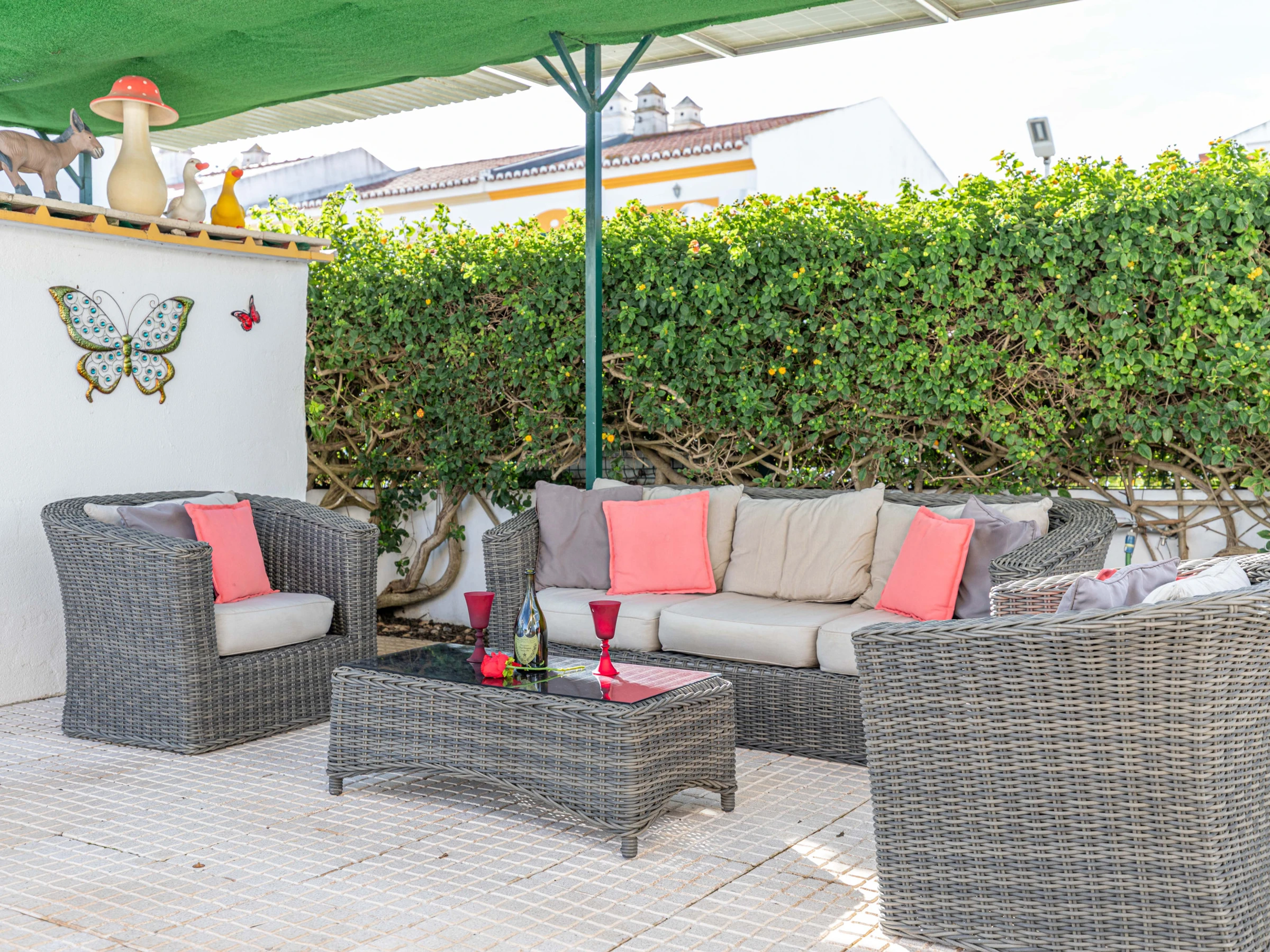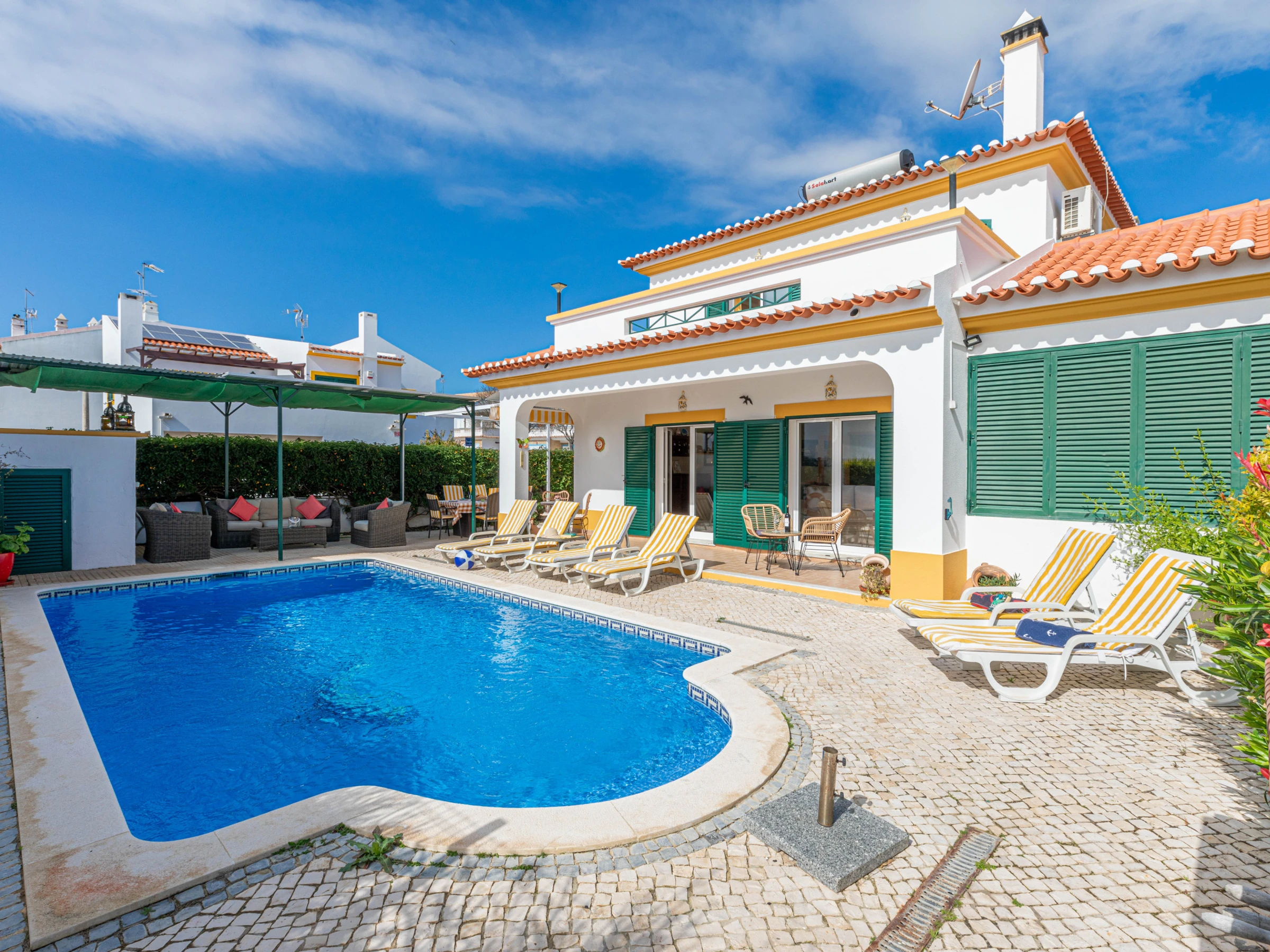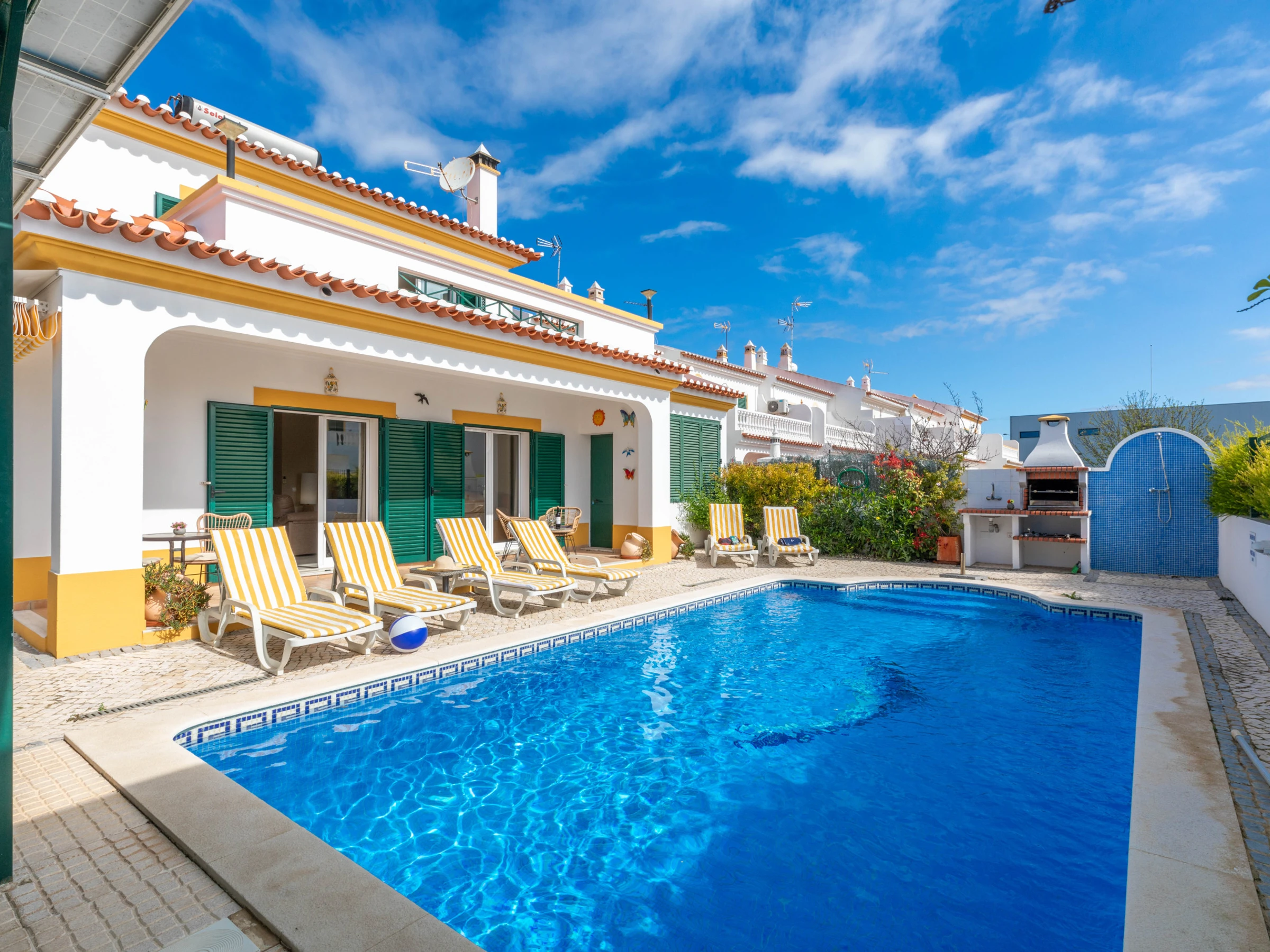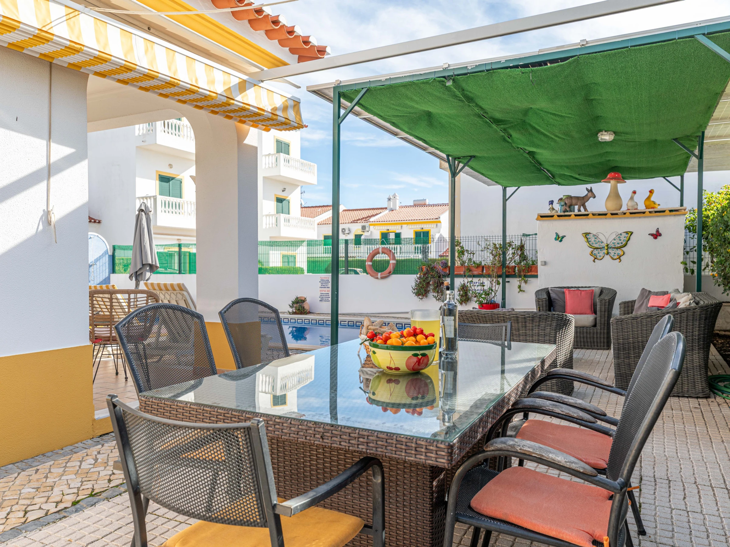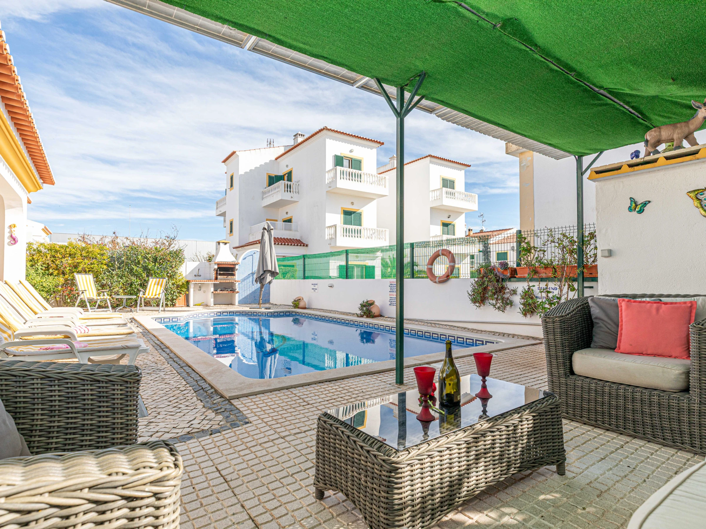 Die Unterkunft verfügt über garten, gartenmöbel, umzäuntes grundstück, terrasse, waschmaschine, grill, kamin, bügeleisen/-brett, internet (WLAN), haartrockner, balkon, zentralheizung, klimaanlage, swimming-pool privater pool, parkplatz im freien, 1 Fernseher.