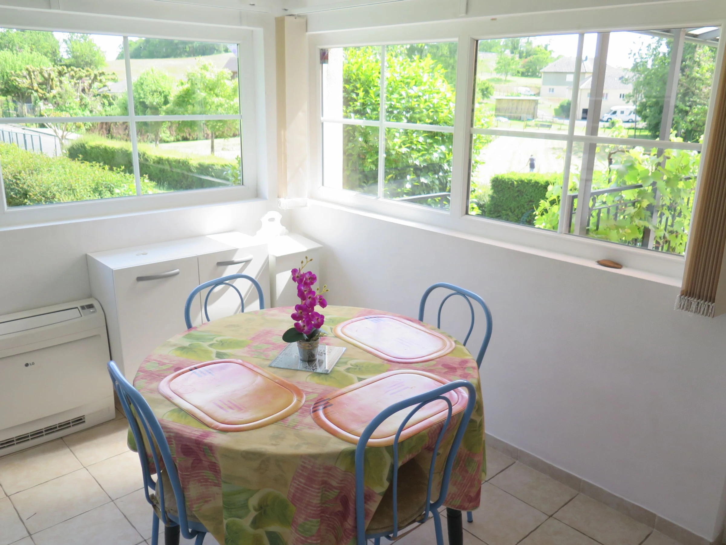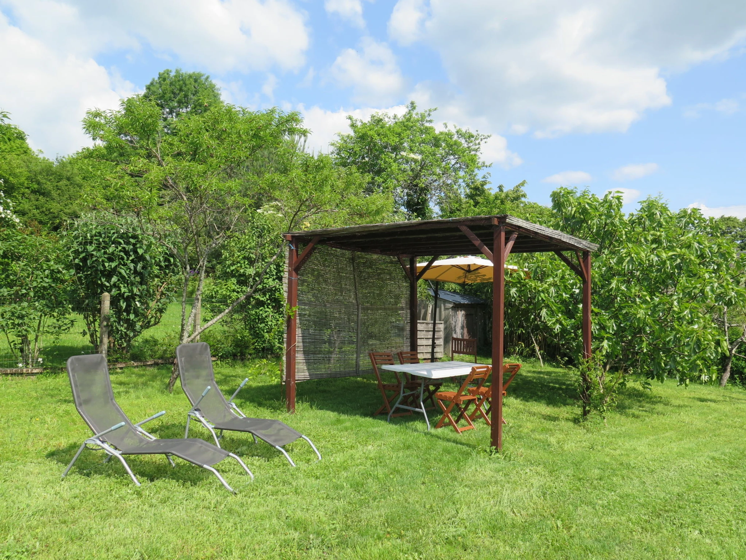 "Rillettes", 4-Zimmer-Haus 70 m2. Zweckmässig und schön eingerichtet: Wohn-/Esszimmer mit Esstisch und TV (Flachbildschirm). Ausgang zur Terrasse. 2 Zimmer, jedes Zimmer mit 1 franz. Bett (140 cm, Länge 190 cm). Küche (Backofen, Geschirrspüler, 4 Flammen, Toaster, Wasserkocher, Mikrowelle, Tiefkühler, elektrische Kaffeemaschine) mit Esstisch. Ausgang zur Terrasse. Dusche/WC. E-Heizung. Terrasse 20 m2 teilweise überdacht. Terrassenmöbel, Gartengrill (mobil), Liegestühle. Sicht auf die Landschaft. Zur Verfügung: Waschmaschine, Bügeleisen, Kinderhochstuhl, Babybett. Bitte beachten: geeignet für Familien. Nichtraucher-Haus. Maximal 1 kleines Haustier/Hund erlaubt. Rauchmelder.