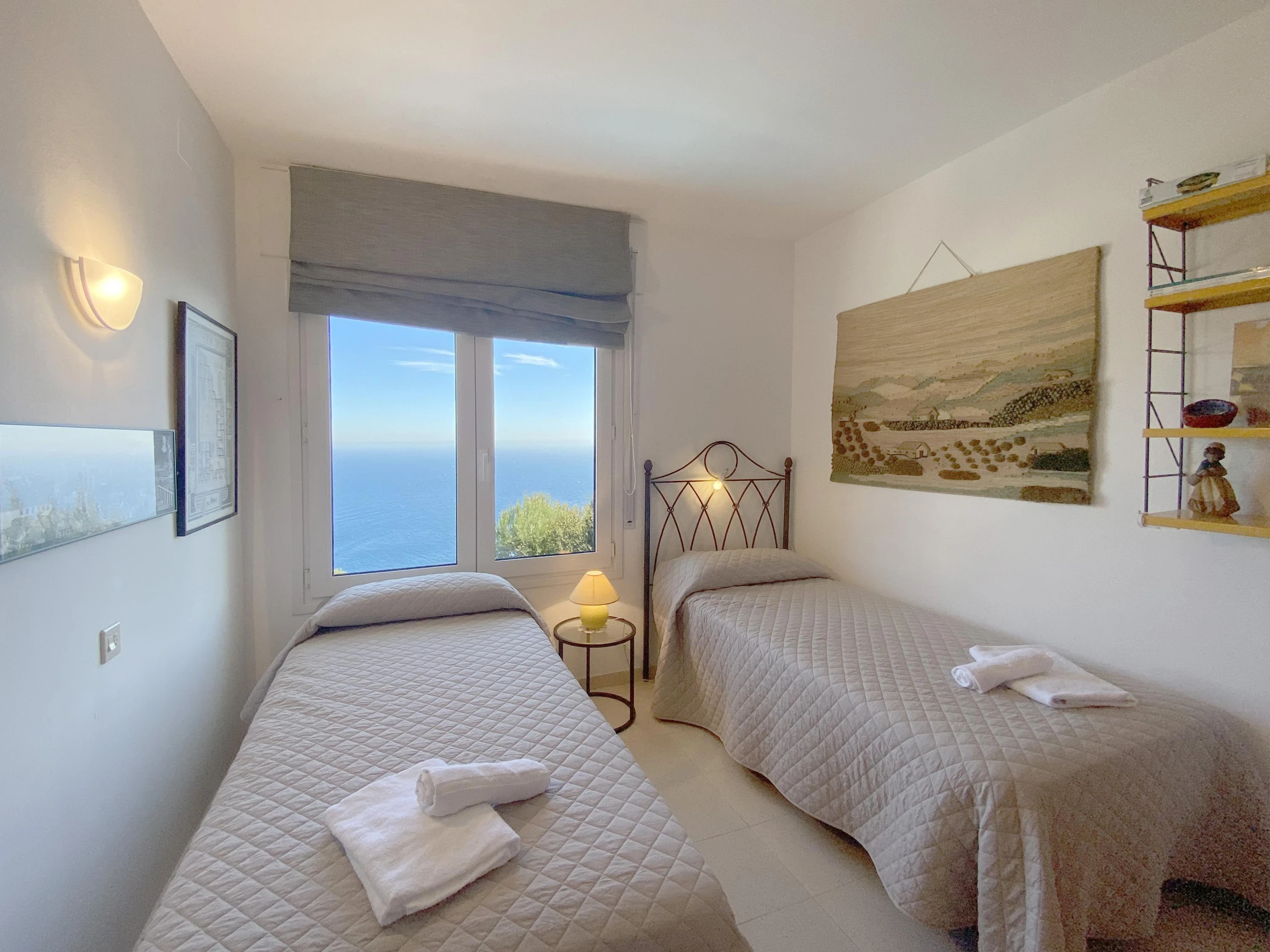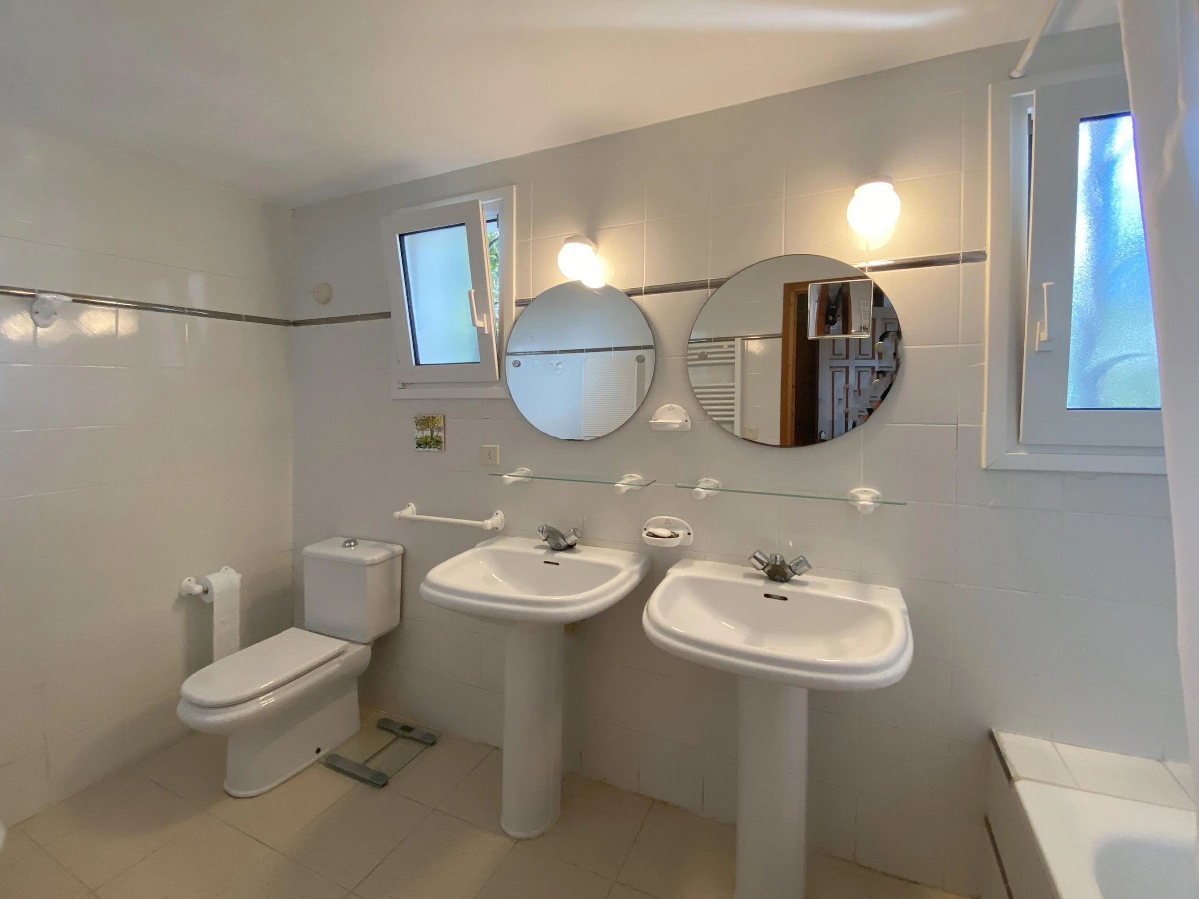 Komfortable Doppelhaushälfte mit herrlichem Meerblick, in einer ruhigen Gegend von Sa Tuna. Auf drei Ebenen verteilt und mit einem gepflegten Außenbereich, finden wir im ersten Stock ein sehr helles Wohn-Esszimmer mit Ausgang zu einer Terrasse, auf der Sie die Umgebung genießen können, eine voll ausgestattete Küche und eine Gästetoilette. Auf der unteren Ebene befinden sich die 3 Doppelzimmer, eines mit eigenem Bad und die anderen mit Einzelbetten, sowie ein weiteres Badezimmer. Und auf der obersten Ebene haben wir Zugang zum Garten, in dem sich der Swimmingpool befindet, ein Solariumbereich mit spektakulärer Aussicht.
