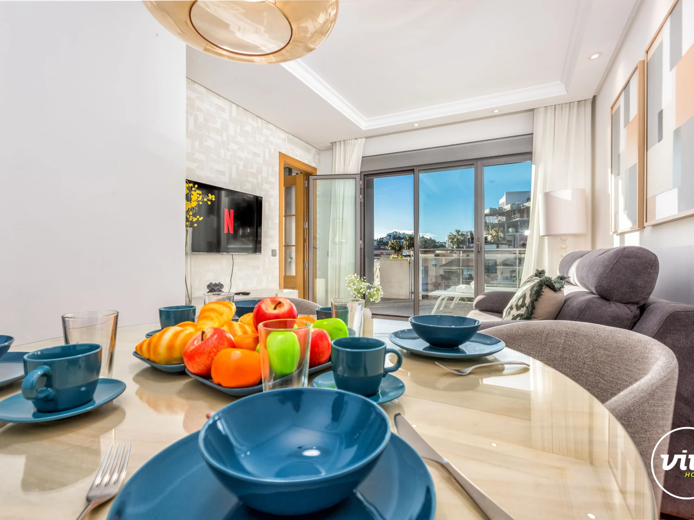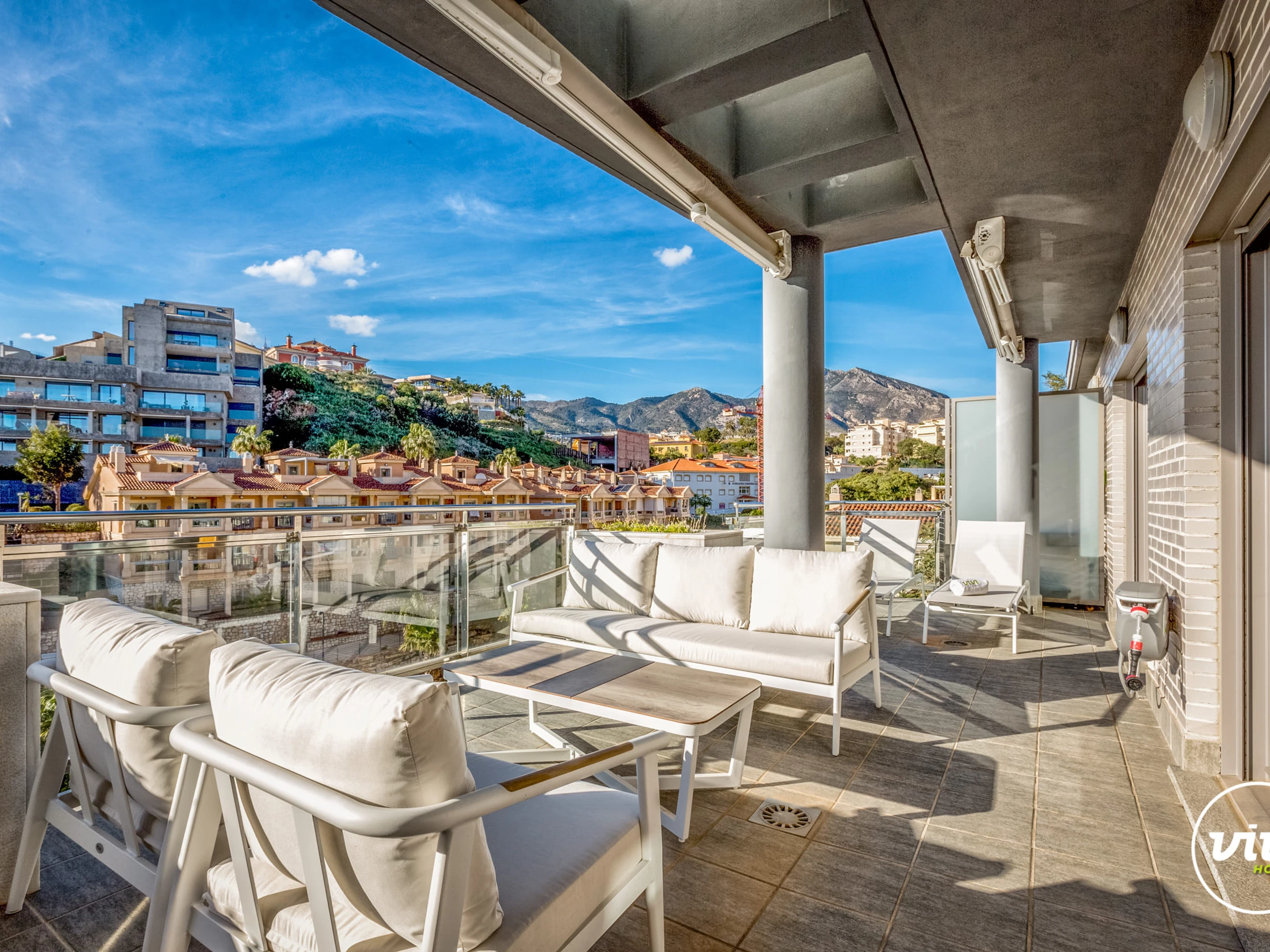 Die Unterkunft verfügt über aufzug, 20 m² terrasse, waschmaschine, trockner, bügeleisen/-brett, safe, internet (WLAN), haartrockner, zentralheizung, klimaanlage in der ganzen unterkunft, swimming-pool gemeinschaftlicher swimming-pool, 1 Fernseher.
