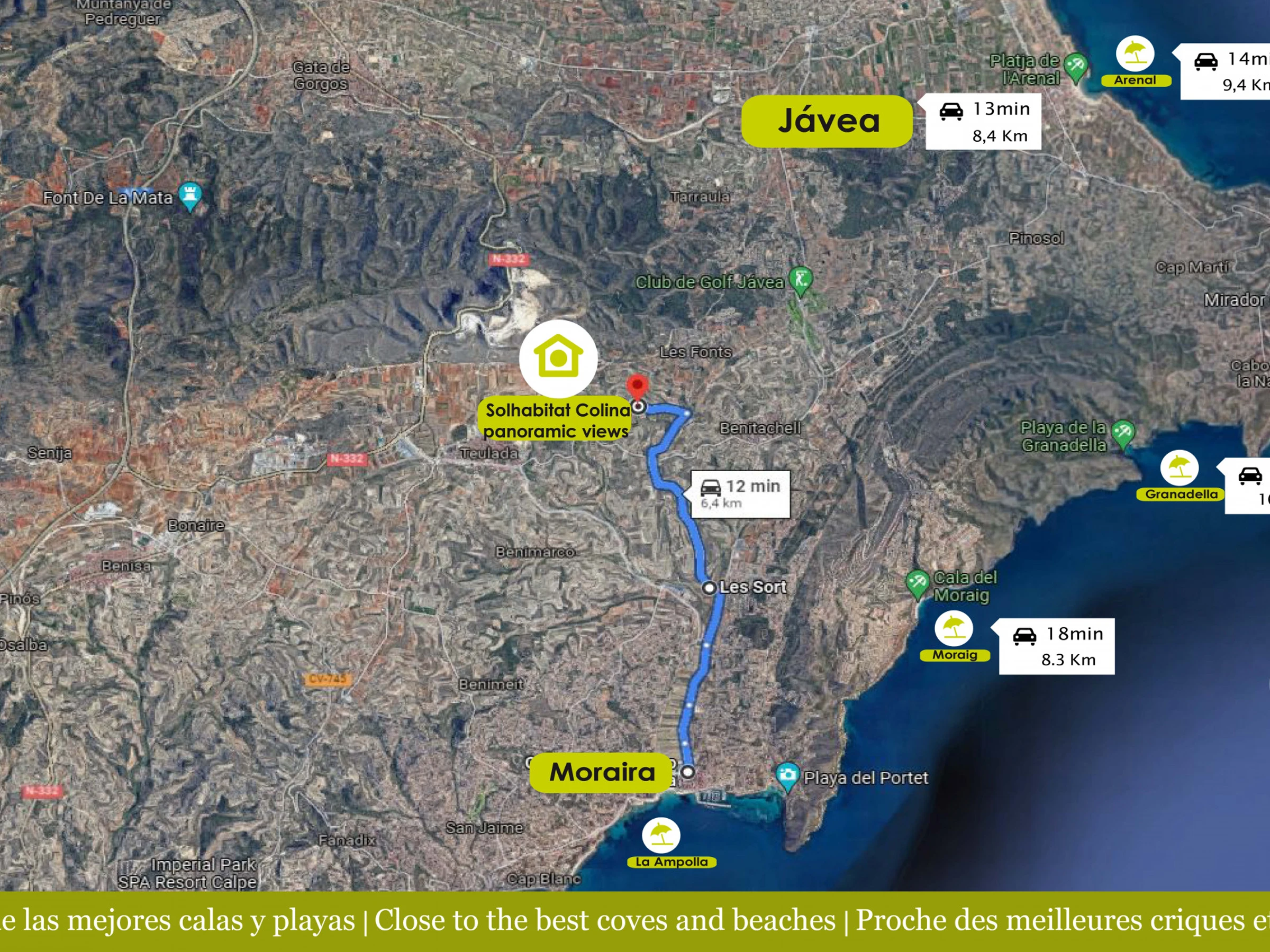 Solhabitat Colina Panoramic Views liegt in einer sehr ruhigen Gegend, mit viel Privatsphäre und kaum Nachbarn, und gleichzeitig nur 4 Autominuten vom Stadtzentrum von Benitachell entfernt, wo Sie zahlreiche Geschäfte, Restaurants und Supermärkte finden. Etwa 12 Minuten entfernt liegt das kleine Fischerdorf Moraira, international bekannt für seine fantastischen Sandstrände und seinen modernen Jachthafen. Etwa 14 Minuten entfernt werden Sie von den spektakulären Buchten und Klippen der Küste von Benitaxell überrascht sein, und im Norden, nur 13 Minuten entfernt, können Sie die berühmte Stadt Javea mit ihrer lebhaften Promenade voller Restaurants und trendiger Veranstaltungsorte genießen.