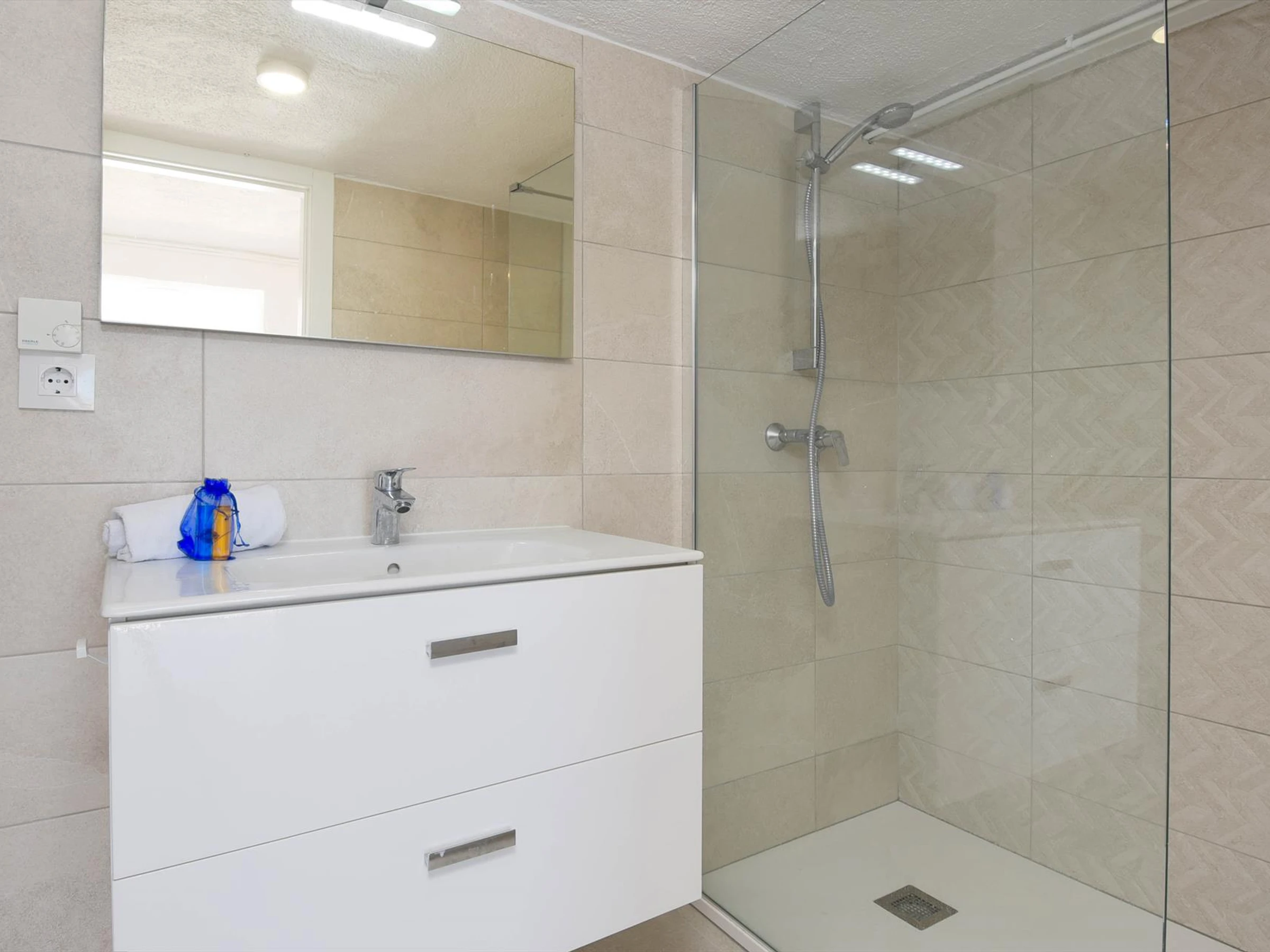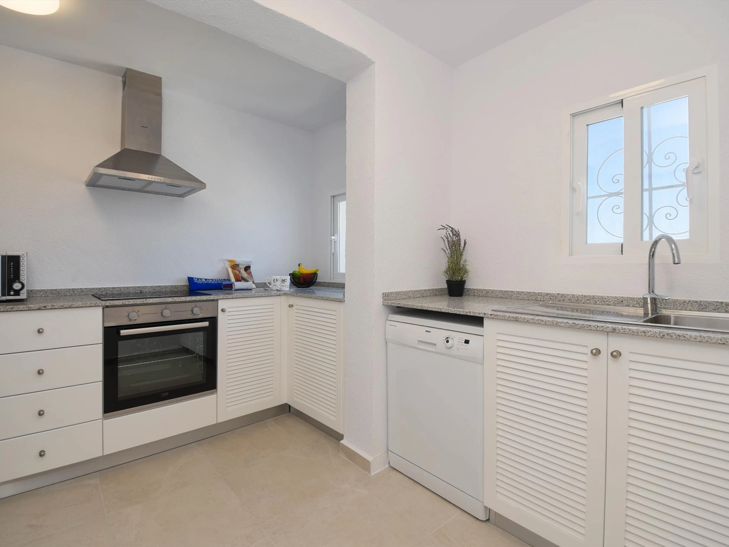 Dieses küche, ist ausgestattet in mikrowelle, spülmaschine, kaffeemaschine und toaster.
