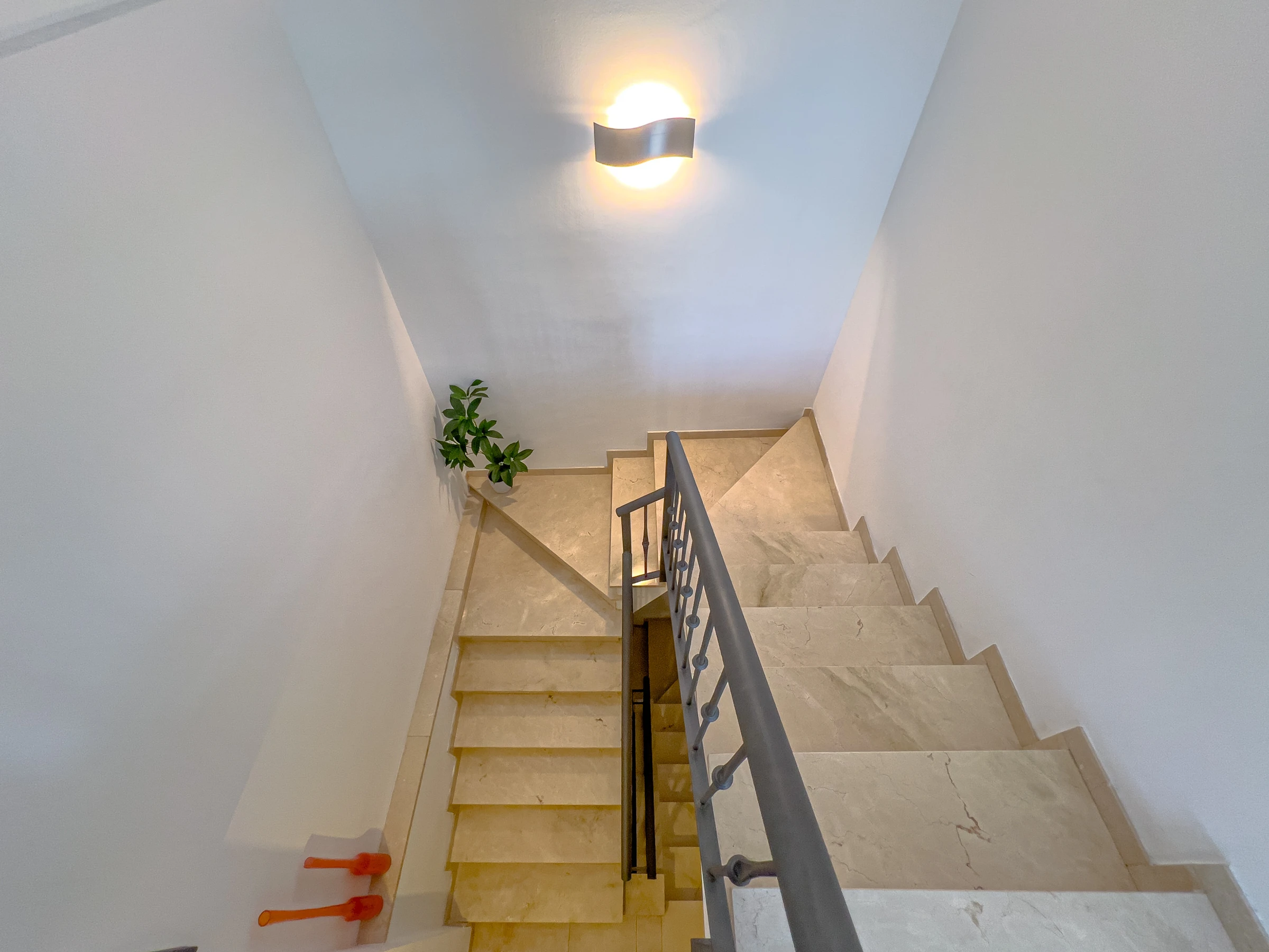 Der Zugang zum Obergeschoss erfolgt über Treppen.