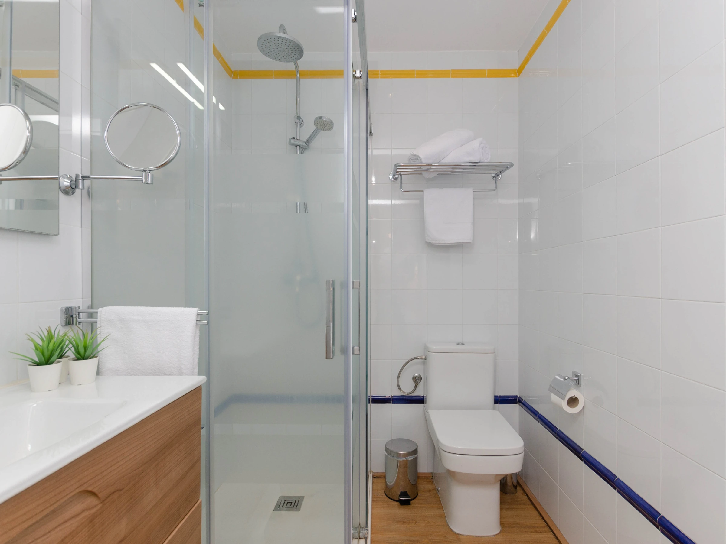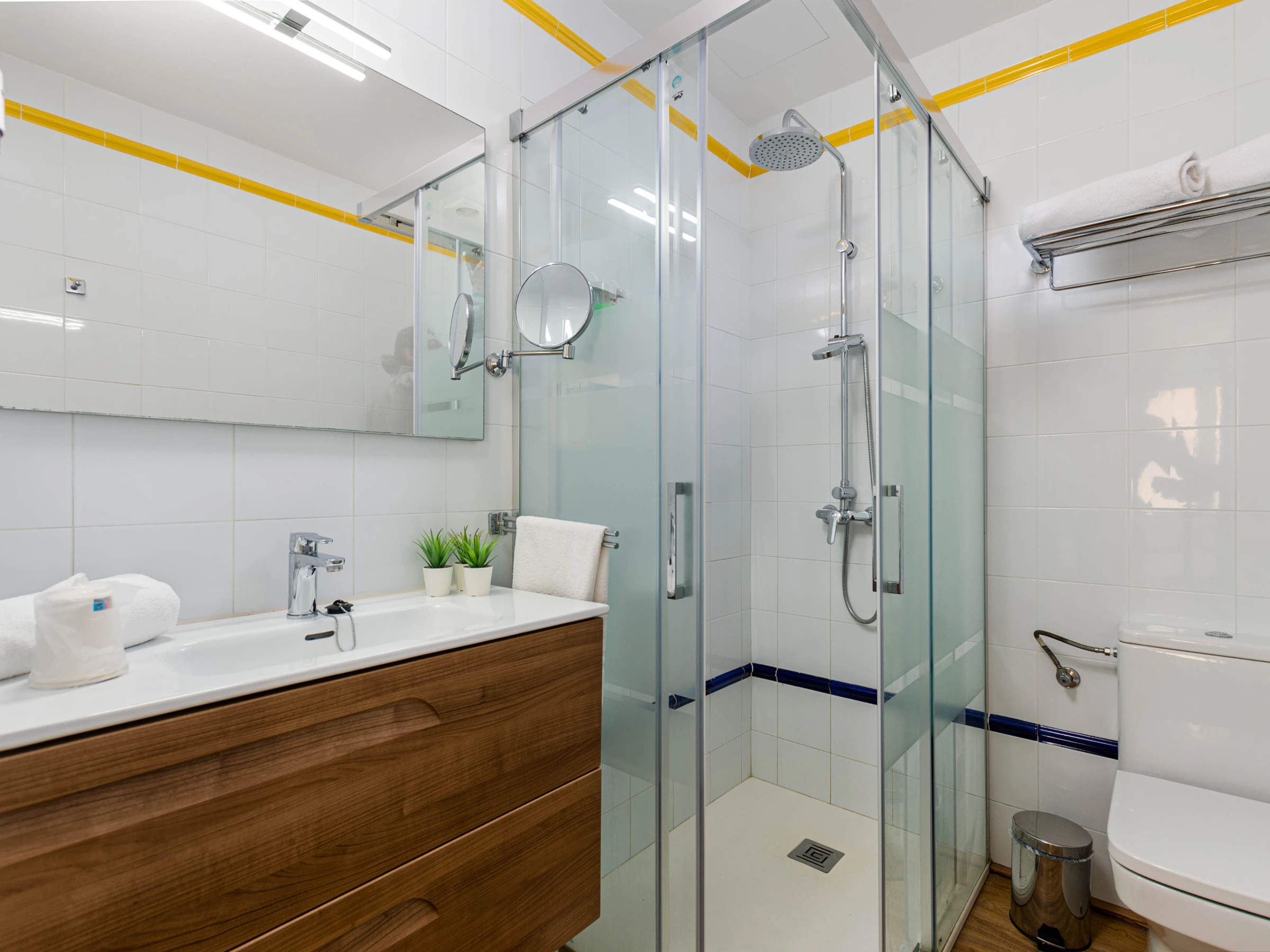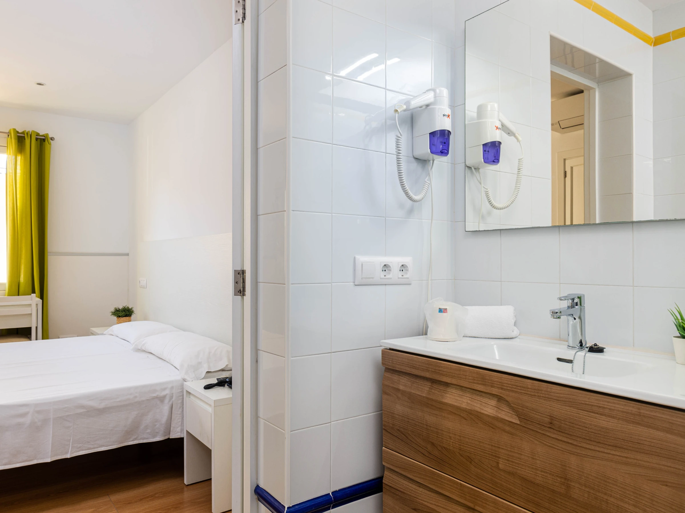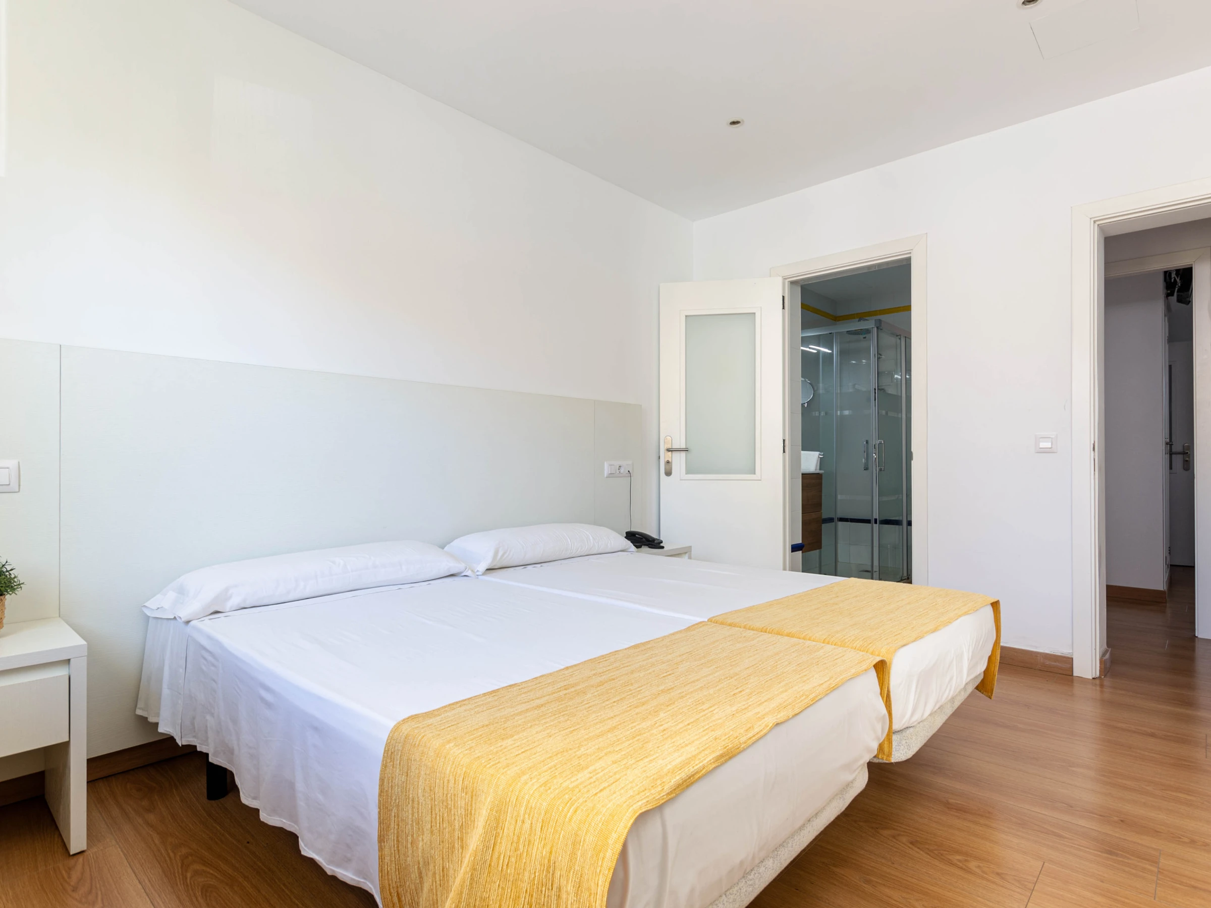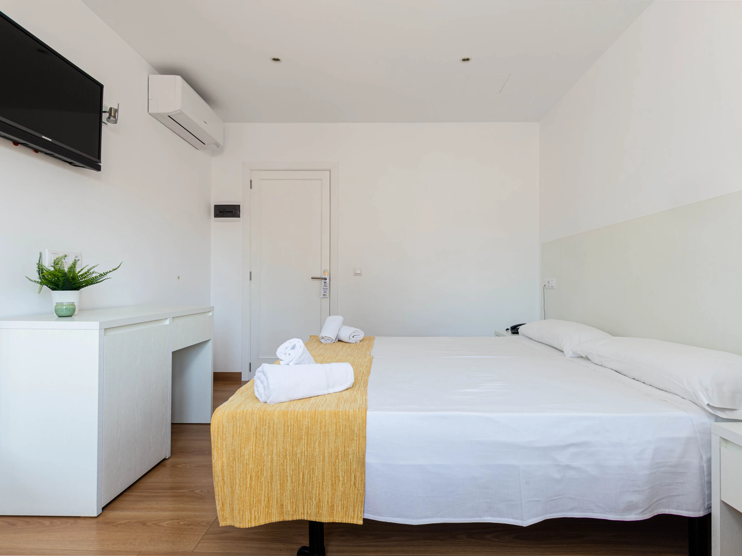 Das Schlafzimmer im Erdgeschoss mit einem Doppelbett (1,5 x 1,9 Meter) hat ebenfalls Zugang zur Terrasse. Zusätzlich gibt es ein weiteres Schlafzimmer mit zwei Einzelbetten auf dieser Etage. Beide Zimmer sind mit Klimaanlage, Sat-TV, einem eigenen Bad mit Dusche und Haartrockner sowie einem Kleiderschrank ausgestattet. Für Familien mit Kleinkindern stehen auf Anfrage ein Babybett und ein Hochstuhl zur Verfügung.
