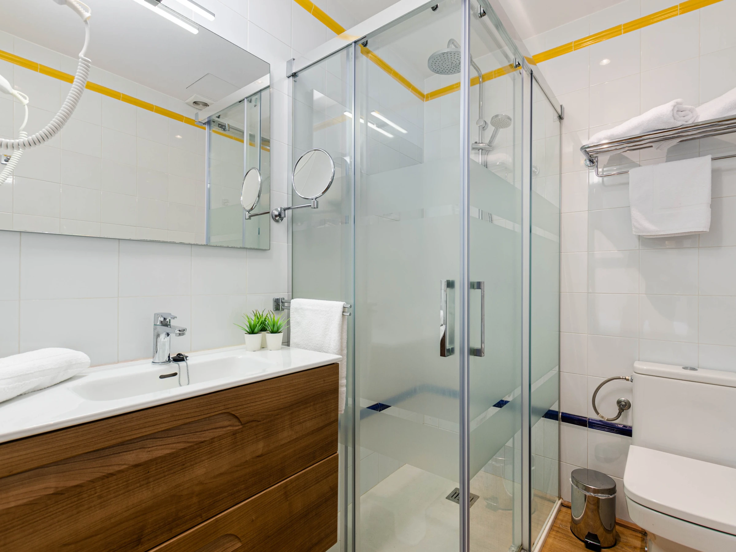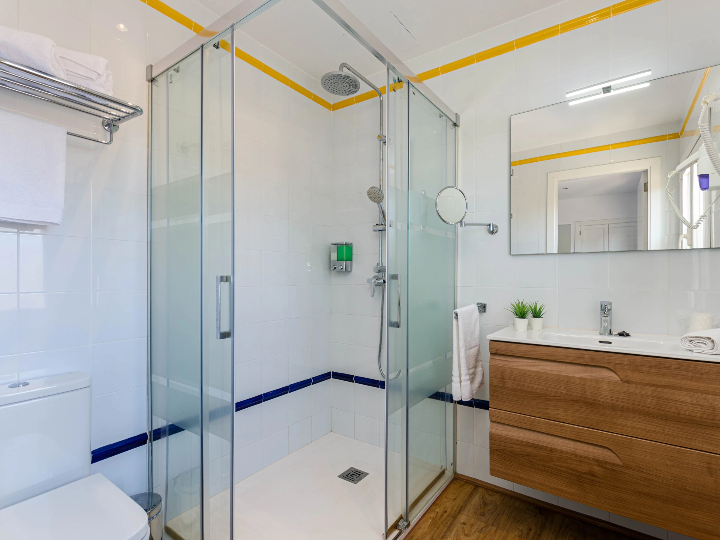 Eine Treppe führt in die erste Etage, wo sich die restlichen vier Schlafzimmer befinden. Jedes Zimmer ist mit zwei zusammengeschobenen Einzelbetten, Klimaanlage, Kleiderschrank, Safe, eigenem Bad mit Dusche und Haartrockner sowie Sat-TV ausgestattet.
