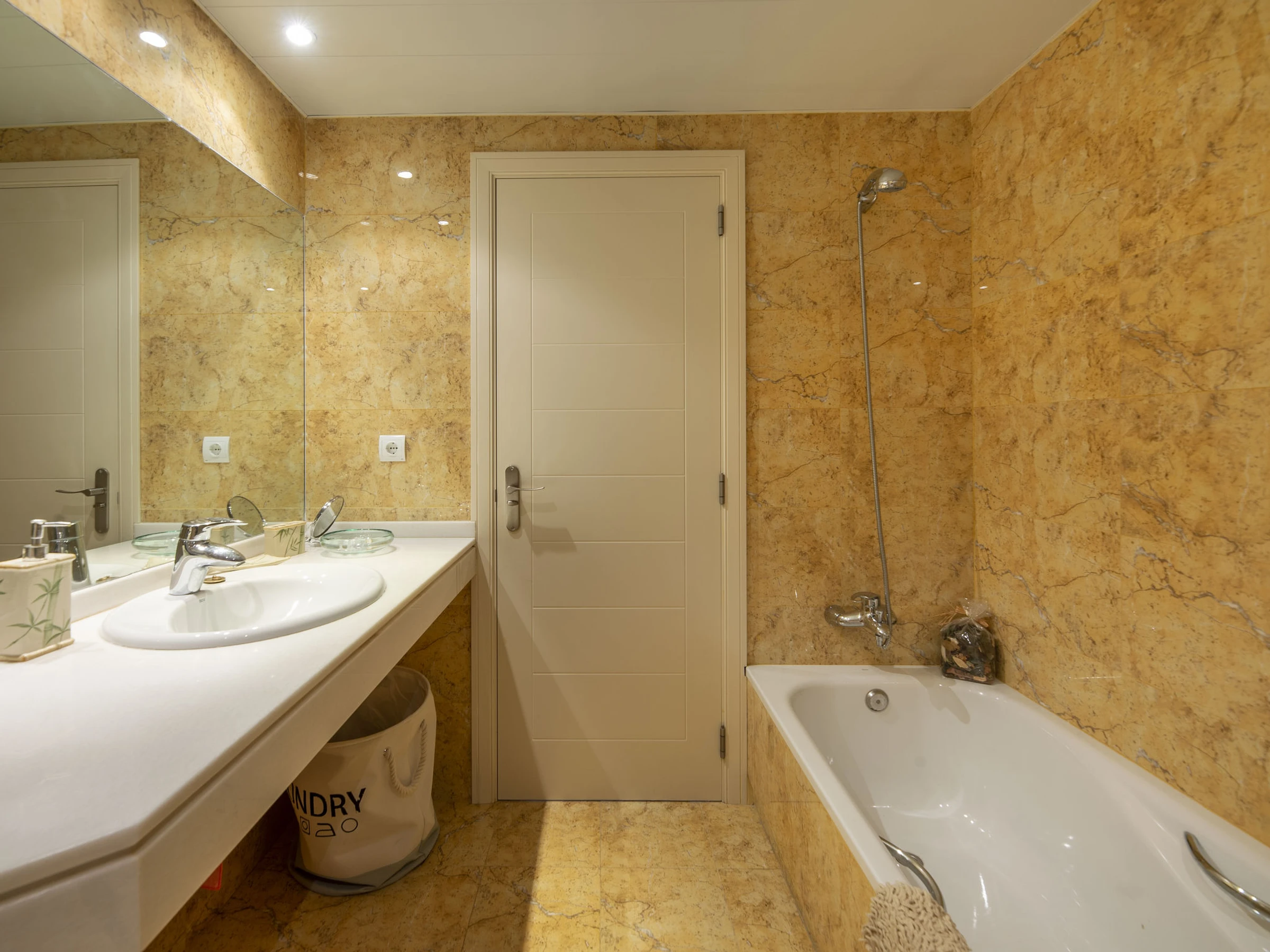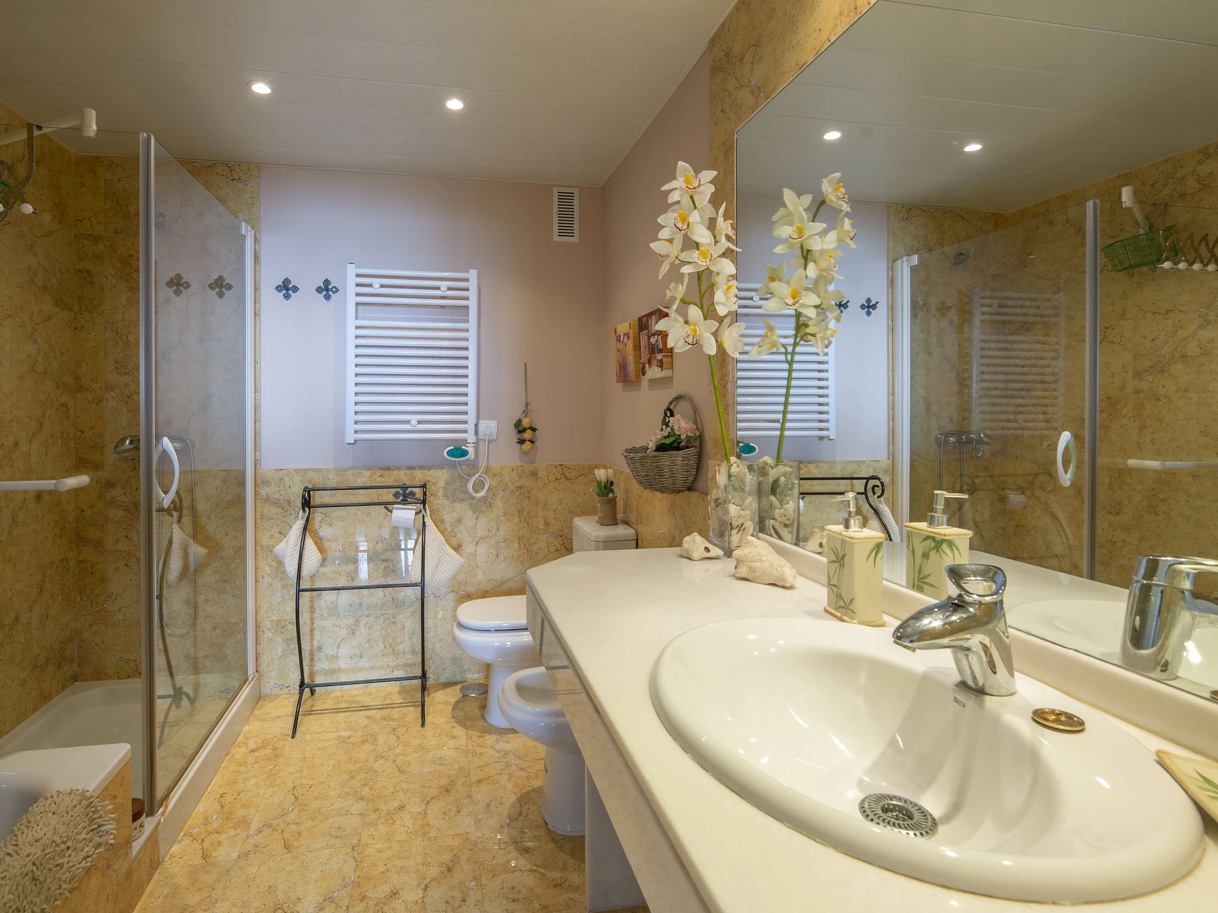 "Campos de Mar", 2-Zimmer-Wohnung 53 m2. Komfortabel und schön eingerichtet: Wohn-/Esszimmer mit 1 Diwanbett (90 cm), Digital-TV. Ausgang zur Terrasse. 1 Zimmer mit 1 Bett (150 cm, Länge 190 cm). Küche (Backofen, Geschirrspüler, 4 Glaskeramikplatten, Toaster, Mikrowelle, Tiefkühler, elektrische Kaffeemaschine) mit Durchreiche. Bad/WC. Klimaanlage, Warmluftheizung. Terrasse 16 m2 teilweise überdacht. Terrassenmöbel. Panoramasicht auf das Meer. Zur Verfügung: Waschmaschine, Bügeleisen, Kinderhochstuhl, Babybett, Haartrockner. Internet (WLAN, gratis). Garage Nr. 4. Bitte beachten: Nichtraucher-Unterkunft. [hidden] // Reg. Nr.: ESFCTU0000290440008827970000000000000000[hidden]8