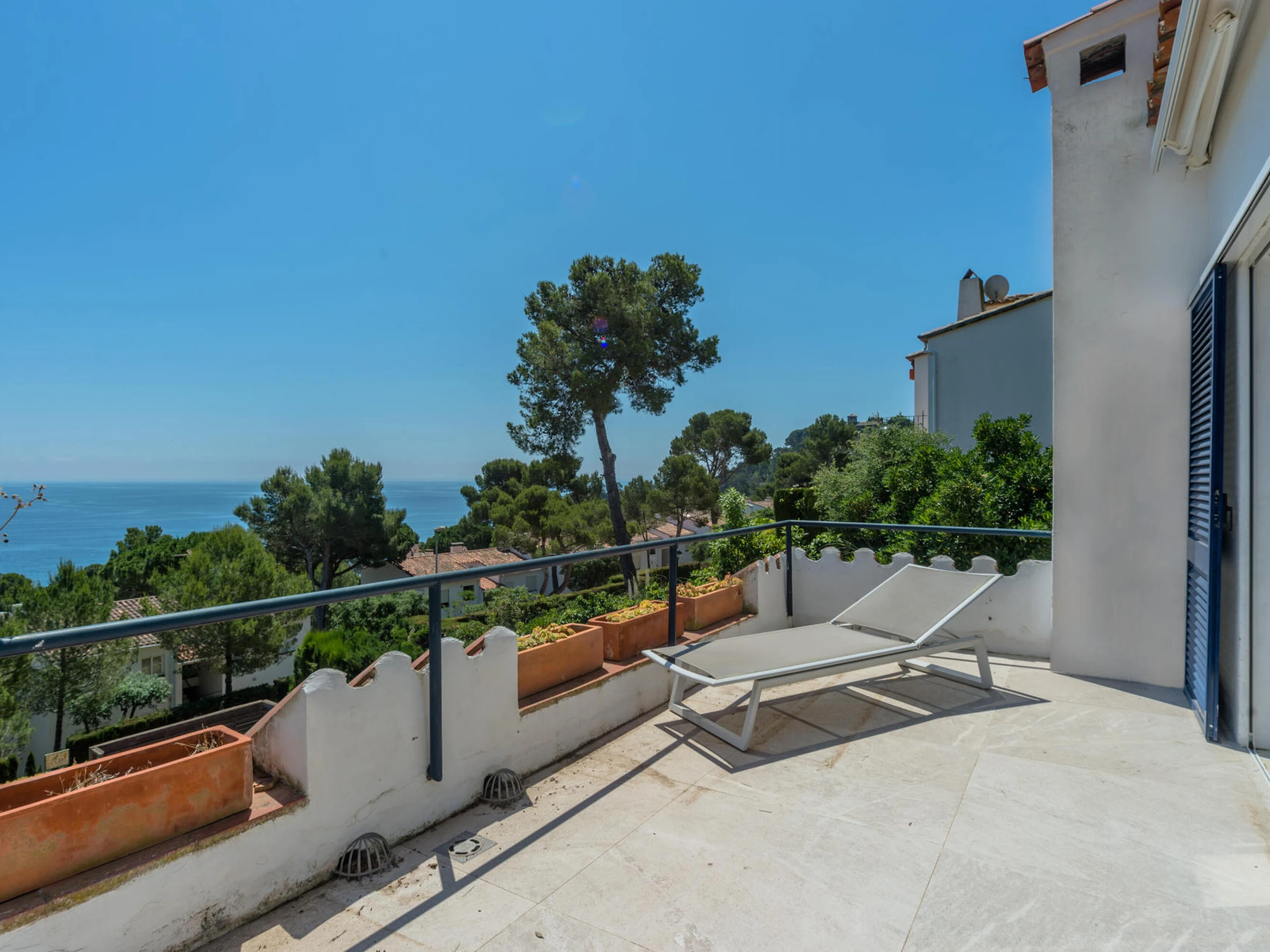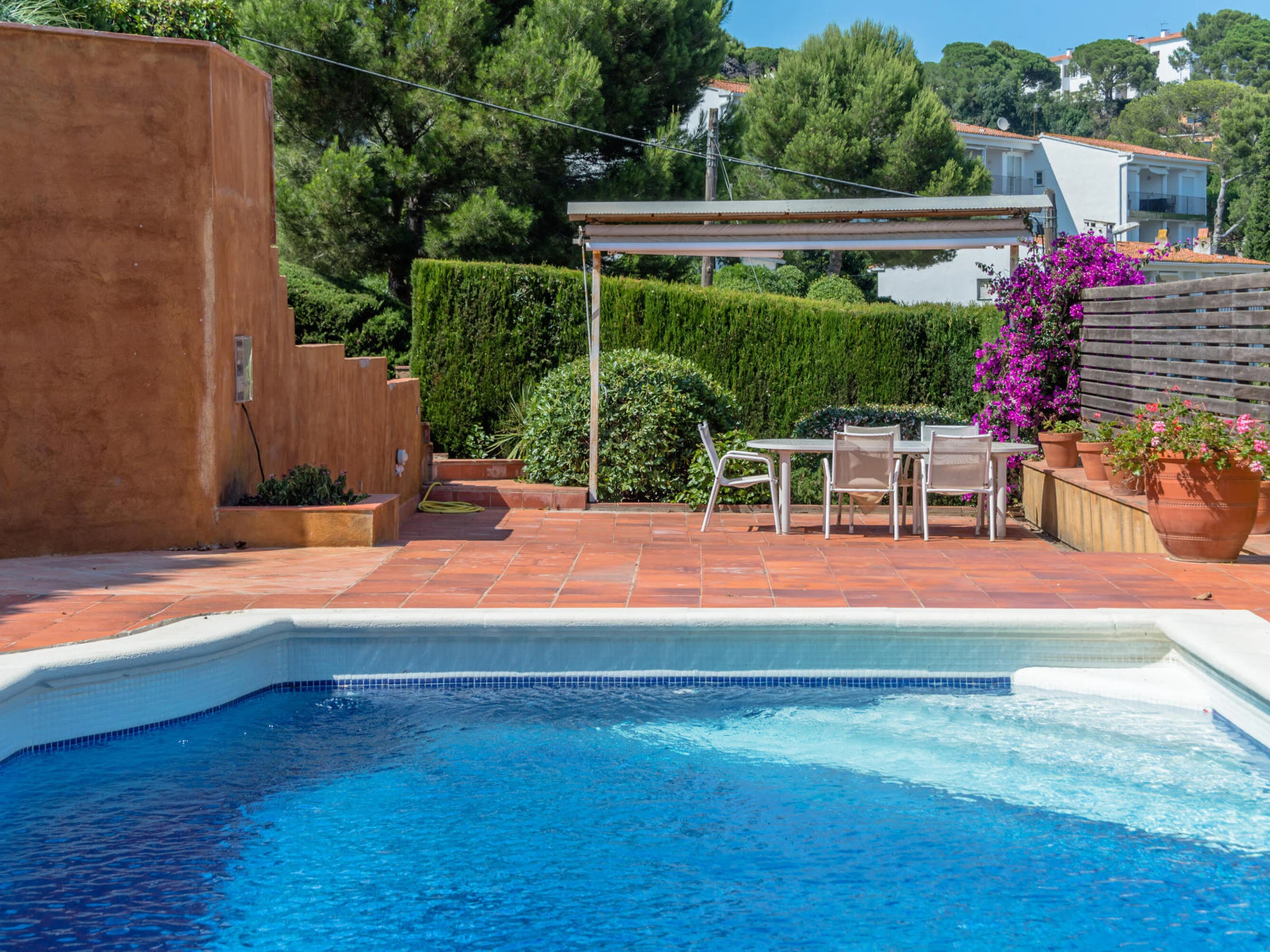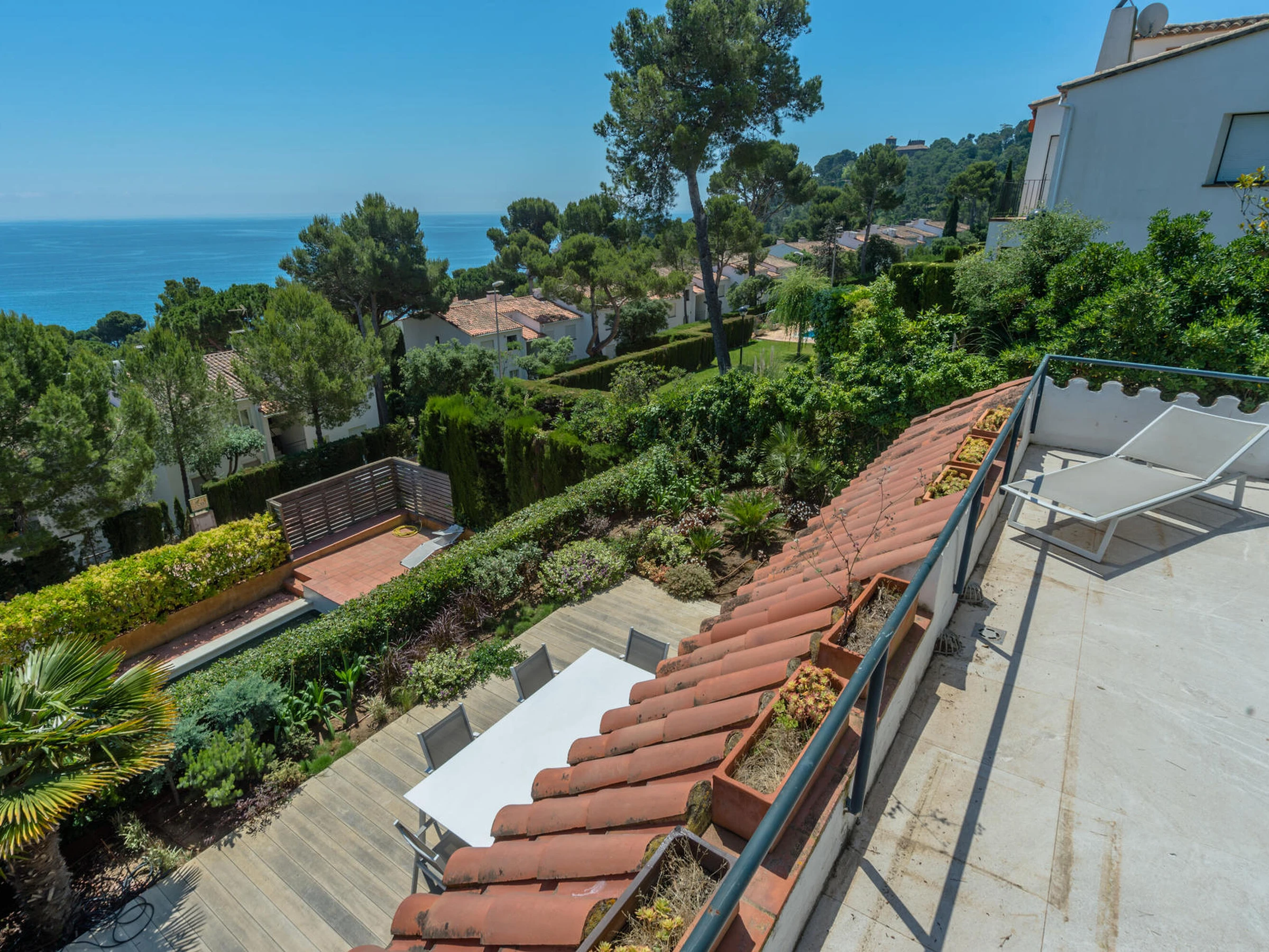 Komplett renovierte Doppelhaushälfte mit Meerblick und Pool in Calella de Palafrugell, Costa Brava. Das Haus befindet sich in der ruhigen Gegend El Golfet in Calella de Palafrugell. Dabei handelt es sich um eine Doppelhaushälfte, die Teil einer Gemeinschaft von nur zwei Häusern ist, die sich einen Pool und einen mit Gartenmöbeln ausgestatteten Gemeinschaftsbereich (Tisch, Stühle und Liegestühle) teilen. Das Haus liegt 650 Meter vom Golfet Strand und 1.200 Meter vom Zentrum von Calella de Palafrugell entfernt. Kapazität für 5/6 Personen. Das Haus unterteilt sich in Erdgeschoss und 1. Stockwerk. Das Erdgeschoss besteht aus einem Wohn- und Esszimmer mit Zugang zu einer großen Terrasse mit herrlichem Meerblick, einer Seitenterrasse mit Gasgrill, einer großen offenen Küche und einem Badezimmer mit Dusche. Die erste Etage besteht aus 3 Zimmern: 2 Doppelzimmer mit Zugang zu einer großen gemeinsamen Terrasse mit Meerblick (eines davon en-suite mit einem Badezimmer mit Dusche) 1 Einzelzimmer und ein Badezimmer mit Dusche. Das Haus verfügt über WIFI, Klimaanlage und Deckenventilatoren. Das Sofa im Wohnzimmer ist ein Schlafsofa. Es verfügt über einen grossen privaten Parkplatz in einer Gemeinschaftsgarage. Bei weiteren Fragen zu dieser Immobilie zögern Sie nicht, uns zu kontaktieren.