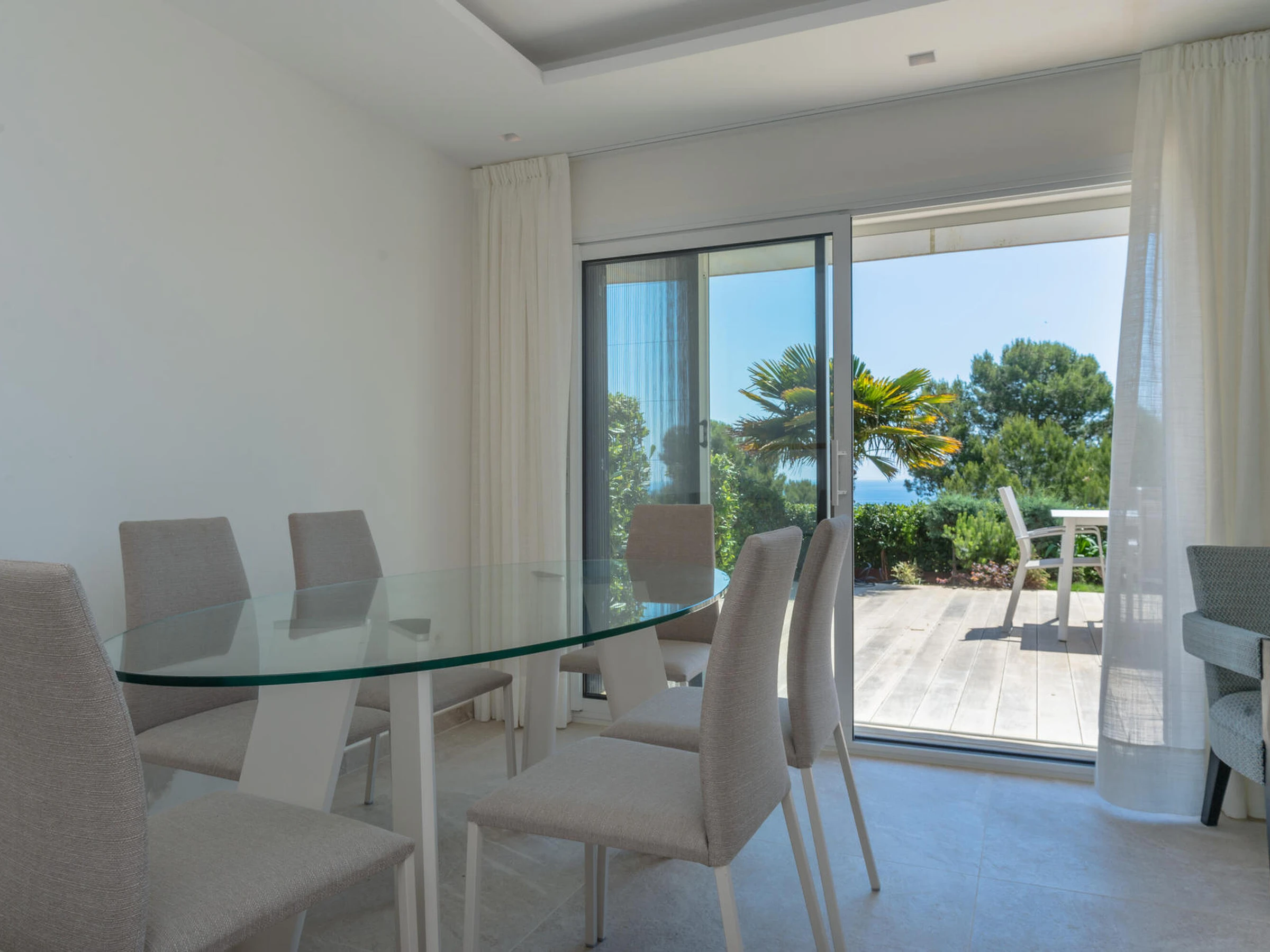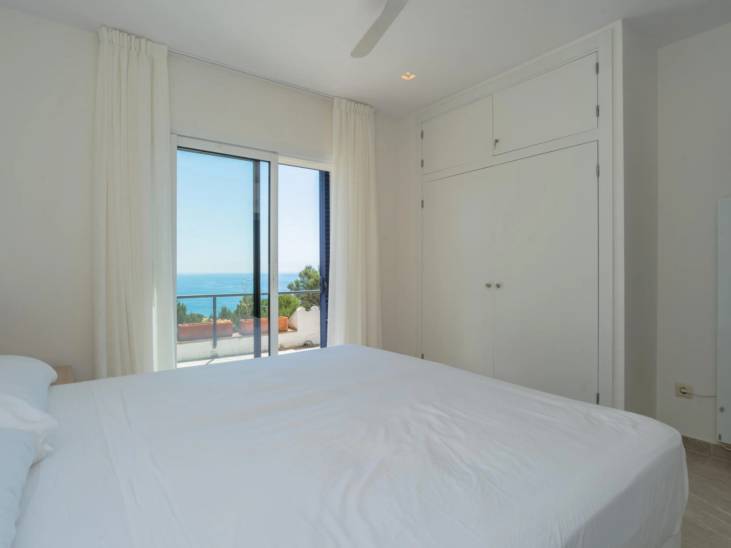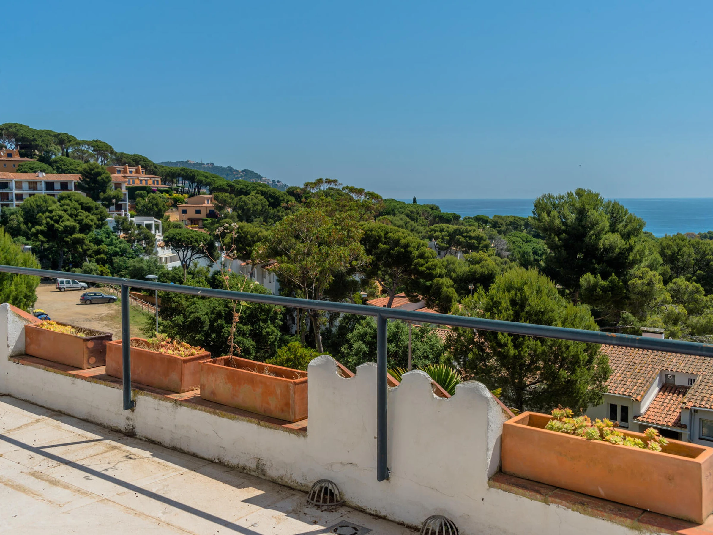 Komplett renovierte Doppelhaushälfte mit Meerblick und Pool in Calella de Palafrugell, Costa Brava. Das Haus befindet sich in der ruhigen Gegend El Golfet in Calella de Palafrugell. Dabei handelt es sich um eine Doppelhaushälfte, die Teil einer Gemeinschaft von nur zwei Häusern ist, die sich einen Pool und einen mit Gartenmöbeln ausgestatteten Gemeinschaftsbereich (Tisch, Stühle und Liegestühle) teilen. Das Haus liegt 650 Meter vom Golfet Strand und 1.200 Meter vom Zentrum von Calella de Palafrugell entfernt. Kapazität für 5/6 Personen. Das Haus unterteilt sich in Erdgeschoss und 1. Stockwerk. Das Erdgeschoss besteht aus einem Wohn- und Esszimmer mit Zugang zu einer großen Terrasse mit herrlichem Meerblick, einer Seitenterrasse mit Gasgrill, einer großen offenen Küche und einem Badezimmer mit Dusche. Die erste Etage besteht aus 3 Zimmern: 2 Doppelzimmer mit Zugang zu einer großen gemeinsamen Terrasse mit Meerblick (eines davon en-suite mit einem Badezimmer mit Dusche) 1 Einzelzimmer und ein Badezimmer mit Dusche. Das Haus verfügt über WIFI, Klimaanlage und Deckenventilatoren. Das Sofa im Wohnzimmer ist ein Schlafsofa. Es verfügt über einen grossen privaten Parkplatz in einer Gemeinschaftsgarage. Bei weiteren Fragen zu dieser Immobilie zögern Sie nicht, uns zu kontaktieren.