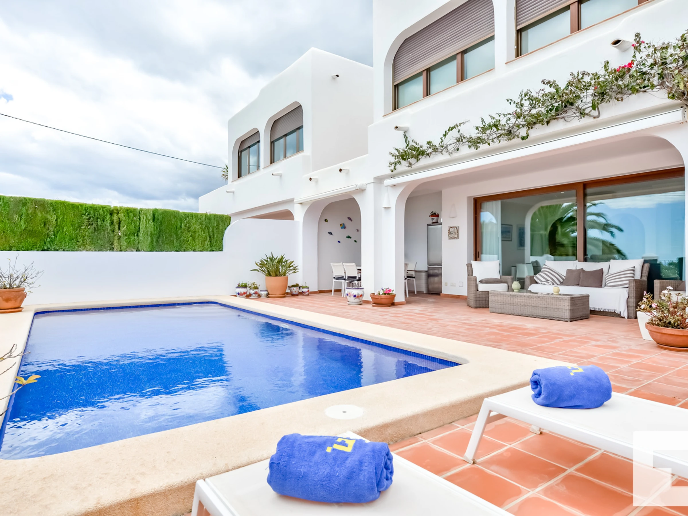 Willkommen in Calpe. Ein unvergesslicher Aufenthalt erwartet Sie in unserer eleganten, zweistöckigen Villa, die Ihnen maximalen Komfort und Stil bietet.