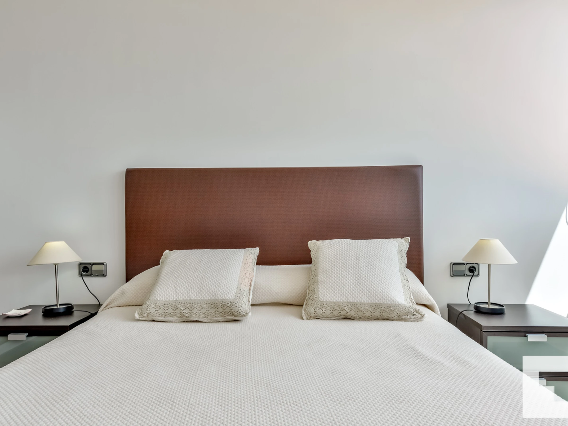 * 1 Schlafzimmer mit Doppelbett und eigenem Bad.