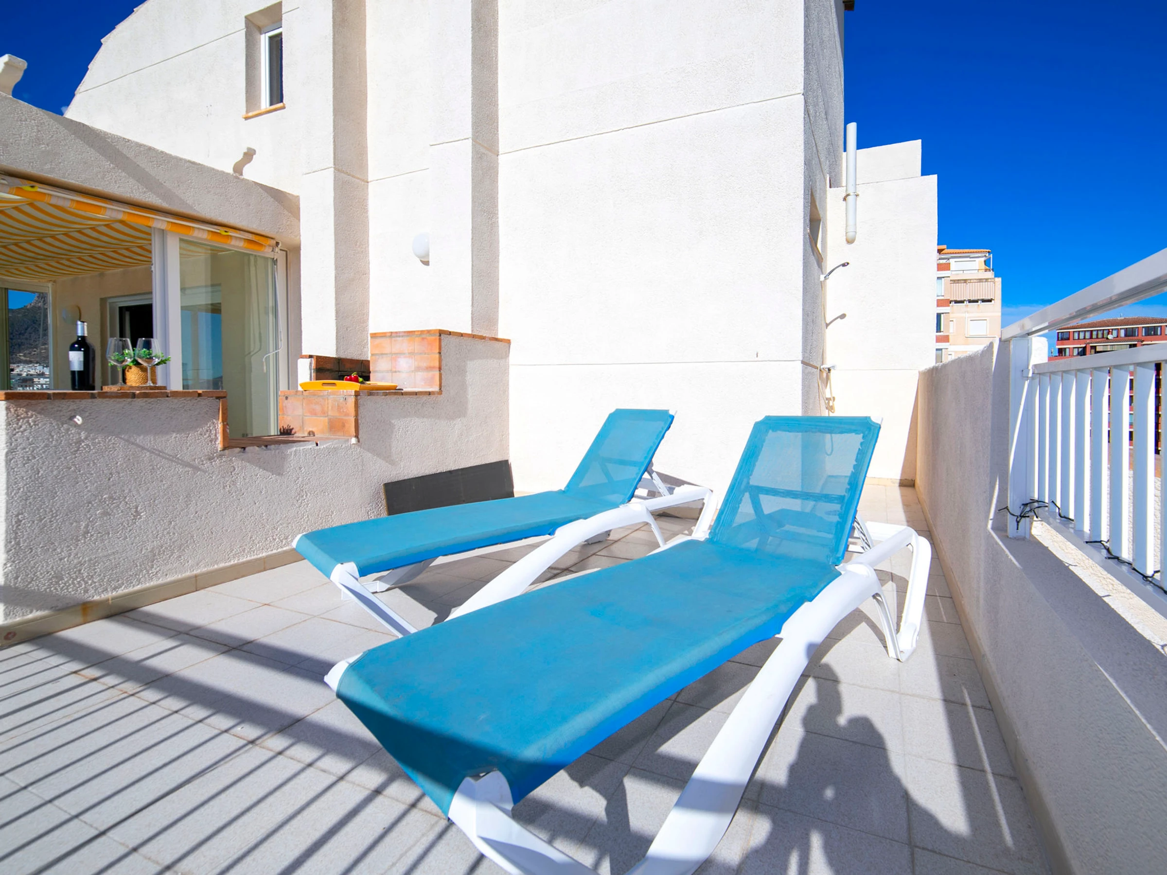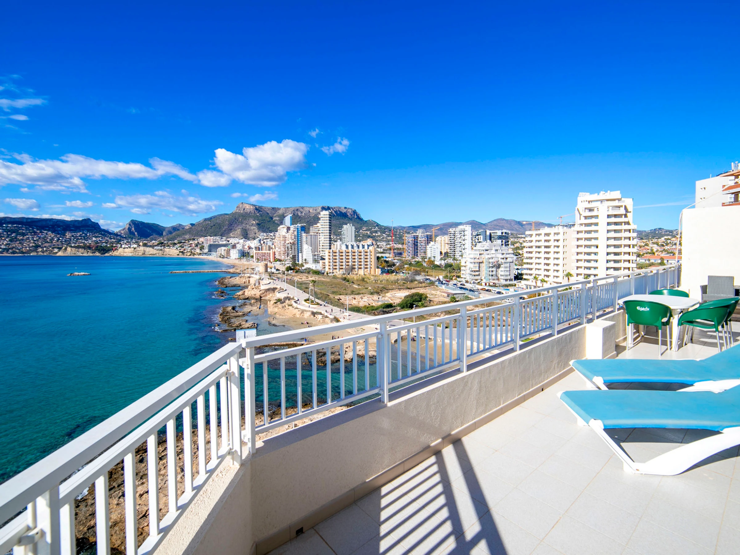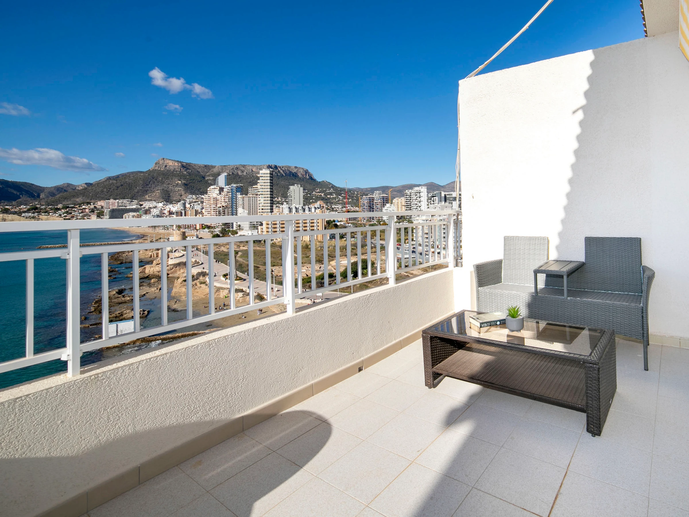"Casita Blanca", 4-Zimmer-Dachterrassenwohnung 97 m2 auf 2 Stockwerken, im Dachgeschoss. Geräumig und hell, teilweise renoviert im Jahre 2025, zweckmässig und komfortabel eingerichtet: Wohn-/Esszimmer mit Digital-TV, Klimaanlage und Warmluftheizung. Ausgang zur Terrasse. 1 Zimmer mit 1 franz. Bett (1 x 150 cm, Länge 190 cm), Klimaanlage und Warmluftheizung. Ausgang zur Terrasse. 1 Zimmer mit 2 Betten (90 cm, Länge 190 cm), Klimaanlage und Warmluftheizung. Küche (Backofen, Geschirrspüler, 3 Glaskeramikplatten, Toaster, Wasserkocher, Mikrowelle, elektrische Kaffeemaschine). Bad/Dusche/WC. Obergeschoss: 1 Zimmer mit 1 franz. Bett (1 x 150 cm, Länge 190 cm), Klimaanlage und Warmluftheizung. Ausgang zur Terrasse. Bad/WC. Grosse Terrasse 66 m2. Terrassenmöbel, Gartengrill. Panoramasicht auf das Meer und die Stadt. Zur Verfügung: Waschmaschine, Bügeleisen, Kinderhochstuhl, Babybett bis 2 Jahre, Haartrockner. Internet (WLAN, gratis). Parkplatz Nr. 1 (überdacht, 1 Auto), Höhe 250 cm, Breite 520 cm. Bitte beachten: Rauchmelder. [hidden] // Reg. Nr.: ESFCTU00000302900042026400000000000000000[hidden]0
