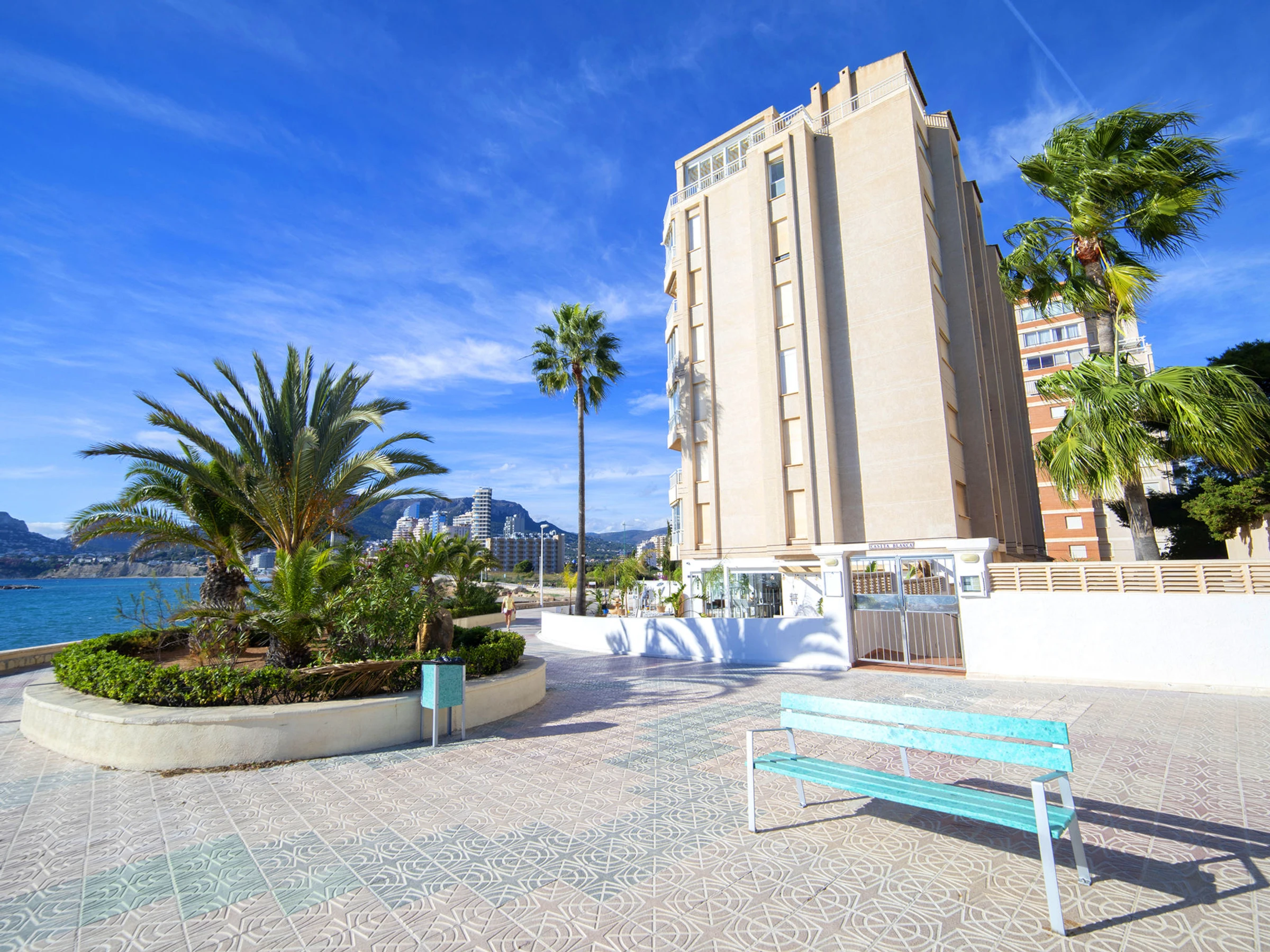 Appartementhaus "Casita Blanca", auf 6 Stockwerken. 2 km vom Zentrum von Calpe, sonnige Lage, direkt am Meer, direkt am Strand. Zur Mitbenutzung: Grundstück (eingezäunt). Im Hause: Fahrstuhl. Lebensmittelgeschäft, Supermarkt 900 m, Restaurant, Bar 10 m, Bushaltestelle 140 m, Sandstrand "Cala del Morello" 50 m. Sporthafen 750 m, Jacht-Hafen 750 m, Golfplatz (9 Loch) 11 km. Nahe gelegene Sehenswürdigkeiten: Aqualandia, Mundomar, Terra Mítica, Terra Natura, Benidorm Palace, Les Fonts de l'Algar.