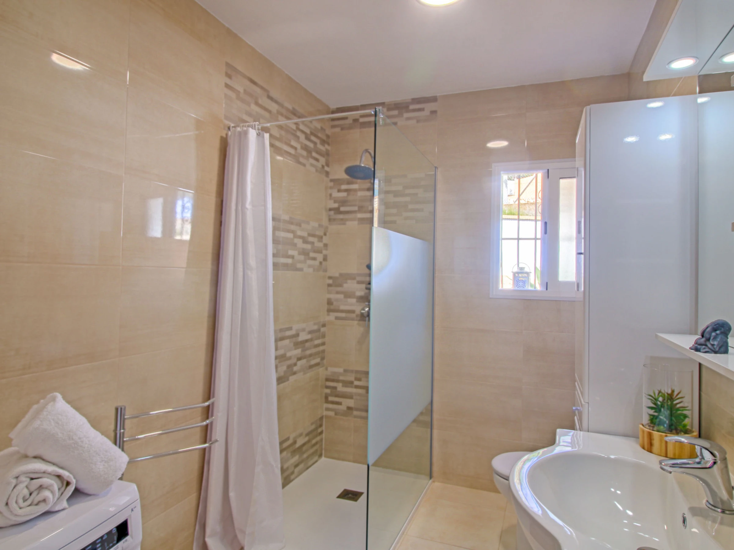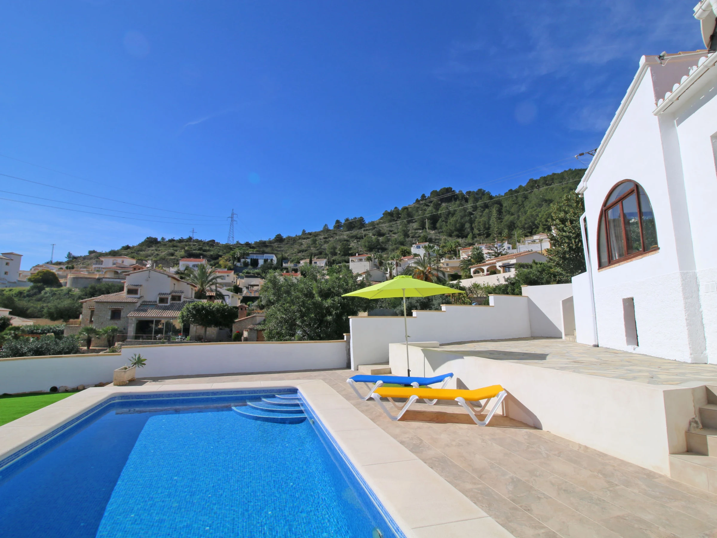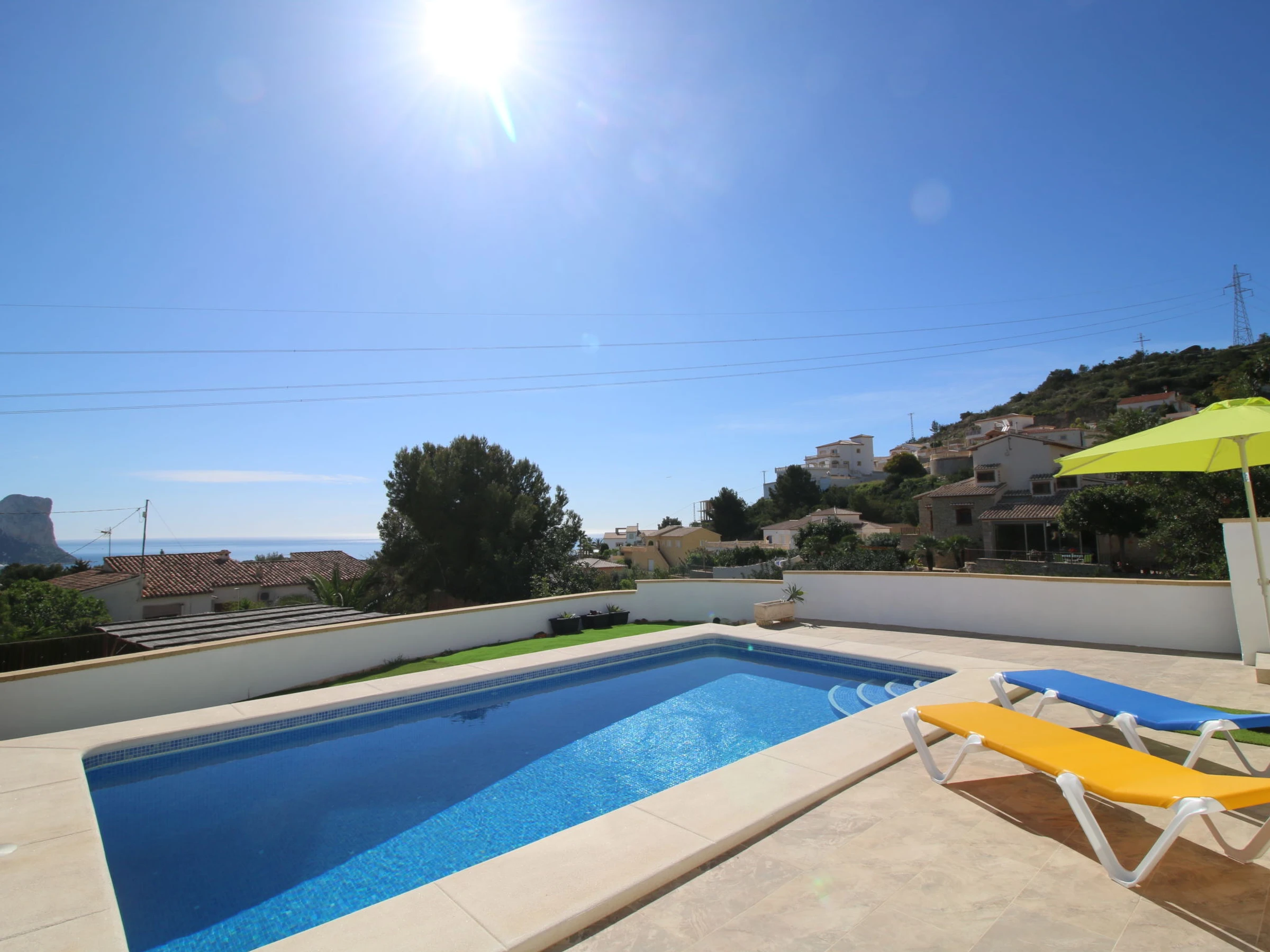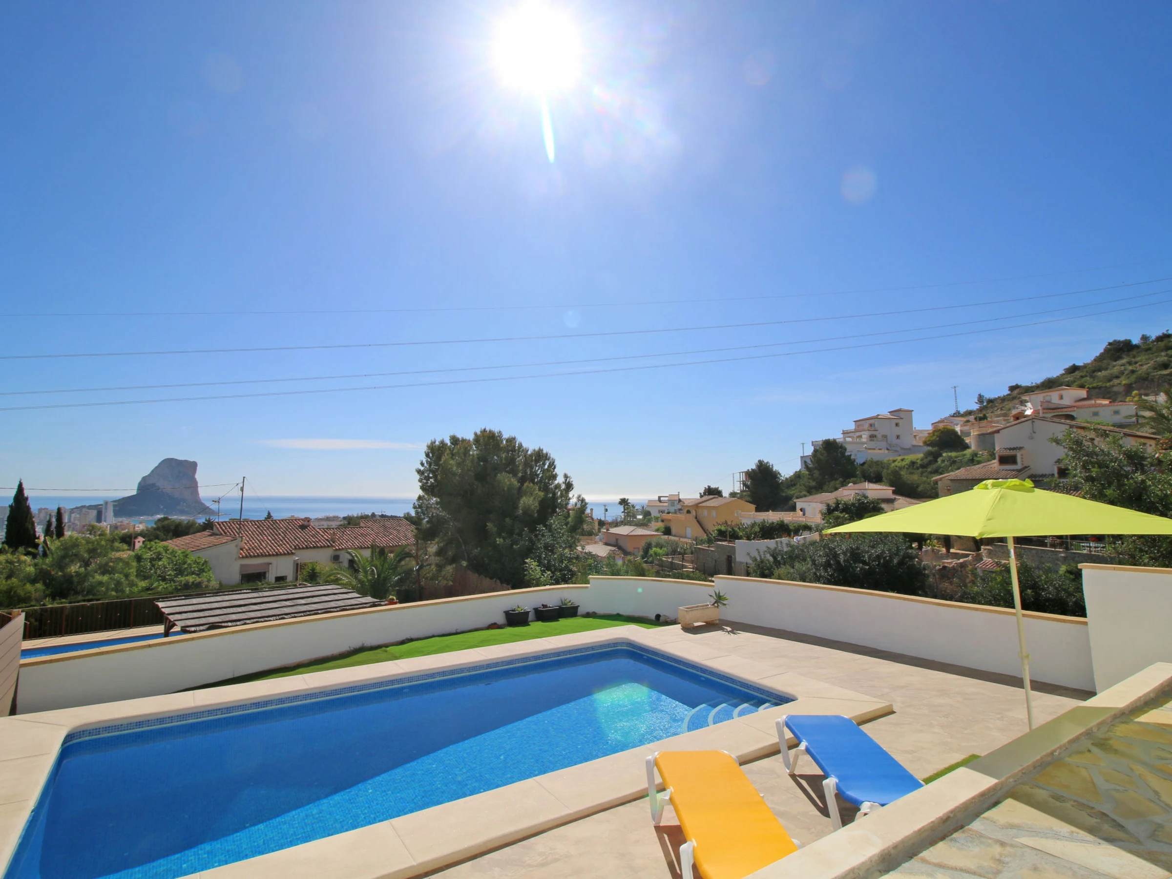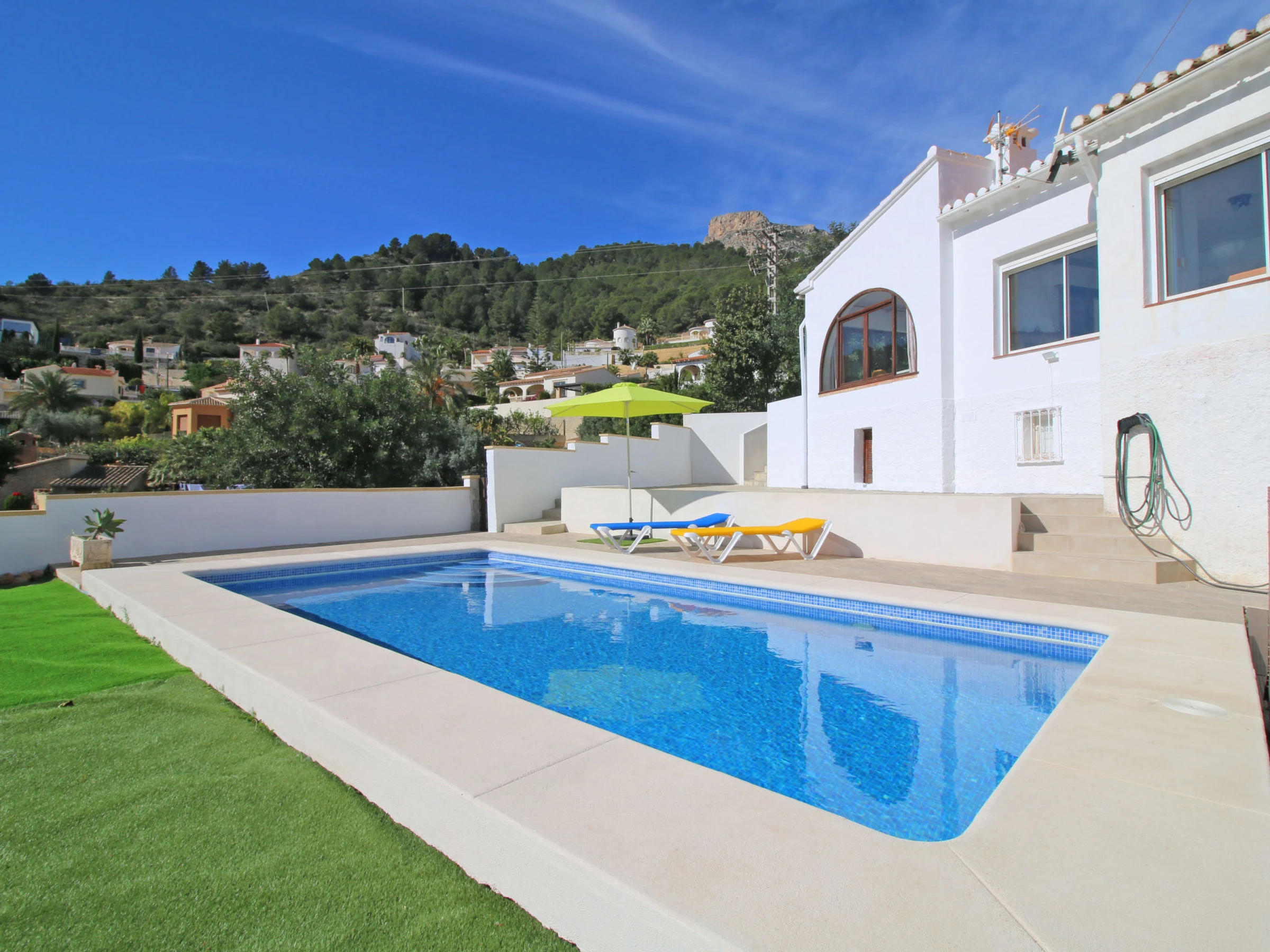Villa "Mimosa". 2 km vom Zentrum von Calpe, ruhige, sonnige Lage im Villenviertel, verkehrsberuhigte Zone, 2.5 km vom Meer, 2.5 km vom Strand. Zur Alleinbenutzung: Schwimmbad (7 x 4 m, saisonale Verfügbarkeit: [hidden] - [hidden] Aussendusche. Bushaltestelle 450 m.