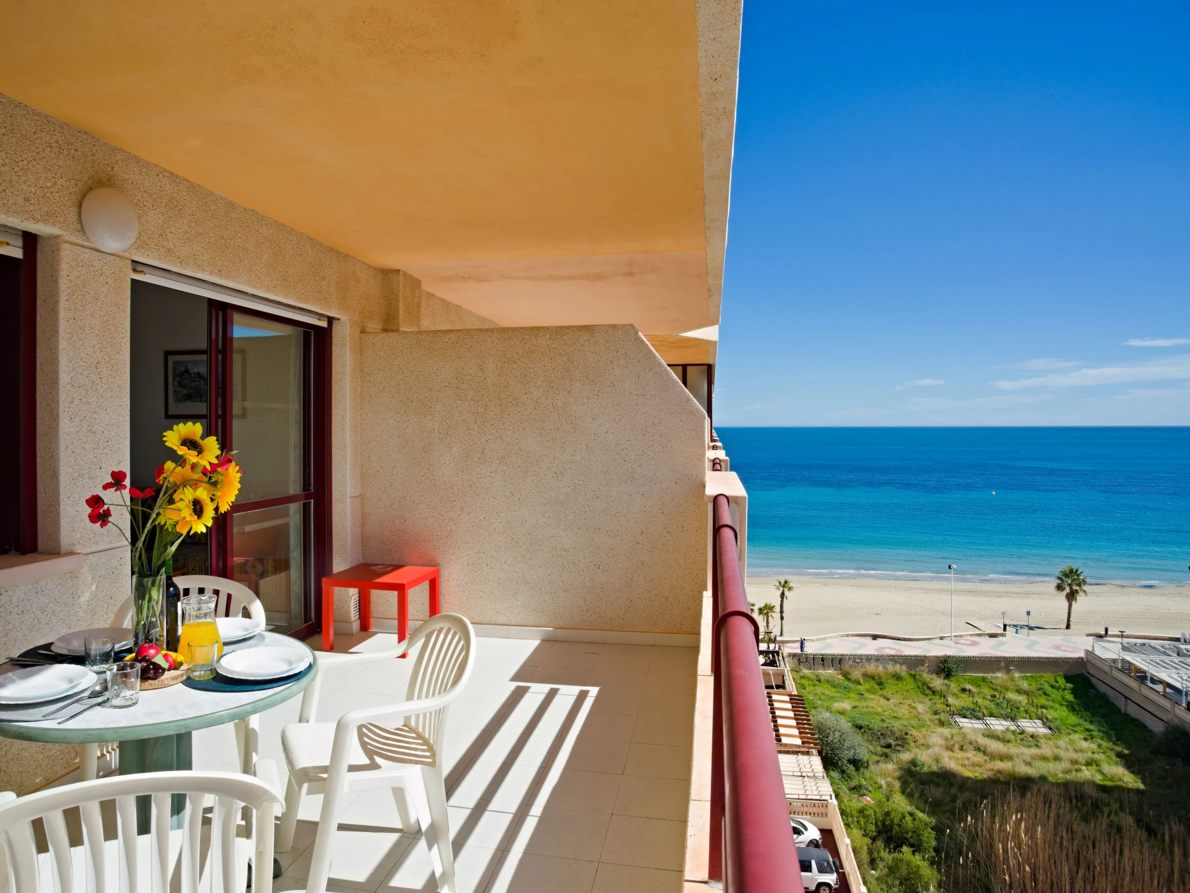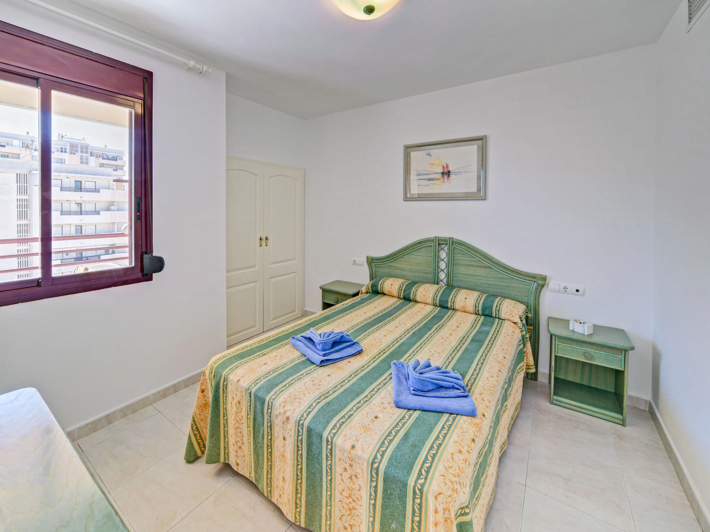 "Topacio III", 2-Zimmer-Wohnung 44 m2 im 7. Stock. Objekt geeignet für 2 Erwachsene + 2 Kinder. Einfach und komfortabel eingerichtet: Wohn-/Esszimmer mit 1 Diwanbett, Digital-TV, Klimaanlage und Warmluftheizung. Ausgang zur Terrasse. 1 Zimmer mit 1 franz. Bett (1 x 160 cm, Länge 200 cm), Klimaanlage und Warmluftheizung. Kleine, offene Küche (Backofen, 4 Flammen, Toaster, Wasserkocher, Mikrowelle, elektrische Kaffeemaschine). Bad/Dusche/WC. Terrasse. Seitliche Sicht auf das Meer und die Ortschaft. Zur Verfügung: Waschmaschine, Bügeleisen, Kinderhochstuhl, Babybett bis 2 Jahre, Haartrockner. Internet (WLAN, gratis). Parkplatz Nr. 18. Bitte beachten: geeignet für Familien. Nichtraucher-Haus. [hidden] // Reg. Nr.: ESFCTU00000302900052970700000000000000000[hidden]7