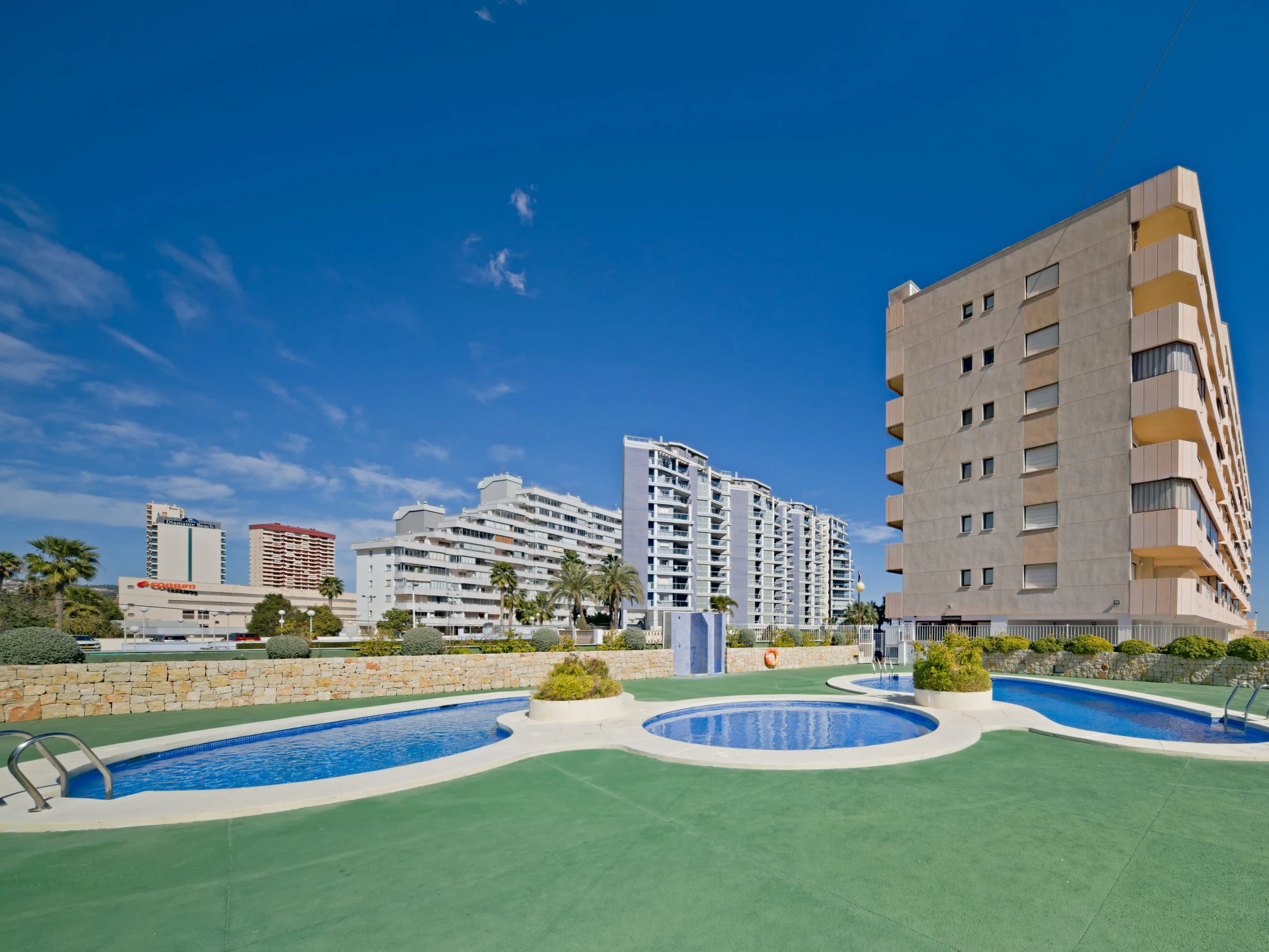 Playa de La Fosa: Schönes, komfortables Appartementhaus "Topacio III", auf 6 Stockwerken. 3.1 km vom Zentrum von Calpe, sonnige Lage, 10 m vom Meer, 10 m vom Strand, direkter Zugang zum Strand, in einer Sackgasse. Zur Mitbenutzung: Grundstück (eingezäunt), 2 Schwimmbäder (saisonale Verfügbarkeit: [hidden] und [hidden] Kinderbecken, Aussendusche. Im Hause: Fahrstuhl. Einkaufsgeschäft, Lebensmittelgeschäft, Supermarkt 500 m, Restaurant 100 m, Café 50 m, Fahrradverleih 300 m, Bushaltestelle "Parada Bus" 400 m, Sandstrand "Playa de la Fosa" 10 m. Sporthafen 1.1 km, Jacht-Hafen 1.1 km, Surfschule 1.1 km, Segelschule 1.1 km. Nahe gelegene Sehenswürdigkeiten: Aqualandia, Mundomar, Terra Mítica, Terra Natura, Benidorm Palace (Benidorm). Bitte beachten: geeignet für Familien, geeignet für Senioren.