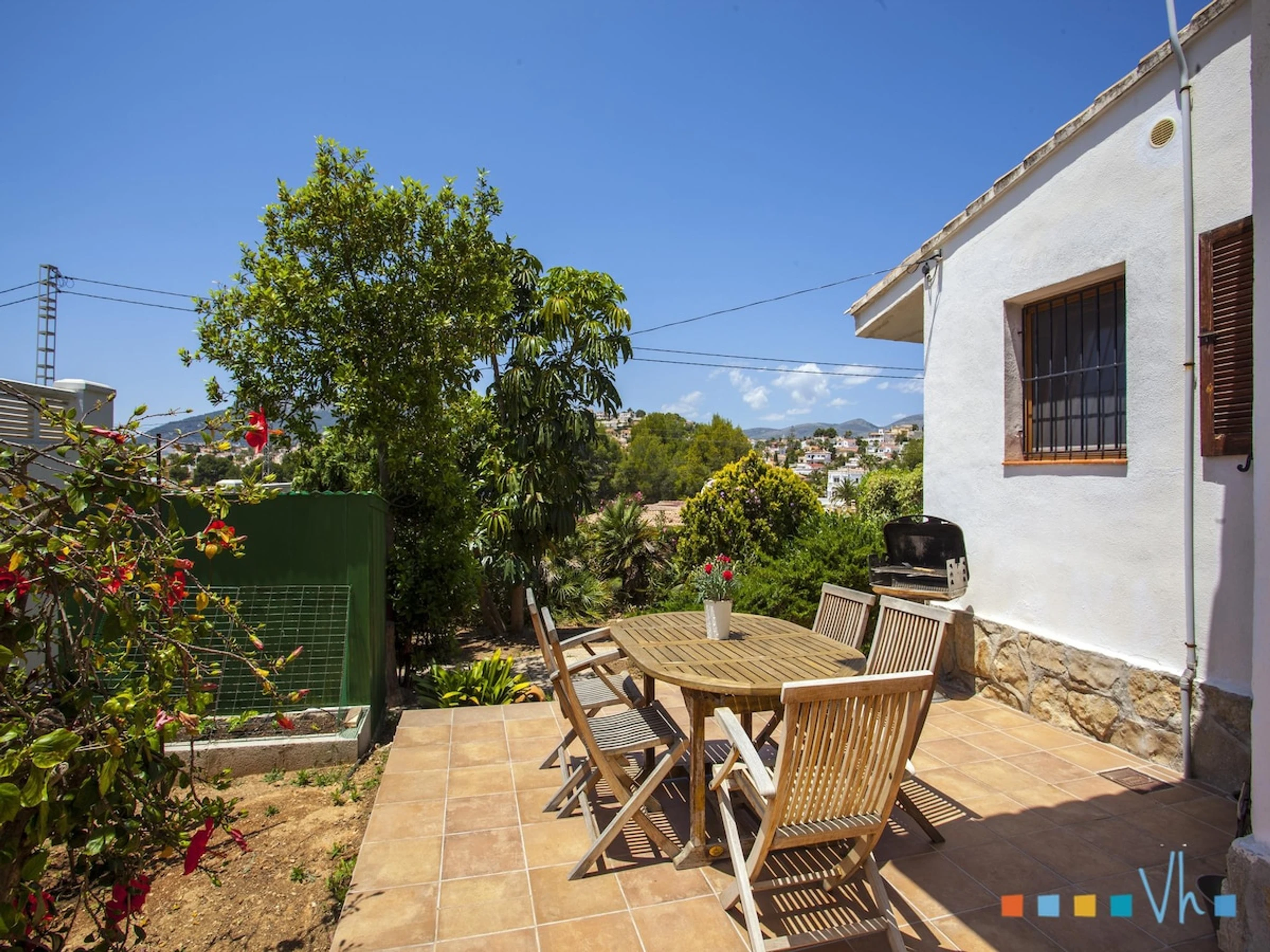 Der Charme des Hausäußeren zeigt sich in den prächtigen Pflanzen, Blumen und Vegetation, die jede Ecke schmücken und der Immobilie Freude und Farbe verleihen. Vom Wohn-Esszimmer aus gelangt man auf eine geräumige Terrasse mit Panoramablick auf die Berge, einen überdachten Bereich zum Schattengenießen und einen Tisch für Dinners im Freien. Die bequemen Sessel laden zur Erholung und zum Sonnenbaden ein, während der Pool eine erfrischende Abkühlung bietet.