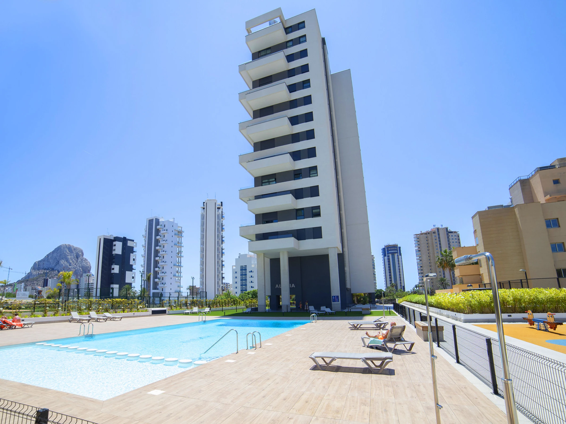 Modernes, schönes Appartementhaus "Alexia", Baujahr 2023. 1 km vom Zentrum von Calpe, sonnige Lage, 200 m vom Meer, 200 m vom Strand. Zur Mitbenutzung: Grundstück (eingezäunt), Garten, Schwimmbad (20 x 9 m, saisonale Verfügbarkeit: [hidden] - [hidden] Kinderbecken, Aussendusche, Kinderspielplatz. Im Hause: Fitnessraum, Fahrstuhl. Einkaufsgeschäft, Lebensmittelgeschäft, Supermarkt 200 m, Einkaufszentrum 1 km, Restaurant 100 m, Bushaltestelle "Parada Bus" 550 m, Sandstrand "Playa Arenal" 200 m. Sporthafen 1.7 km, Jacht-Hafen 1.7 km, Golfplatz (9 Loch) 11 km. Nahe gelegene Sehenswürdigkeiten: Aqualandia, Mundomar, Terra Mítica, Terra Natura, Les Fonts de l'Algar, Castillo de Guadalest. Der Besitzer akzeptiert keine Jugendgruppen.