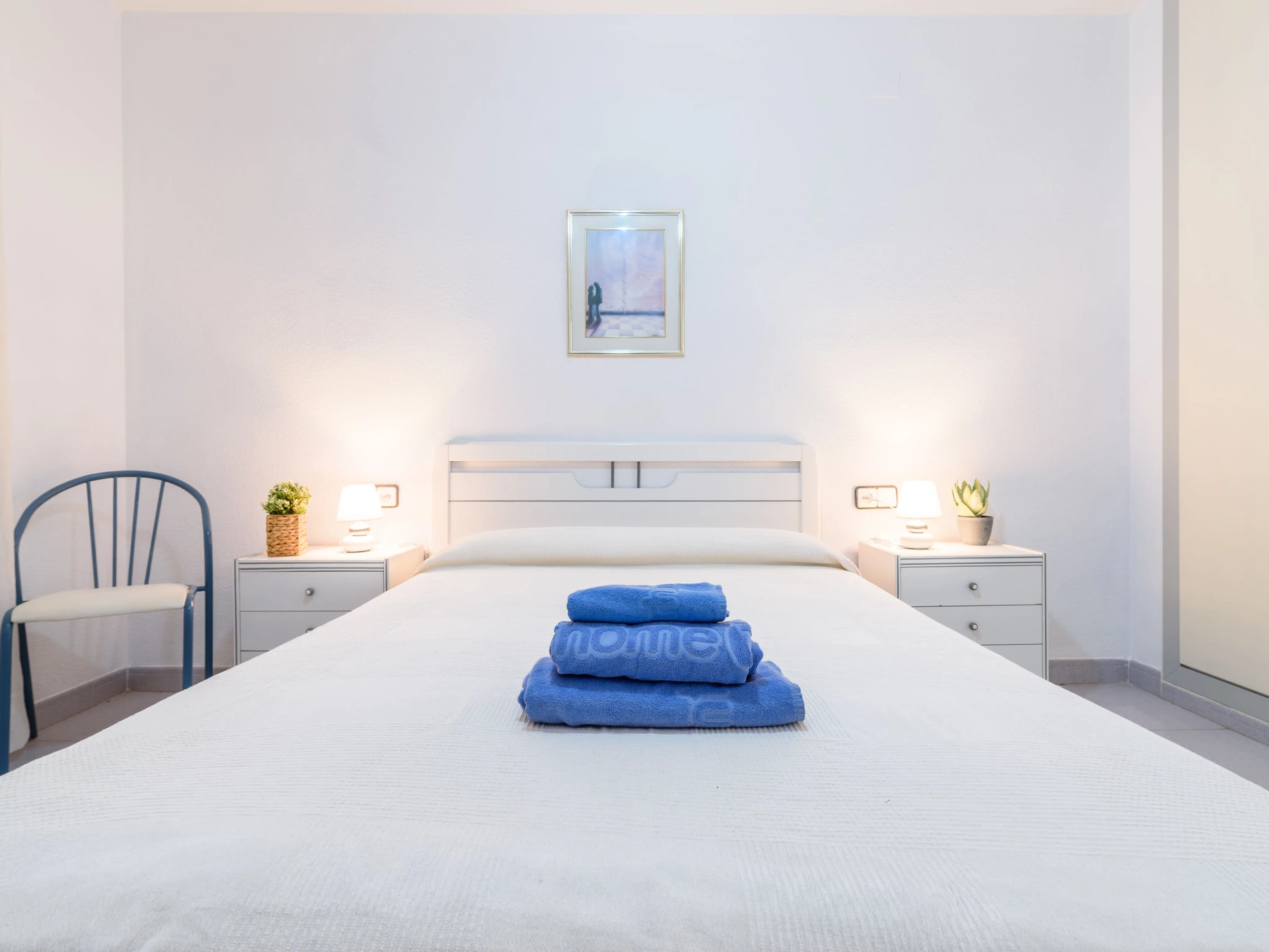 "Cambrils Park B Argomaniz", 2-Zimmer-Wohnung 34 m2. Zweckmässig und schön eingerichtet: Wohn-/Schlafzimmer mit 1 Doppeldiwanbett (135 cm, Länge 190 cm), Digital-TV, Klimaanlage und Warmluftheizung. Ausgang zur Terrasse. 1 Zimmer mit 1 franz. Bett (150 cm, Länge 190 cm). Offene Küche (4 Glaskeramikplatten, Toaster, Wasserkocher, Mikrowelle, elektrische Kaffeemaschine). Bad/WC. Keine Heizmöglichkeit. Terrasse. Terrassenmöbel. Sicht auf das Meer. Zur Verfügung: Waschmaschine, Bügeleisen, Haartrockner. Parkplatz Nr. 10. [hidden]