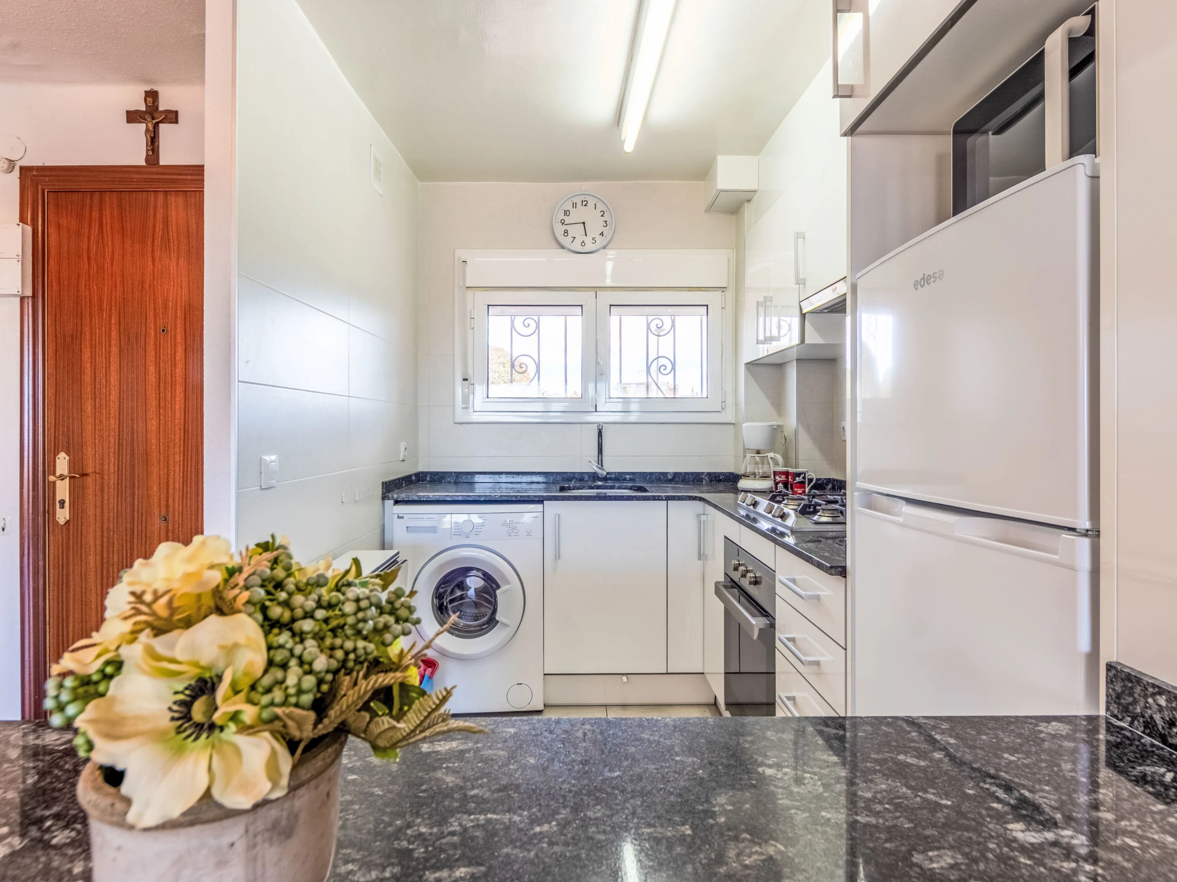 "Pompeyo II", 3-Zimmer-Wohnung 80 m2. Wohn-/Esszimmer mit Esstisch, Digital-TV, Klimaanlage und Warmluftheizung. Ausgang zur Terrasse. 1 Zimmer mit 1 franz. Bett (150 cm, Länge 190 cm). 1 Zimmer mit 2 Betten (90 cm, Länge 190 cm). Offene Küche (Backofen, 4 Flammen, Toaster, Wasserkocher, Mikrowelle, elektrische Kaffeemaschine). Dusche/WC. Heizung nicht in allen Räumen. Terrasse. Fernsicht auf das Meer. Zur Verfügung: Waschmaschine, Bügeleisen, Haartrockner. Bitte beachten: Nichtraucher-Haus. [hidden] // Reg. Nr.: ESFCTU000043031000503890000000000000000HUTT-[hidden]