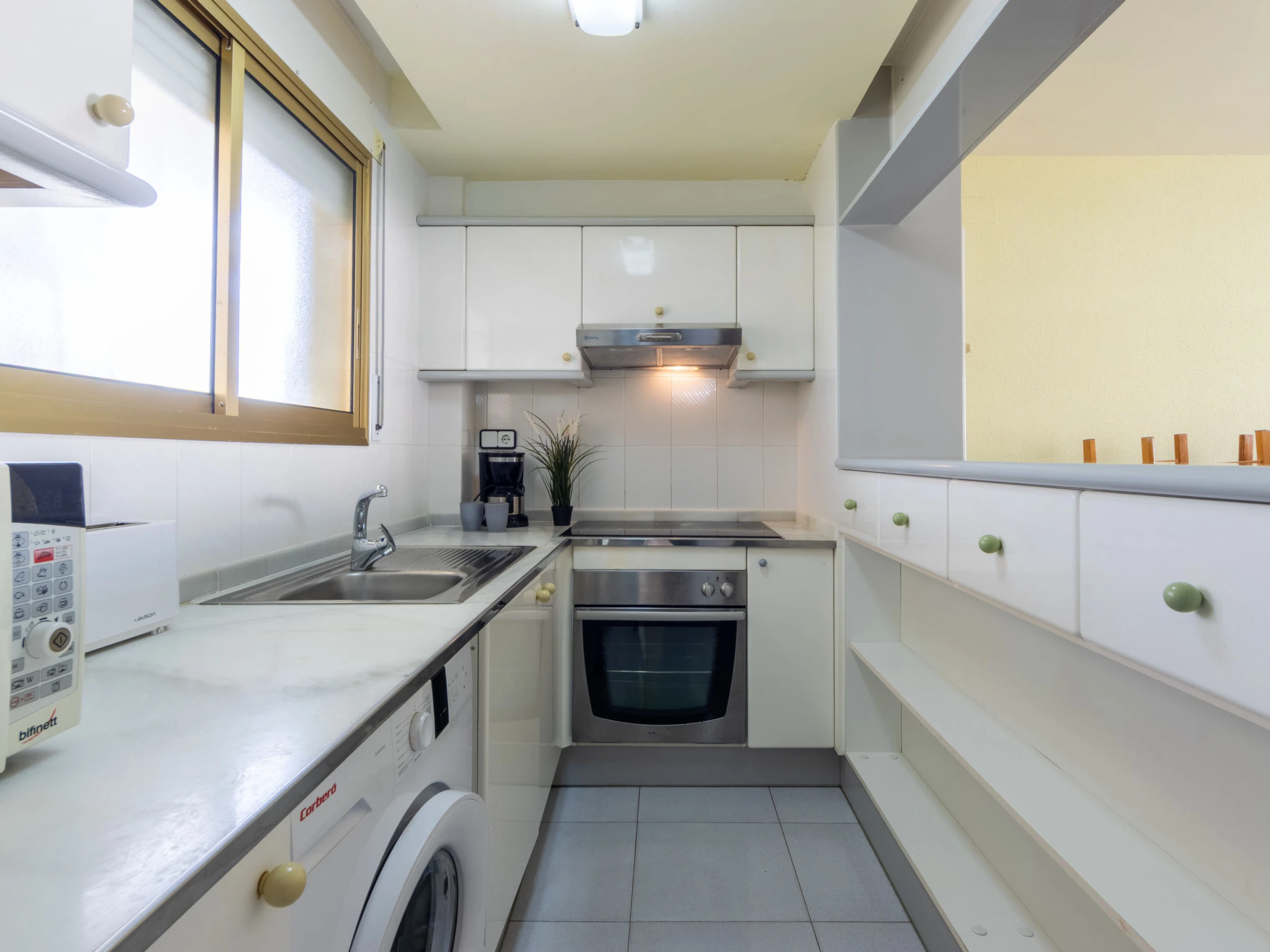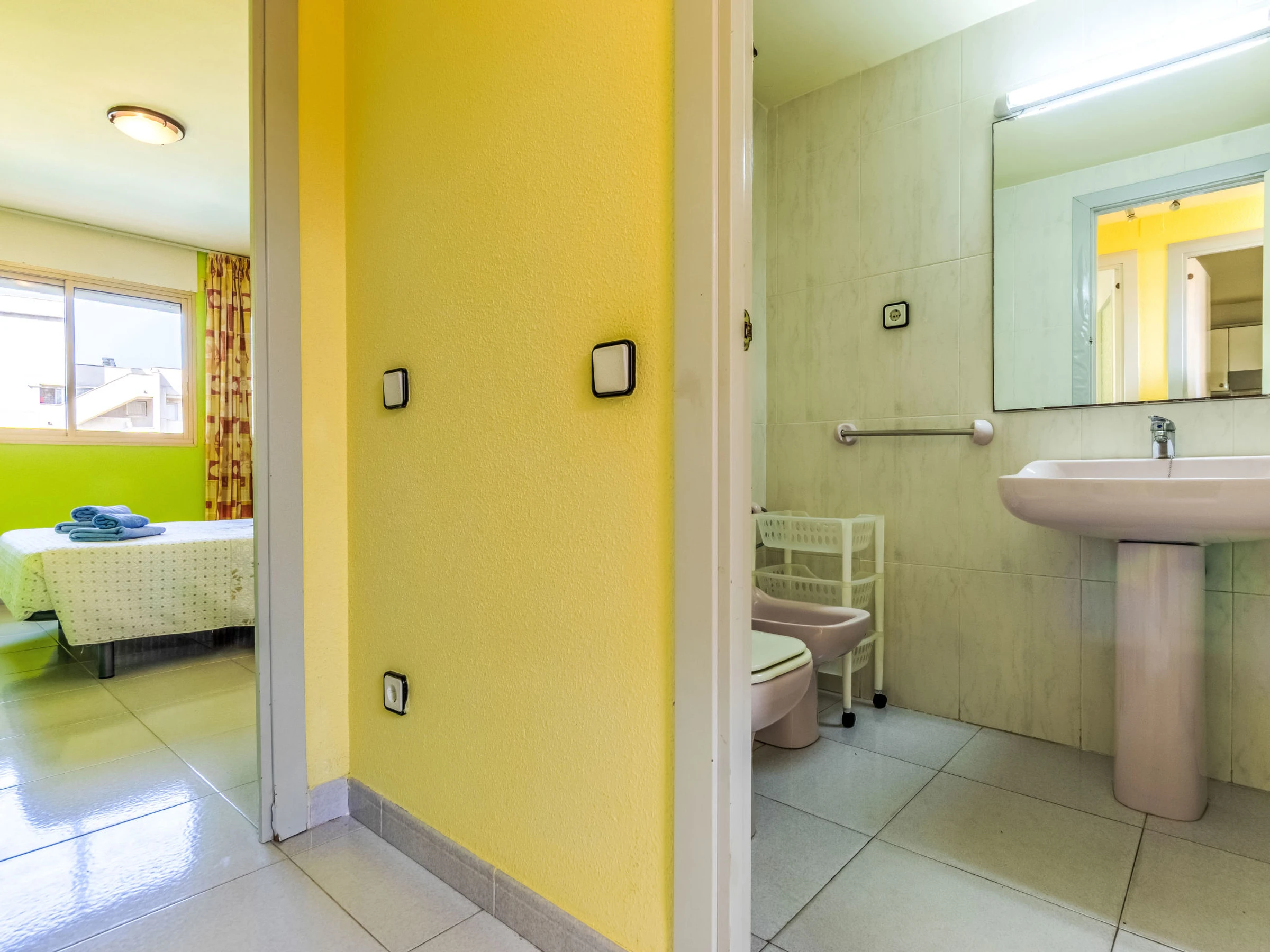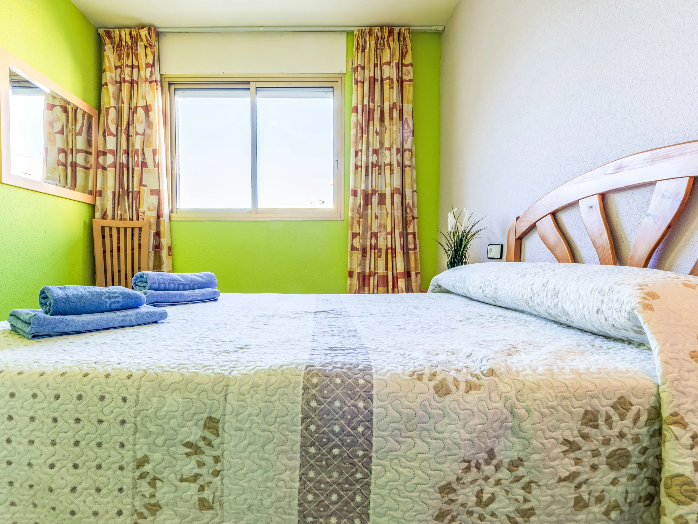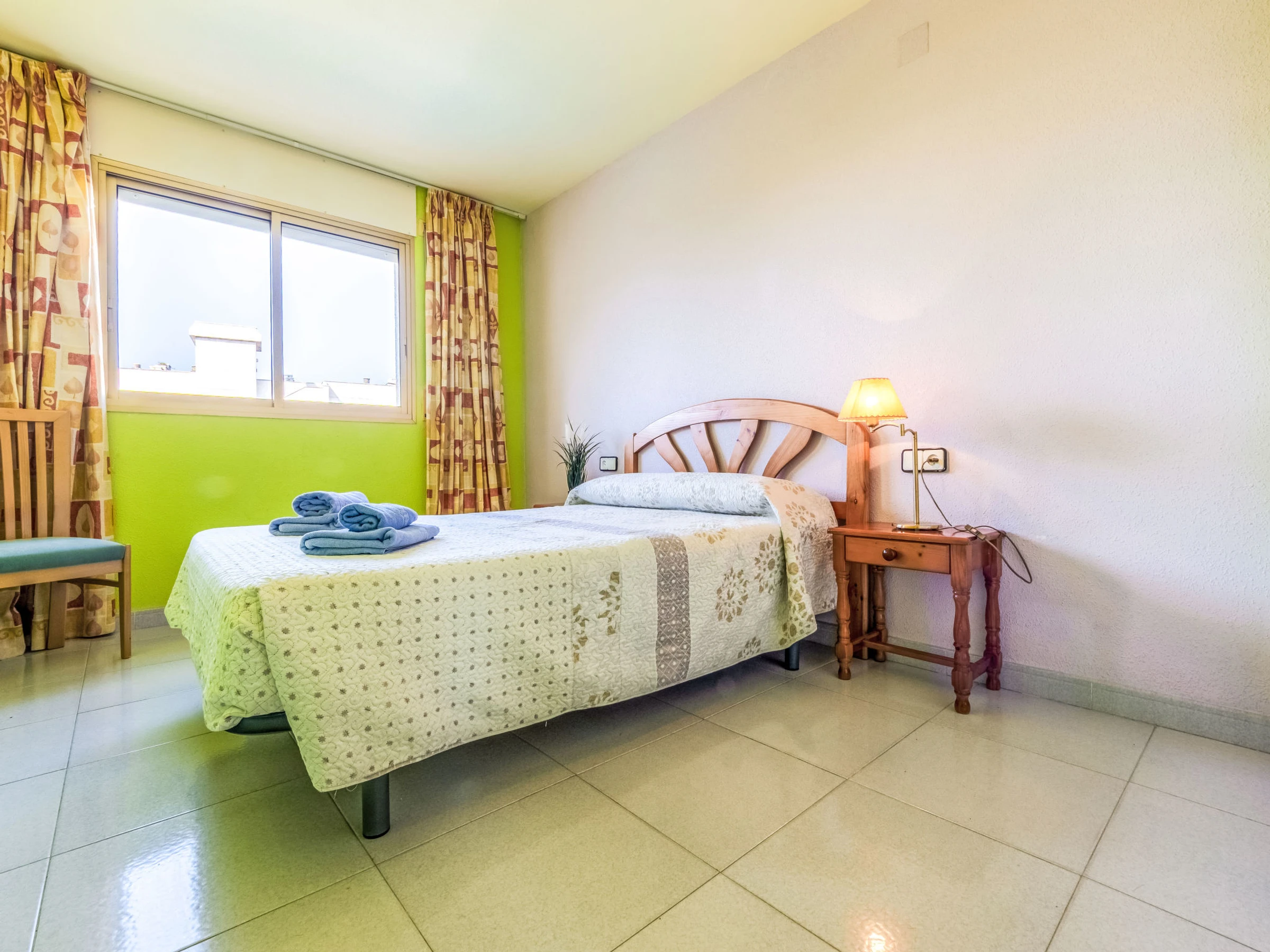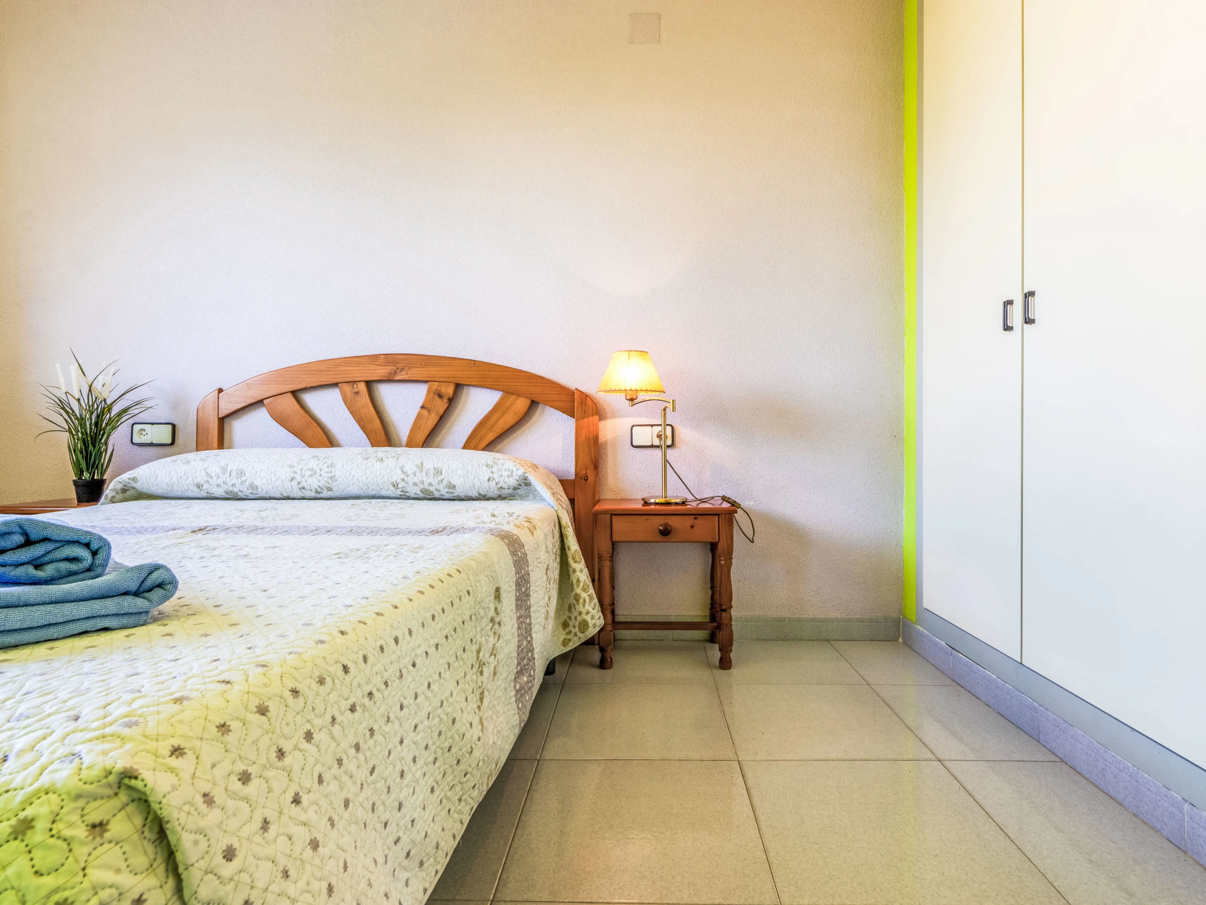 "Cambrils Park C Lorenzo", 2-Zimmer-Wohnung 40 m2. Zweckmässig eingerichtet: Wohn-/Schlafzimmer mit 1 Doppeldiwanbett (135 cm, Länge 190 cm), Digital-TV und Warmluftheizung. Ausgang zur Terrasse. 1 Zimmer mit 1 franz. Bett (150 cm, Länge 190 cm). Offene Küche (Backofen, 4 Glaskeramikplatten, Toaster, Wasserkocher, Mikrowelle, elektrische Kaffeemaschine) mit Bar. Bad/WC. Keine Heizmöglichkeit. Terrasse. Terrassenmöbel. Sicht auf das Schwimmbad und den Garten. Zur Verfügung: Waschmaschine, Bügeleisen, Haartrockner. Parkplatz Nr. 63. [hidden] // Reg. Nr.: ESFCTU00004303100020154300000000000000[hidden]-099