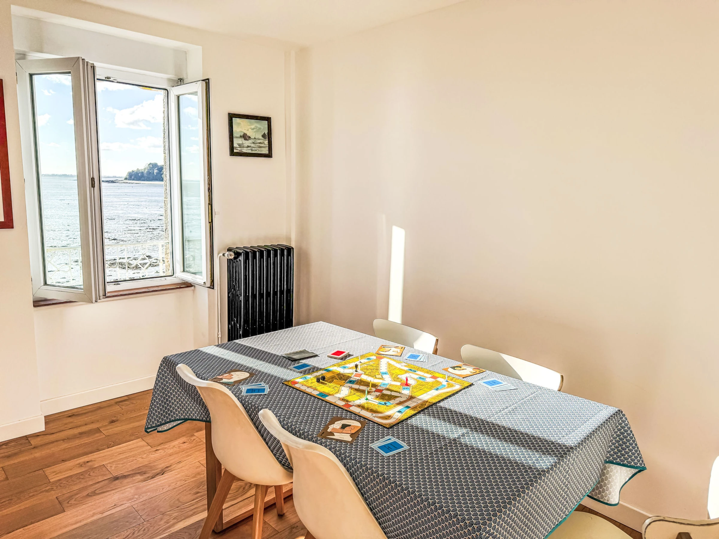 "L'Emeraude", 2-Zimmer-Wohnung 55 m2 im 1. Stock. Schön und modern eingerichtet: grosses Wohn-/Esszimmer 30 m2 mit 1 Diwanbett (140 cm, Länge 190 cm). 1 Zimmer mit 1 franz. Bett (1 x 140 cm, Länge 190 cm). Offene Küche (Backofen, Geschirrspüler, 4 Induktionskochplatten, Toaster, Wasserkocher, Mikrowelle, elektrische Kaffeemaschine). Bad, sep. WC. G-Heizung. Parkettboden. Terrasse 12 m2. Terrassenmöbel. Sehr schöne Sicht auf das Meer und den Hafen. Zur Verfügung: Waschmaschine. Internet (Wireless LAN, extra). Garage (1 Auto). Bitte beachten: Nichtraucher-Unterkunft. Rauchmelder. Inserat einer Privatperson nach Artikel 155, IV, CGI.