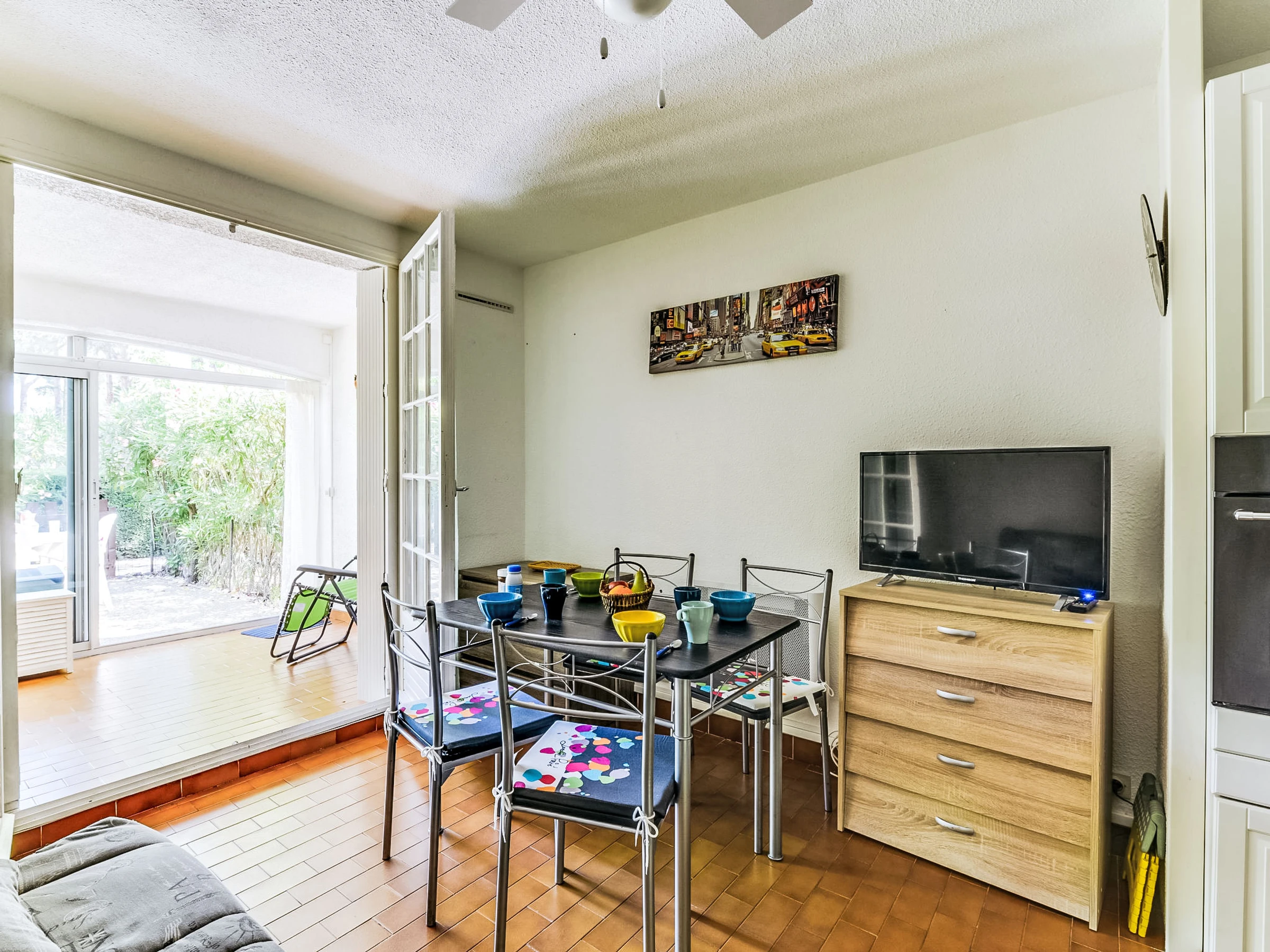 Schöne Residenz "Résidence Green Village 2", umgeben von Bäumen. Im Ortsteil Tennis/Pinède, ruhige Lage, 1 km vom Meer, 1 km vom Strand. Zur Mitbenutzung: Schwimmbad eckig eingezäunt (15 x 6 m, 150 - 150 cm tief, saisonale Verfügbarkeit: [hidden] - [hidden] Öffnungszeiten Schwimmbad: 08:30-20:30). Lebensmittelgeschäft 200 m, Restaurant 1 km, Bar 1 km, Bäckerei 1 km, Zentrum zu Fuss in 12 Minuten erreichbar, Bushaltestelle "Maraval" 350 m, Sandstrand "La roquille" 1.3 km. Sporthafen 1.6 km, Golfplatz (27 Loch) 6 km, Tennis 700 m, Reitstall 1.1 km. Nahe gelegene Sehenswürdigkeiten: Casino 850 m, Musée de l'Ephèbe 1 km, Grande Roue 1.5 km, Aqualand 2.2 km, Ile des Loisirs 2.6 km. , 1 eingezäuntes quadratisches Planschbecken (5,5 x5,5 m) 0,30 m tief. Sandstrand 12 Gehminuten entfernt.