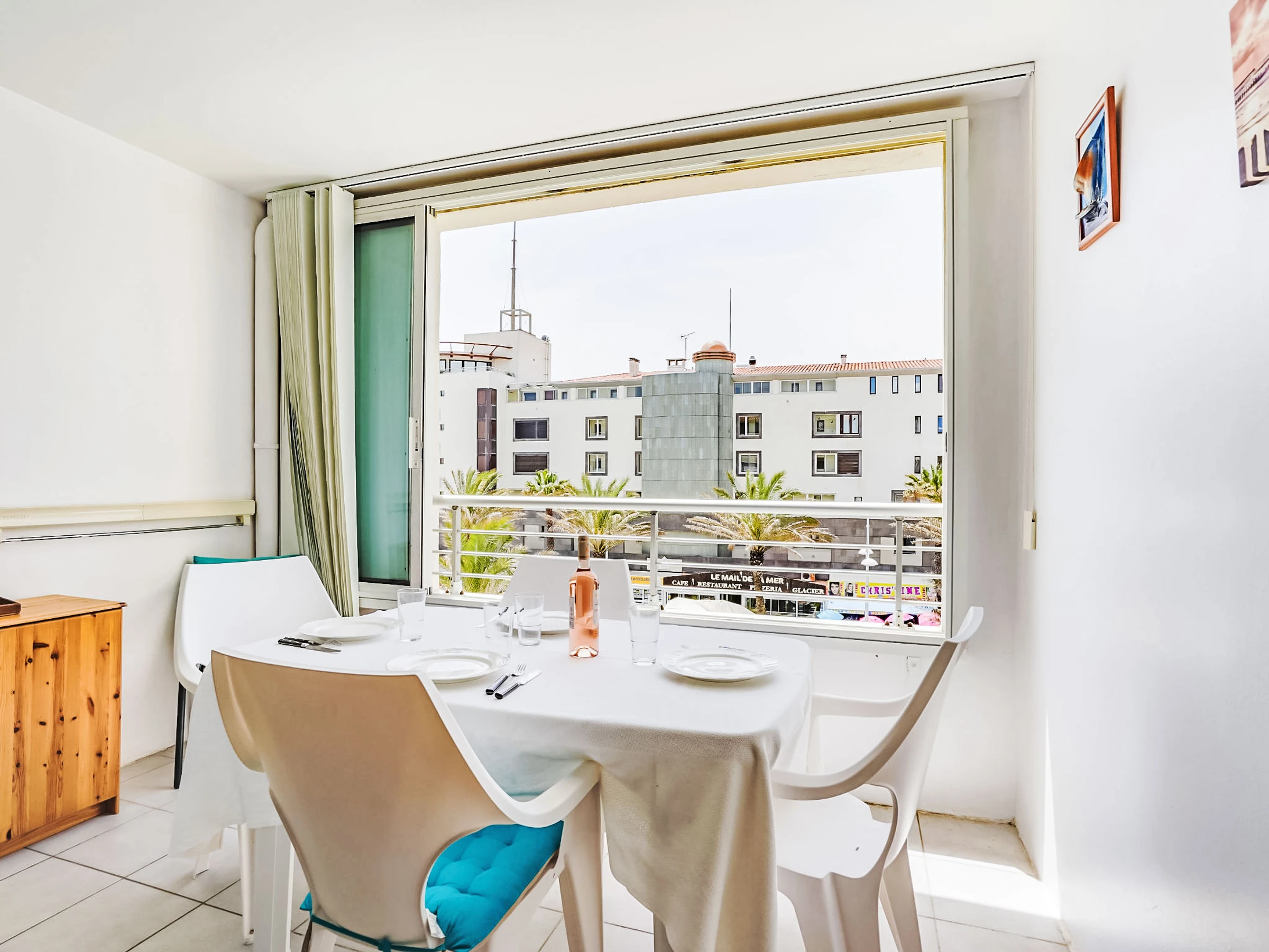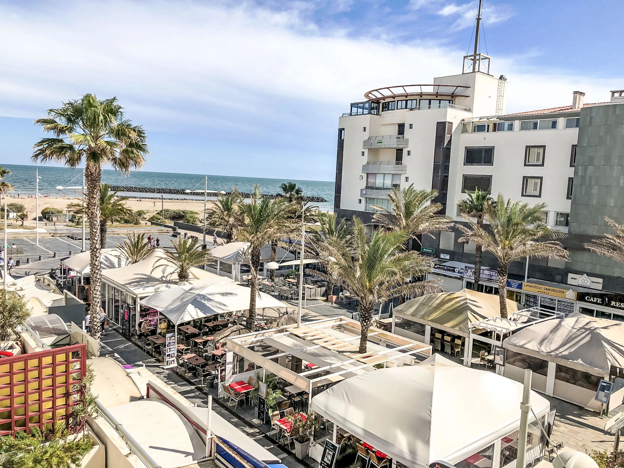 Residenz "Le Sunset/Cap Sud". Im Ortsteil Rochelongue, 100 m vom Meer, 100 m vom Strand. Zur Mitbenutzung: Garten (eingezäunt), Schwimmbad (12 x 6 m, 40 - 175 cm tief, saisonale Verfügbarkeit: [hidden] - [hidden] Kinderspielplatz. In der Anlage: Fahrstuhl. Öffentliche Parkplätze 50 m auf der Strasse. Einkaufsgeschäft, Lebensmittelgeschäft, Restaurant 350 m, Bäckerei 110 m, Bushaltestelle "Mail de Rochelongue" 280 m, Sandstrand "Rochelongue" 230 m. Sporthafen 3 km, Golfplatz (27 Loch) 1.5 km, Tennis 3 km, Reitstall 1.4 km. Nahe gelegene Sehenswürdigkeiten: Aqualand 1.7 km, Ile des Loisirs 1.9 km, Musée de l'Ephèbe 3 km, Casino 2.5 km, Luna Park 2.4 km, Accrobranche 4.7 km.