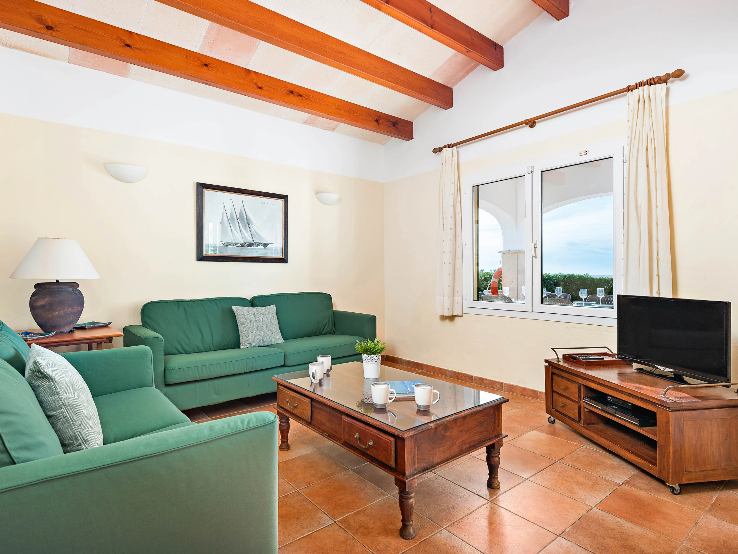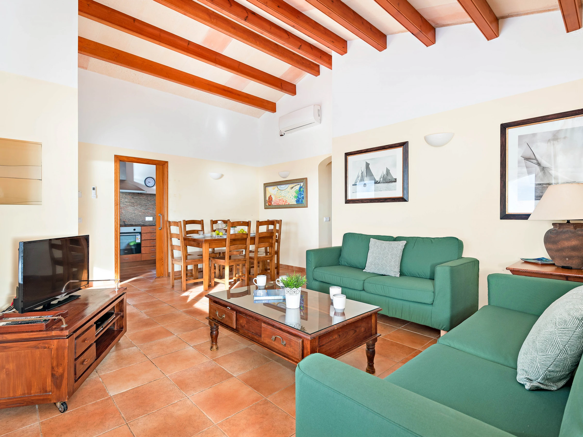 Der Wohnbereich verfügt über TV mit digitalen Kanälen, DVD-Player und kostenfreiem WLAN. Die Küche ist vollständig ausgestattet.