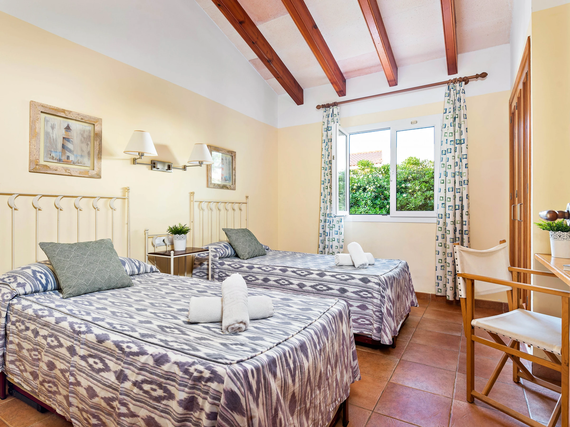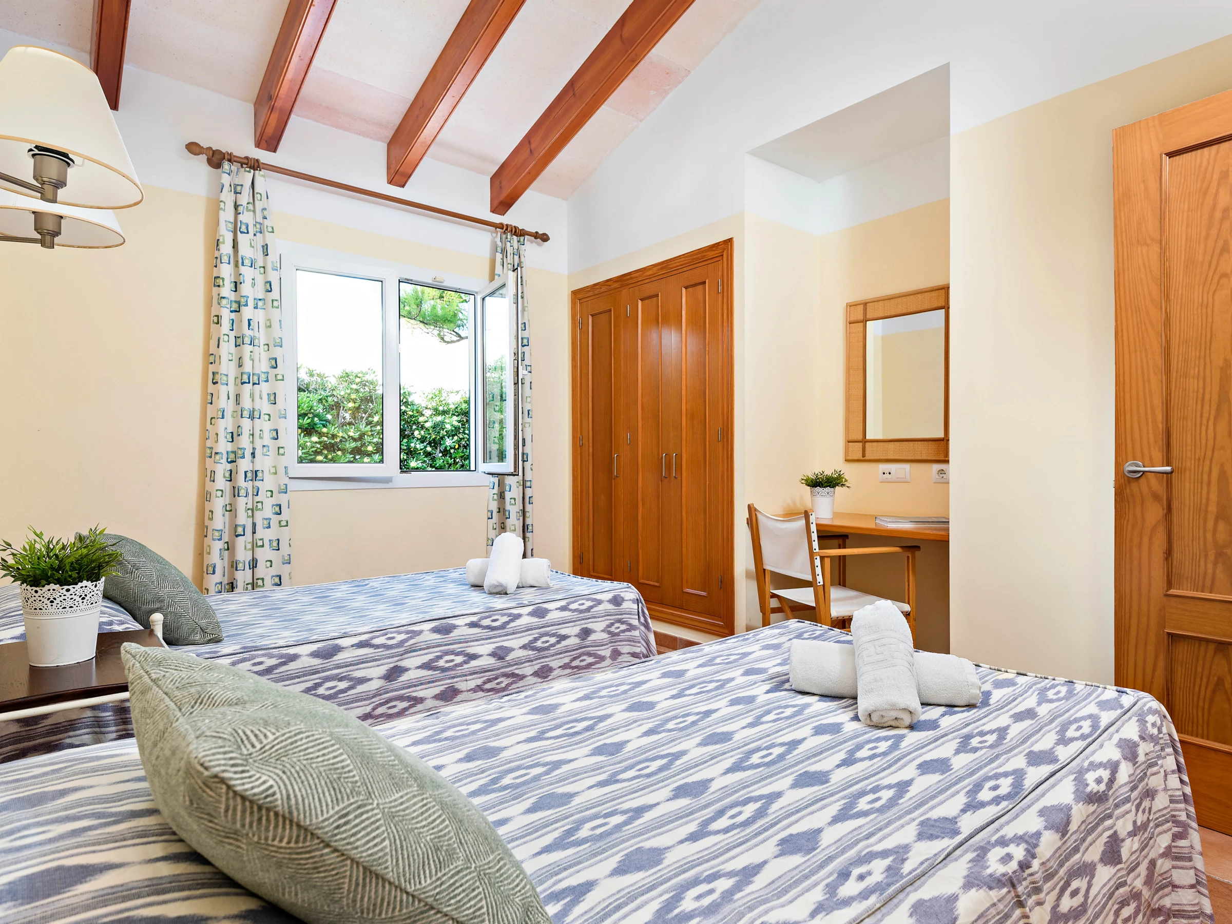Die Villa verfügt über ein Schlafzimmer mit Doppelbett und eigenem Bad sowie zwei Schlafzimmern mit jeweils zwei Einzelbetten, die ein separates Bad teilen. Es gibt einen Safe und alle Räume verfügen über Klimaanlage.