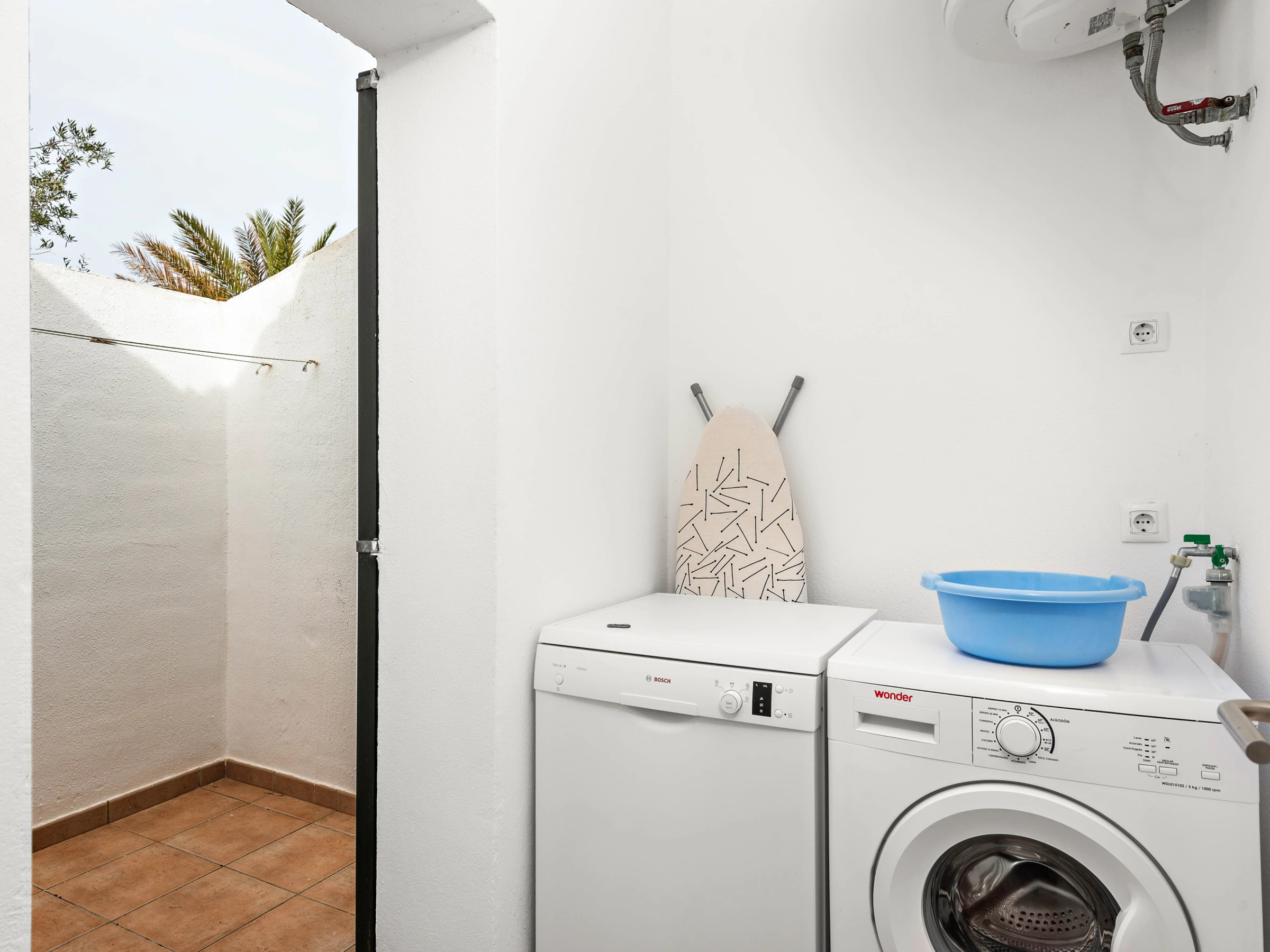 Die Villa ist sowohl innen als auch außen im klassischen menorquinischen Stil gehalten. Sie liegt auf einem Grundstück von etwa 500 m² und das Haus hat insgesamt 100 m² Wohnfläche.