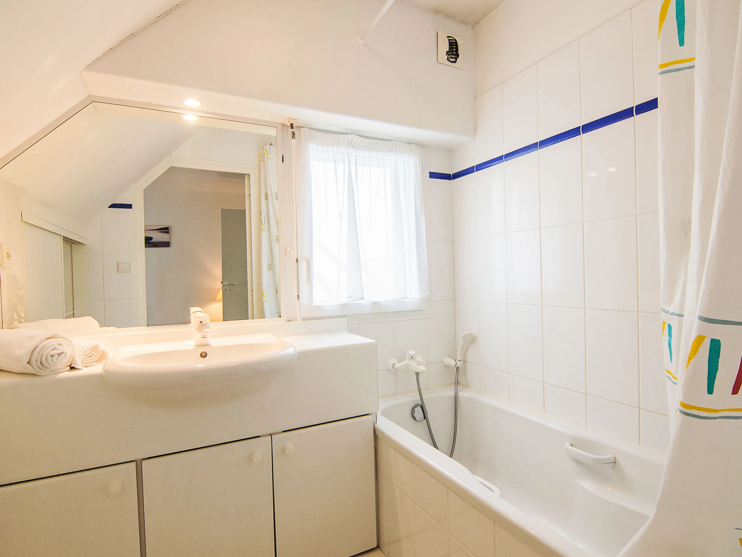 3-Zimmer-Maisonette-Wohnung 45 m2 im 1. Stock. Schön eingerichtet: Wohn-/Esszimmer mit 1 Doppeldiwanbett (1 x 140 cm, Länge 190 cm), TV (Flachbildschirm). Ausgang zum Balkon. 1 Zimmer mit 1 franz. Bett (1 x 140 cm, Länge 190 cm), Bad/Dusche. Kochnische (Geschirrspüler, 4 Glaskeramikplatten, Mikrowelle). Sep. WC. Obergeschoss: 1 Zimmer mit 2 Betten (90 cm, Länge 190 cm), Dusche. E-Heizung. Balkonmöbel. Sicht auf das Schwimmbad. Zur Verfügung: Waschmaschine. Internet (WLAN, gratis). Parkplatz Nr. 80. Bitte beachten: geeignet für Familien. Maximal 1 Haustier/Hund erlaubt. Rauchmelder. [hidden]