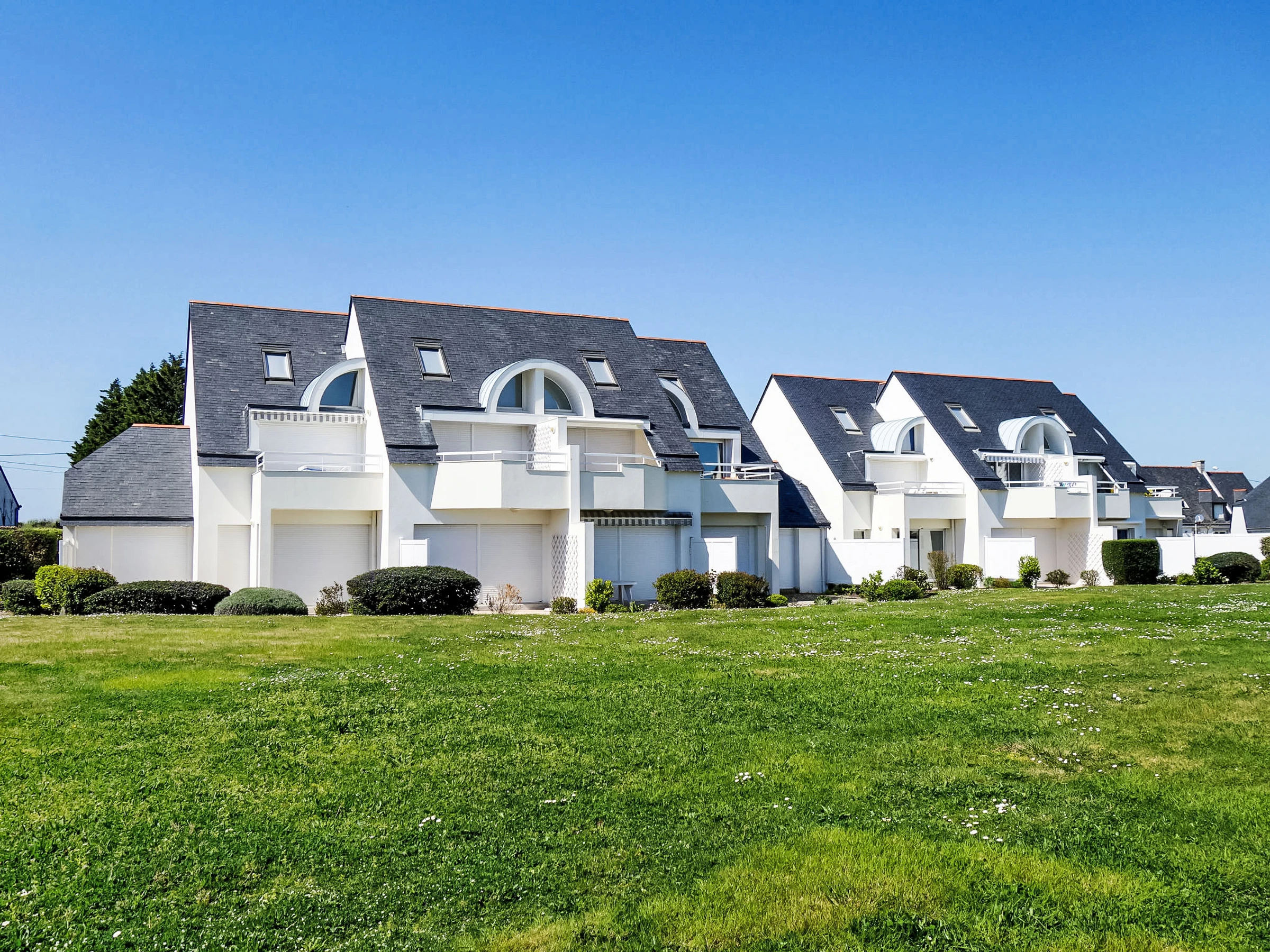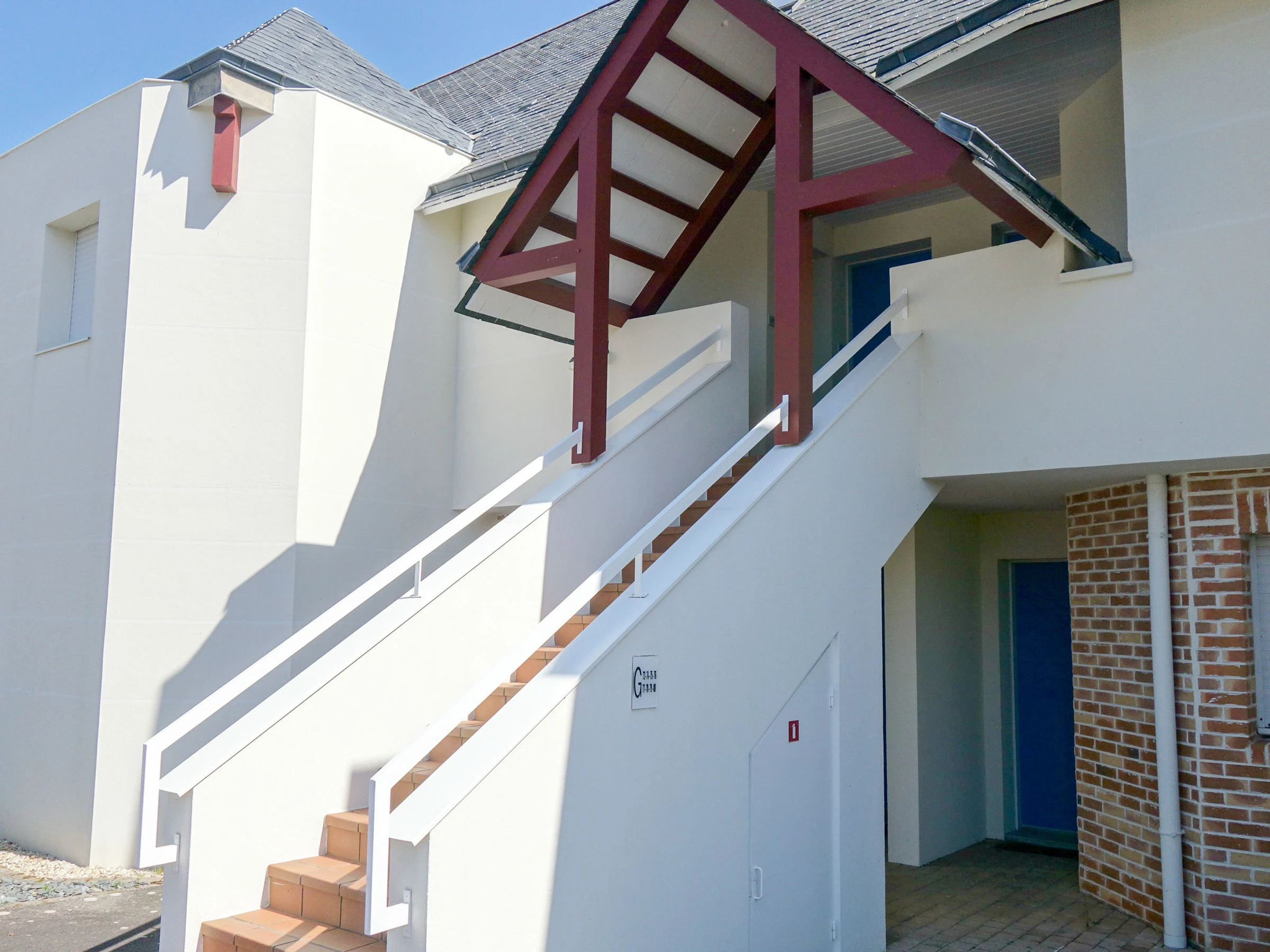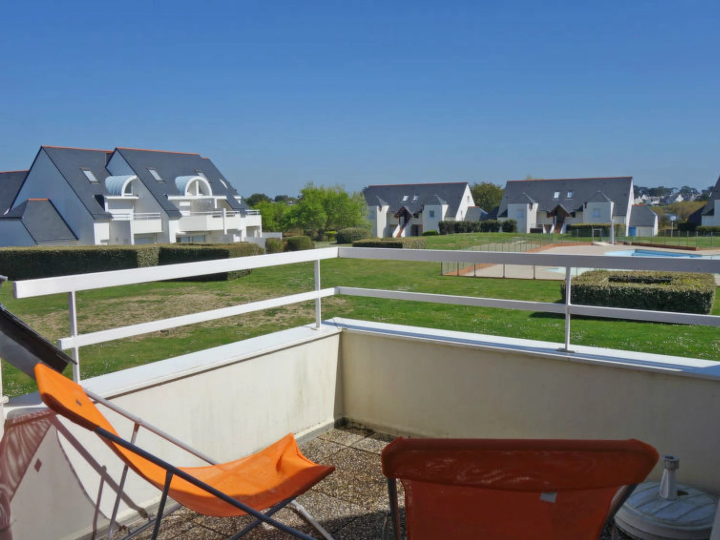 Carnac Plage: Ferienanlage "Domaine des Tadornes", auf 2 Stockwerken. 4 Häuser in der Residenz. Im Ort, 1.2 km vom Zentrum von Carnac Plage, 1 km vom Meer, 1 km vom Strand. Zur Mitbenutzung: Schwimmbad eingezäunt (saisonale Verfügbarkeit: [hidden] - [hidden] Parkplatz Nr. 80. Supermarkt 600 m, Einkaufszentrum 1.2 km, Bäckerei 800 m, Sandstrand "Plage de Saint Colomban" 1.5 km, Thermalbad "Thalassothérapie de Carnac" 1.2 km. Jacht-Hafen 5 km, Golfplatz (18 Loch) 13 km, Surfschule 8 km, Segelschule 1 km. Nahe gelegene Sehenswürdigkeiten: Les alignements de Carnac 1.2 km, La Trinité sur Mer 6 km, Quiberon et la presqu'ile 15 km, Belle ile en Mer, Vannes 35 km, Lorient 65 km.