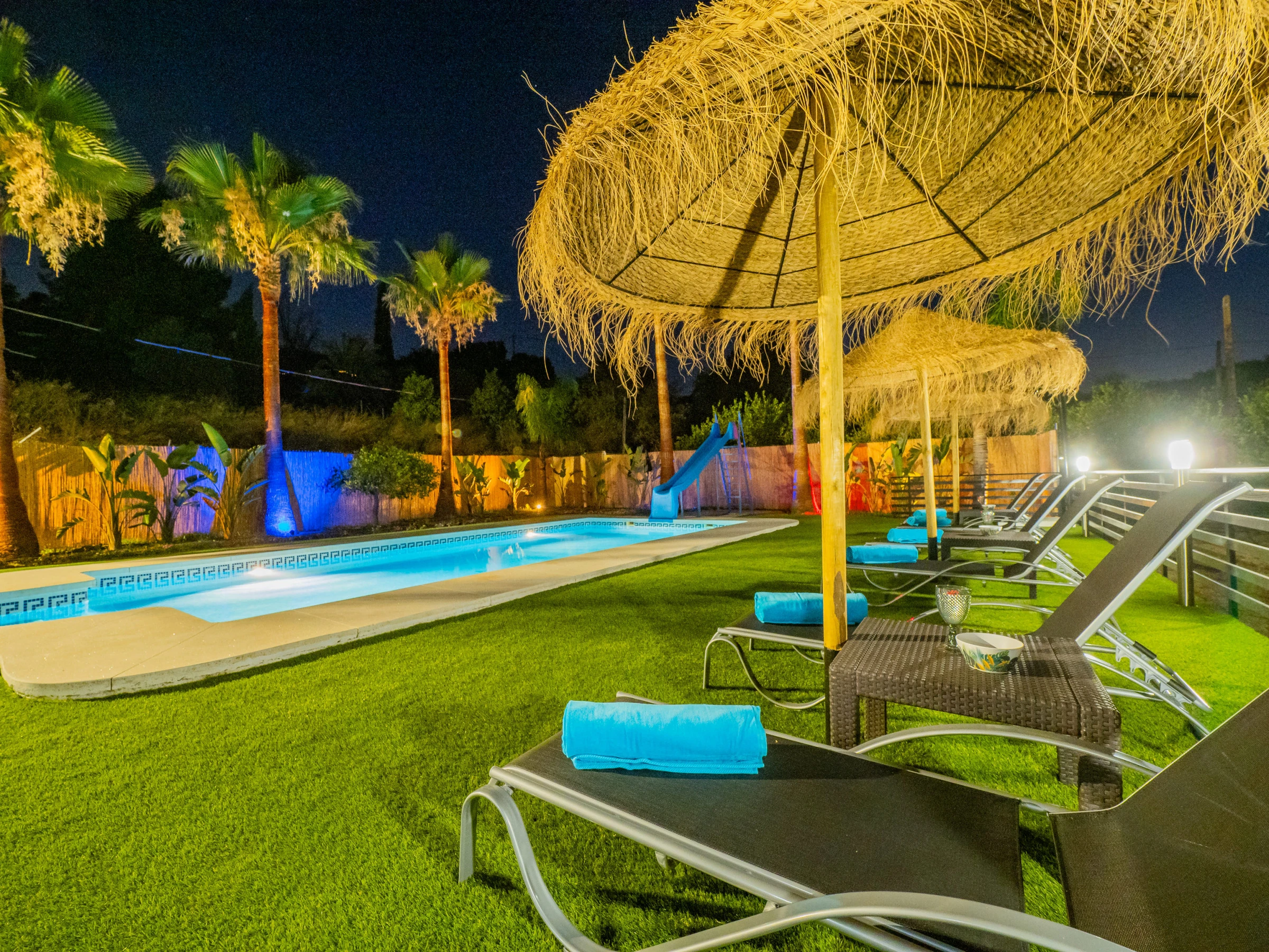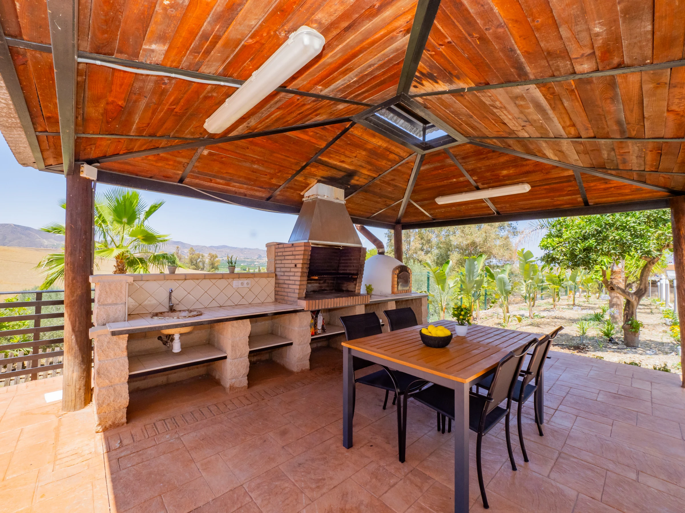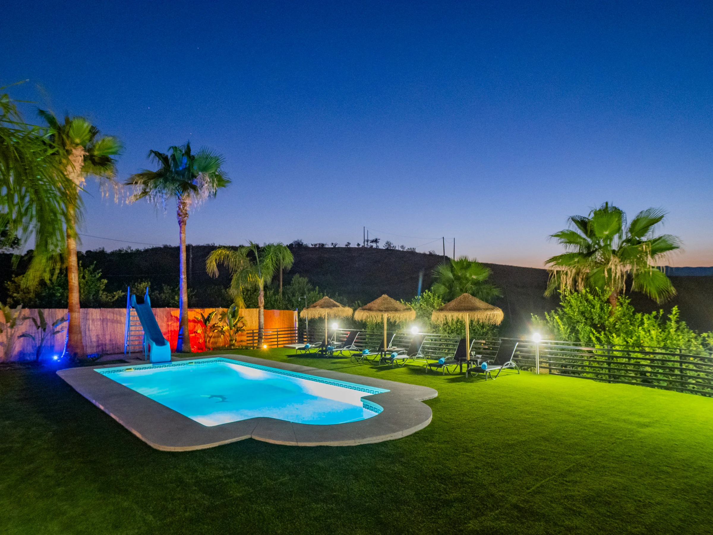 Der Standort ist unschlagbar, nur wenige Minuten von der Autobahn Cártama-Campillos entfernt und erleichtert den Zugang zu Málaga, Antequera, Torremolinos und anderen Punkten der Provinz. Der Zugangsweg umfasst ein kurzes nicht asphaltiertes Stück. Bei der Ankunft verfügen Sie über einen überdachten Parkplatz mit Schatten und eine beleuchtete Gartenzone, die zu einer Pergola mit Grill zum Zubereiten von Speisen im Freien führt; der in den Fotos zu sehende Holzofen ist nicht zur Nutzung freigegeben. Darüber hinaus befindet sich neben dem Grill Außenmobiliar, um Mahlzeiten im Schatten zu genießen, mit nächtlicher Beleuchtung und direktem Blick auf die Kinderzone, ideal um die Kleinsten problemlos im Auge zu behalten.