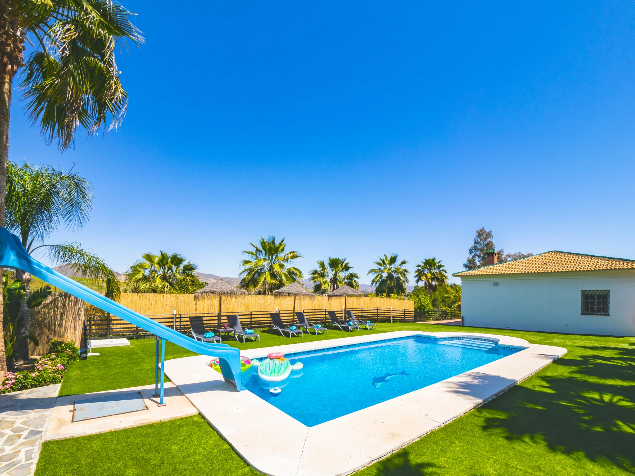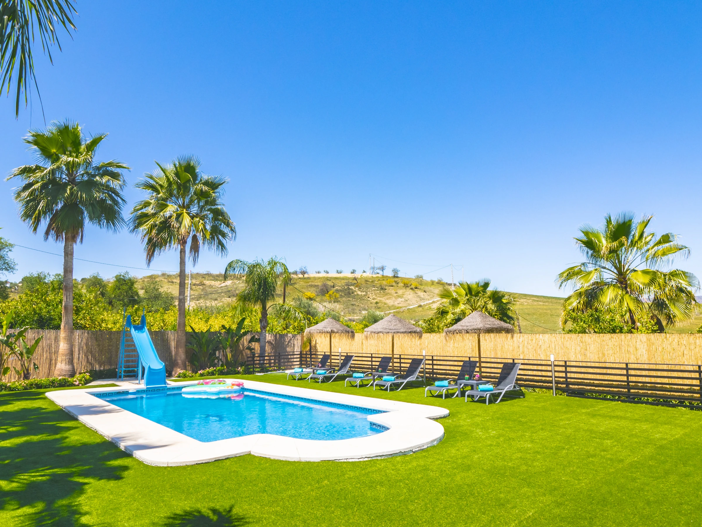 Diese charmante Landhaus in Cártama ist so konzipiert, dass es bequem bis zu 6 Personen beherbergen kann und bietet definierte Räume, um mit der Familie zu genießen, mit sorgfältiger Dekoration und zentraler Klimaanlage für Ihren Komfort. Ihr großer Swimmingpool mit künstlichem Rasen, Sonnenliegen und festen Sonnenschirmen lädt zur Entspannung und Unterhaltung ein, einschließlich einer Rutsche für Kinder über 10 Jahre, die unterhaltsame Momente garantiert. Der Zugang zum Pool erfolgt von außen, indem man die Haupttür zur Rückseite verlässt und dabei die Privatsphäre und Sicherheit der Unterkunft wahrt.