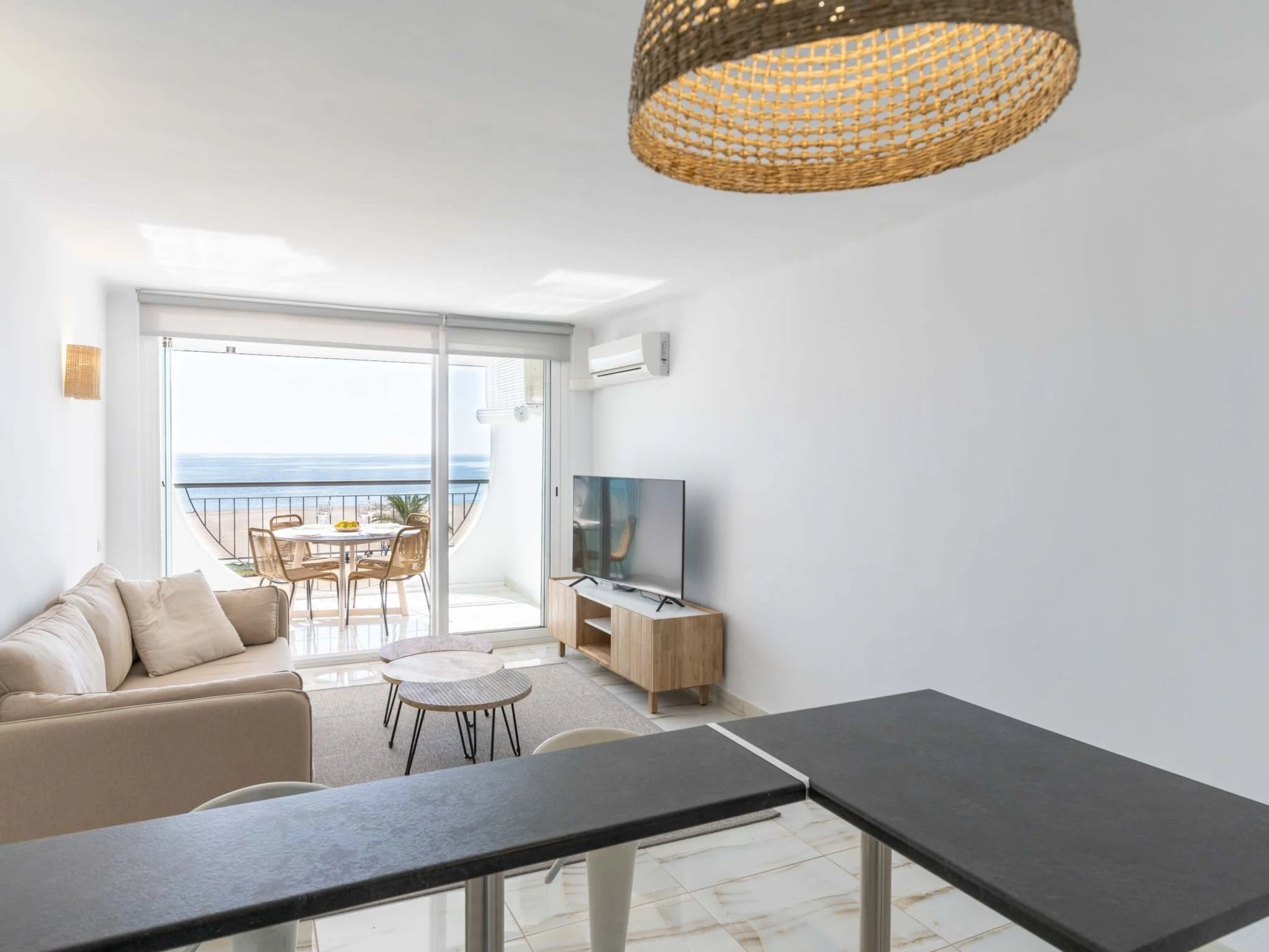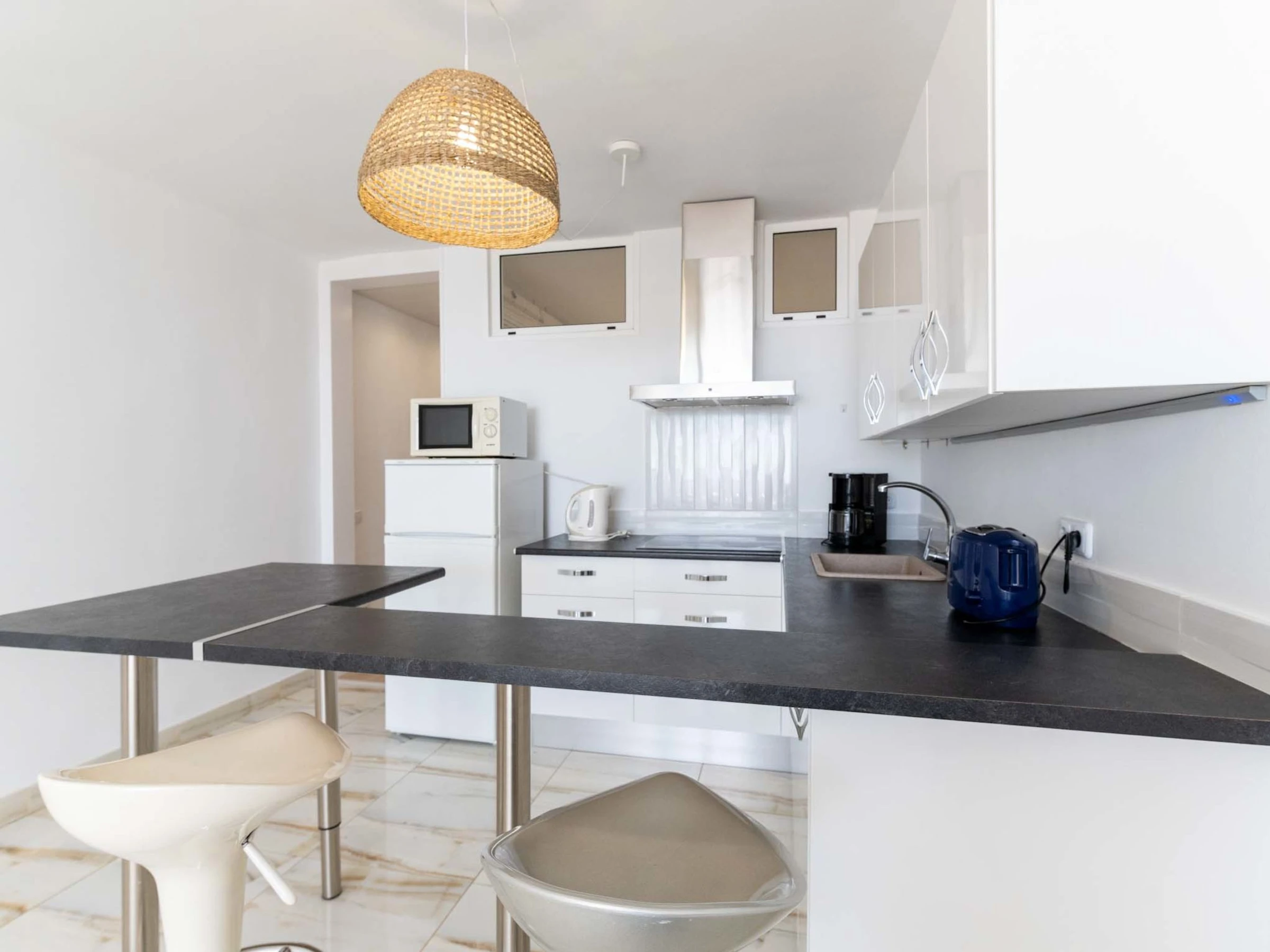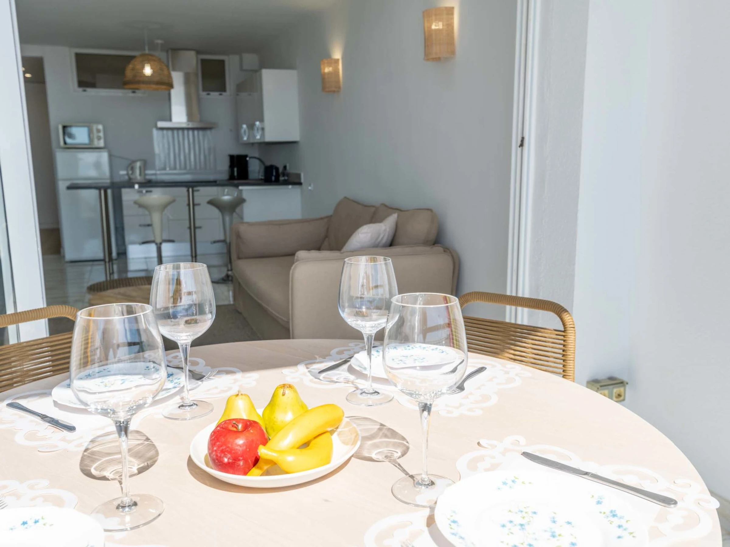 2-Zimmer-Wohnung 50 m2. Renoviert, zweckmässig und komfortabel eingerichtet: Wohn-/Esszimmer mit Sat-TV und Digital-TV (Flachbildschirm), Klimaanlage und Warmluftheizung. Ausgang zum Balkon, Richtung Westen und Richtung Süden. 1 offenes Zimmer mit 1 Doppelbett (140 cm, Länge 190 cm). Küche (3 Glaskeramikplatten, Toaster, Mikrowelle, Tiefkühler, elektrische Kaffeemaschine). Dusche/WC. Kleine Terrasse 8 m2, Südlage und Westlage. Balkonmöbel. Herrliche Panoramasicht auf das Meer. Zur Verfügung: Waschmaschine, Bügeleisen, Kinderhochstuhl, Babybett, Haartrockner. Internet (WLAN, gratis). Bitte beachten: 1 kleines Haustier/Hund erlaubt. TV nur FR, ES. [hidden]