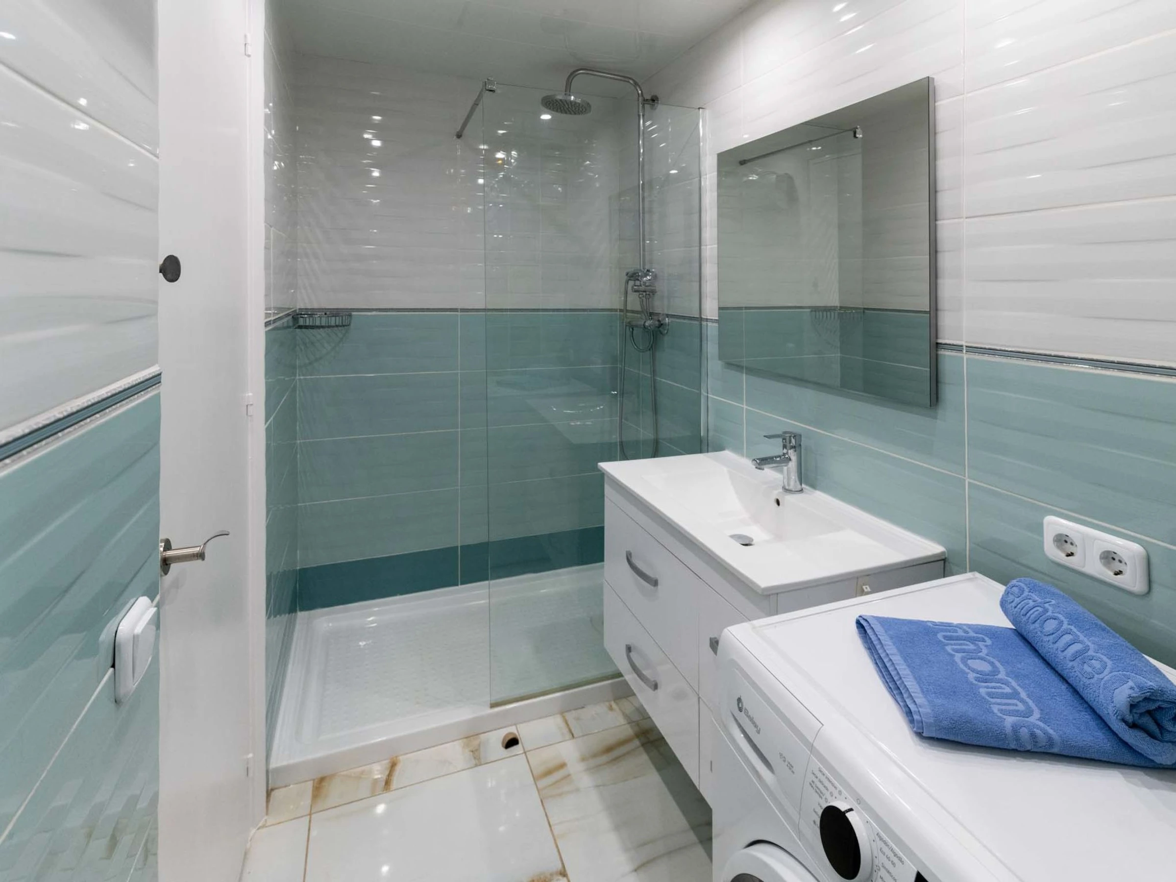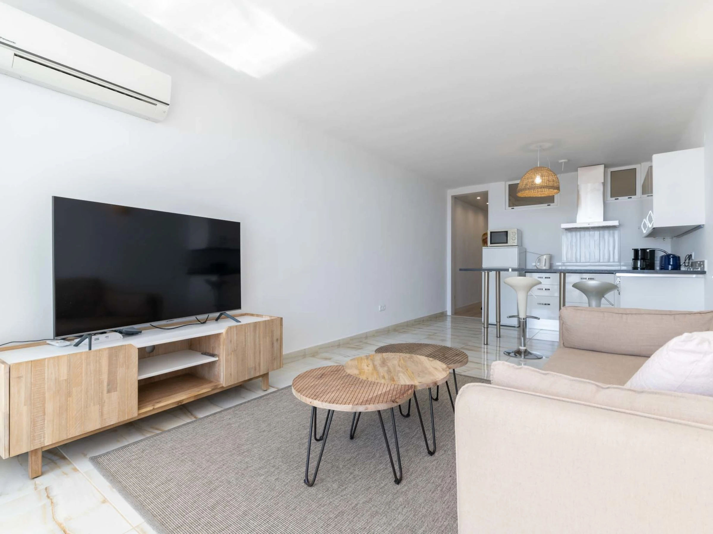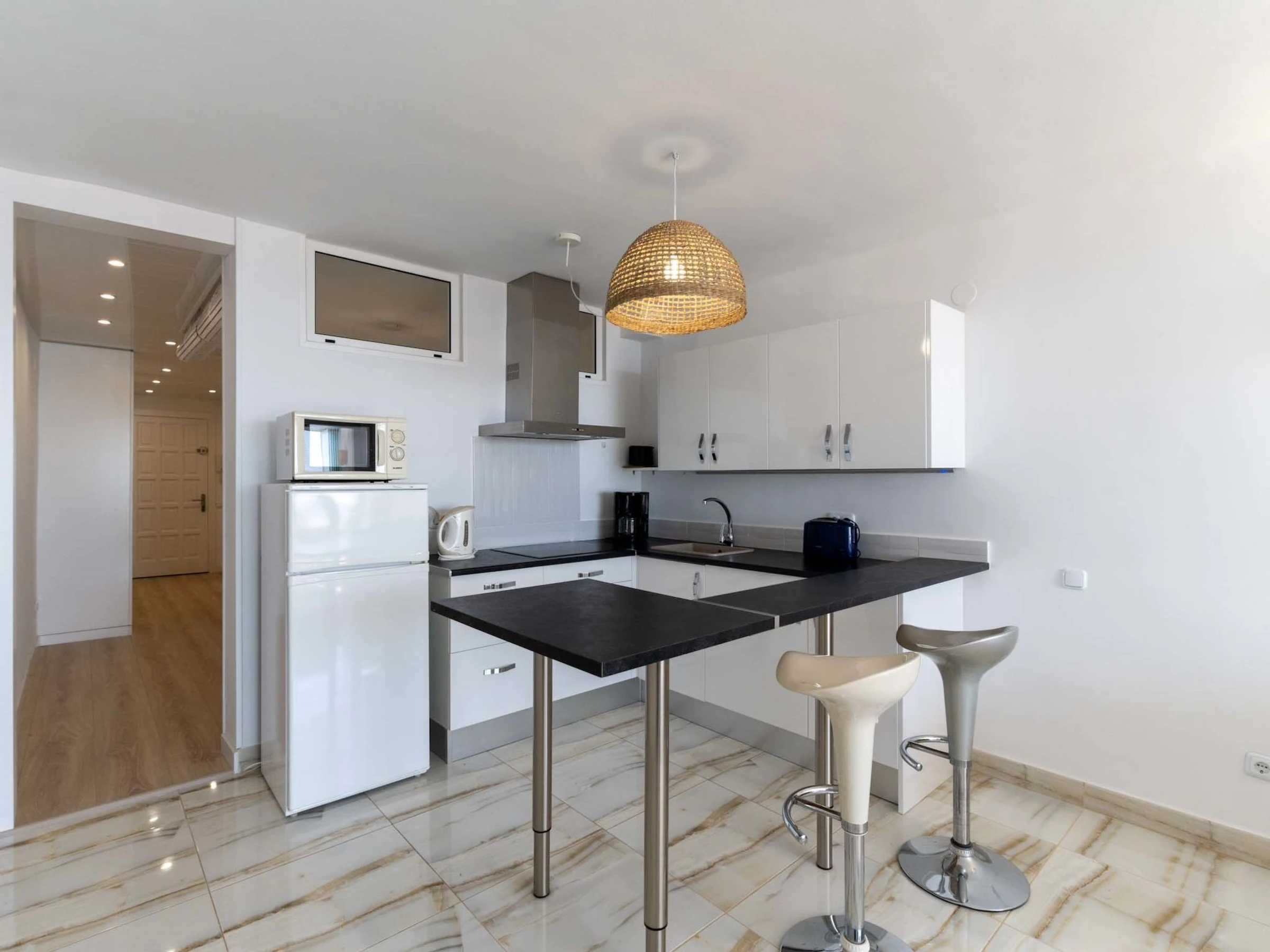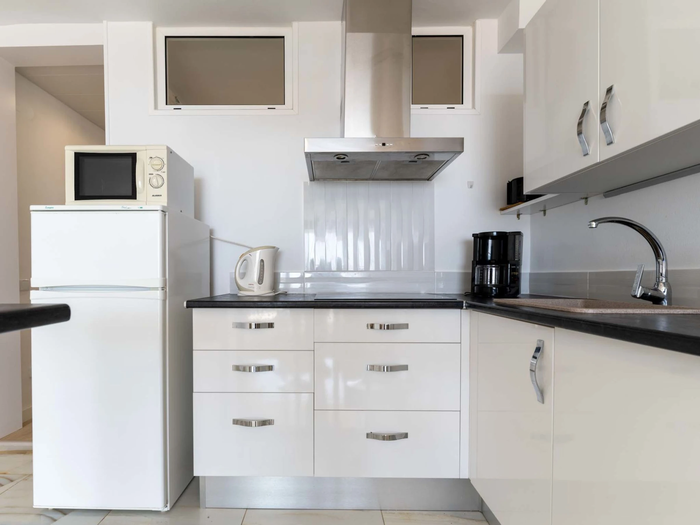 2-Zimmer-Wohnung 50 m2. Renoviert, zweckmässig und komfortabel eingerichtet: Wohn-/Esszimmer mit Sat-TV und Digital-TV (Flachbildschirm), Klimaanlage und Warmluftheizung. Ausgang zum Balkon, Richtung Westen und Richtung Süden. 1 offenes Zimmer mit 1 Doppelbett (140 cm, Länge 190 cm). Küche (3 Glaskeramikplatten, Toaster, Mikrowelle, Tiefkühler, elektrische Kaffeemaschine). Dusche/WC. Kleine Terrasse 8 m2, Südlage und Westlage. Balkonmöbel. Herrliche Panoramasicht auf das Meer. Zur Verfügung: Waschmaschine, Bügeleisen, Kinderhochstuhl, Babybett, Haartrockner. Internet (WLAN, gratis). Bitte beachten: 1 kleines Haustier/Hund erlaubt. TV nur FR, ES. [hidden]
