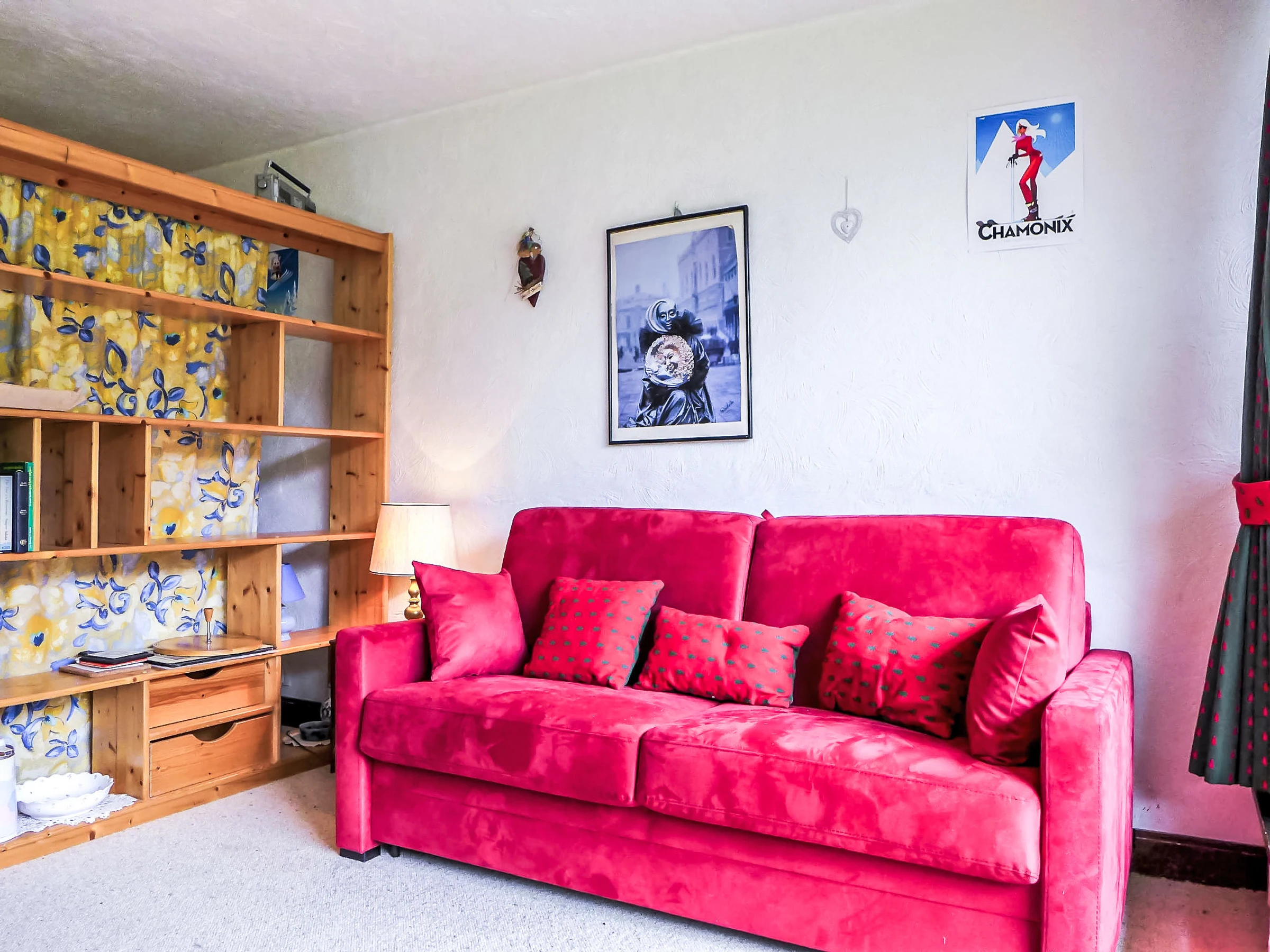 1-Zimmer-Wohnung 30 m2, im Erdgeschoss. Objekt geeignet für 2 Erwachsene + 2 Kinder. Wohn-/Esszimmer mit Panoramafenster mit 1 Doppeldiwanbett und TV. Ausgang zum Balkon. Kleine Schlafnische mit 1 x 2 Etagenbetten. Kochnische (4 Kochplatten, Wasserkocher, Mikrowelle, elektrische Kaffeemaschine). Bad, sep. WC. G-Heizung. Heizung nur verfügbar von 01.12. bis 30.04. Balkon 6 m2, Südostlage. Sehr schöne Sicht auf die Berge. Zur Verfügung: Internet (WLAN, extra). Parkplatz Nr. 103 au sous sol. Bitte beachten: Parkplatz nur für kleine Wagen. TV nur FR. Rauchmelder. Anstelle eines abgeschlossenen Schlafzimmers befinden sich manche Schlafplätze in einem offenen Bereich (Galerie, Nische etc.). [hidden]