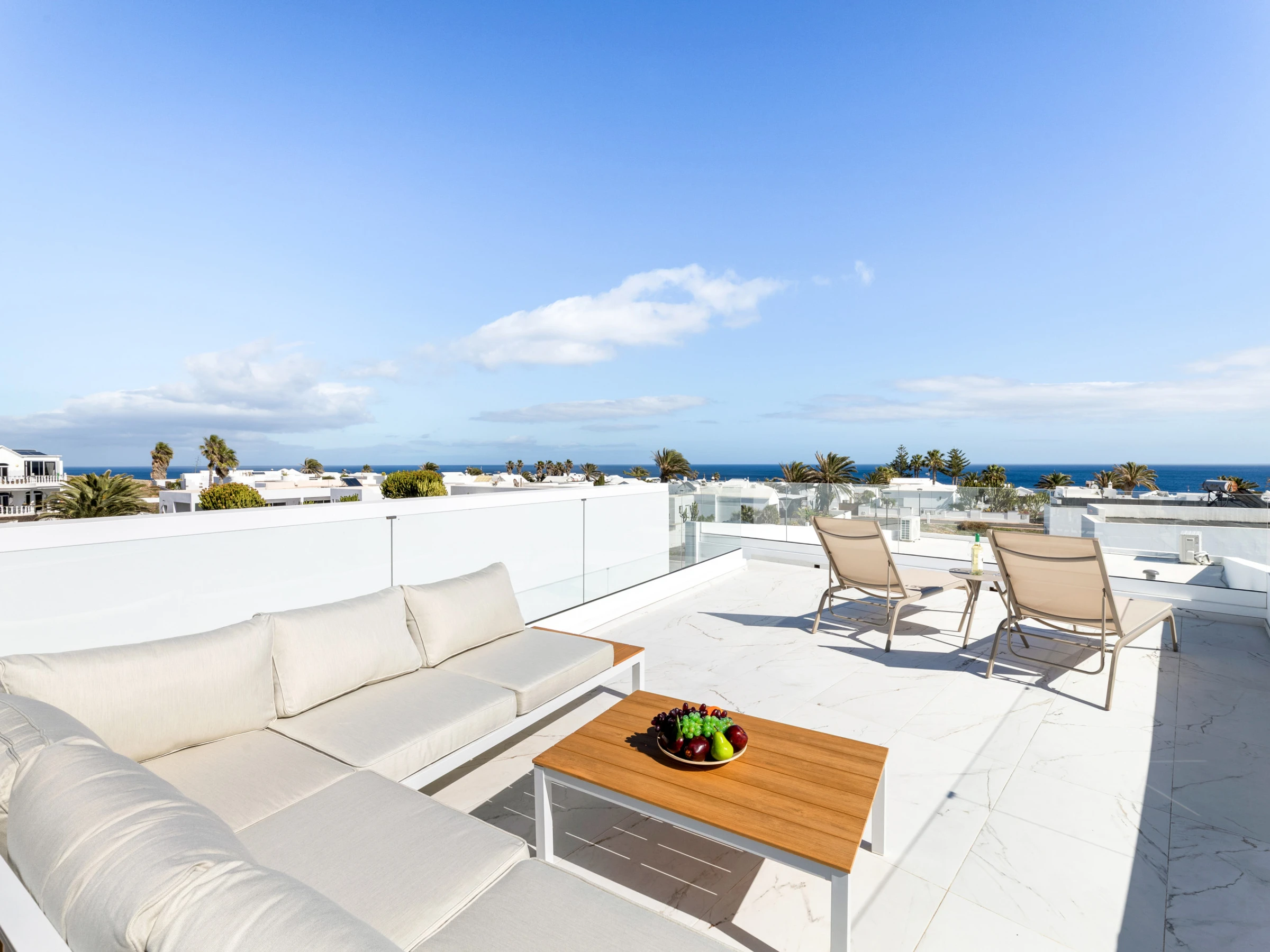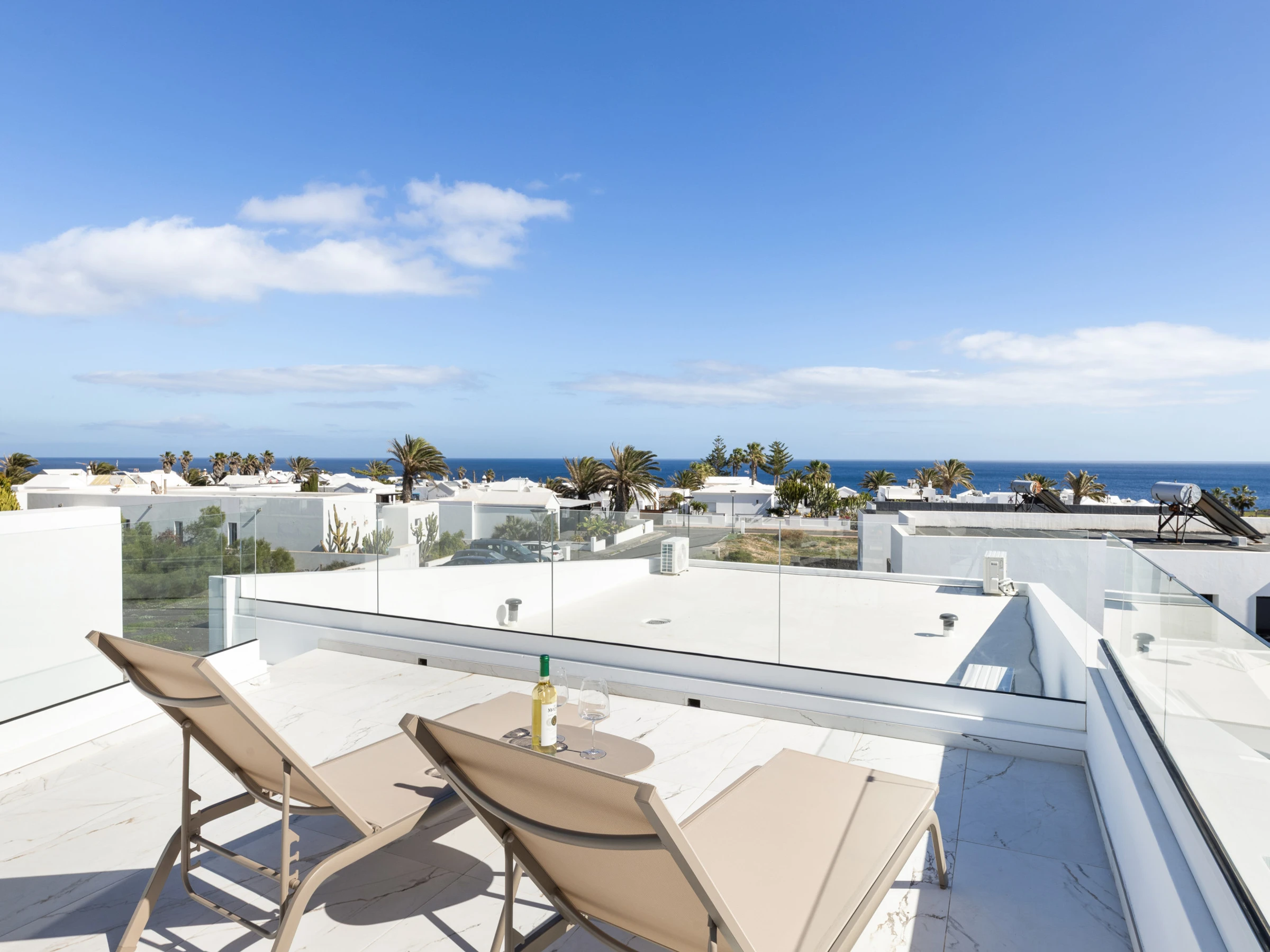 Im Dachbereich-Solarium gibt es einen Außenbereich mit teilweisem Meerblick.