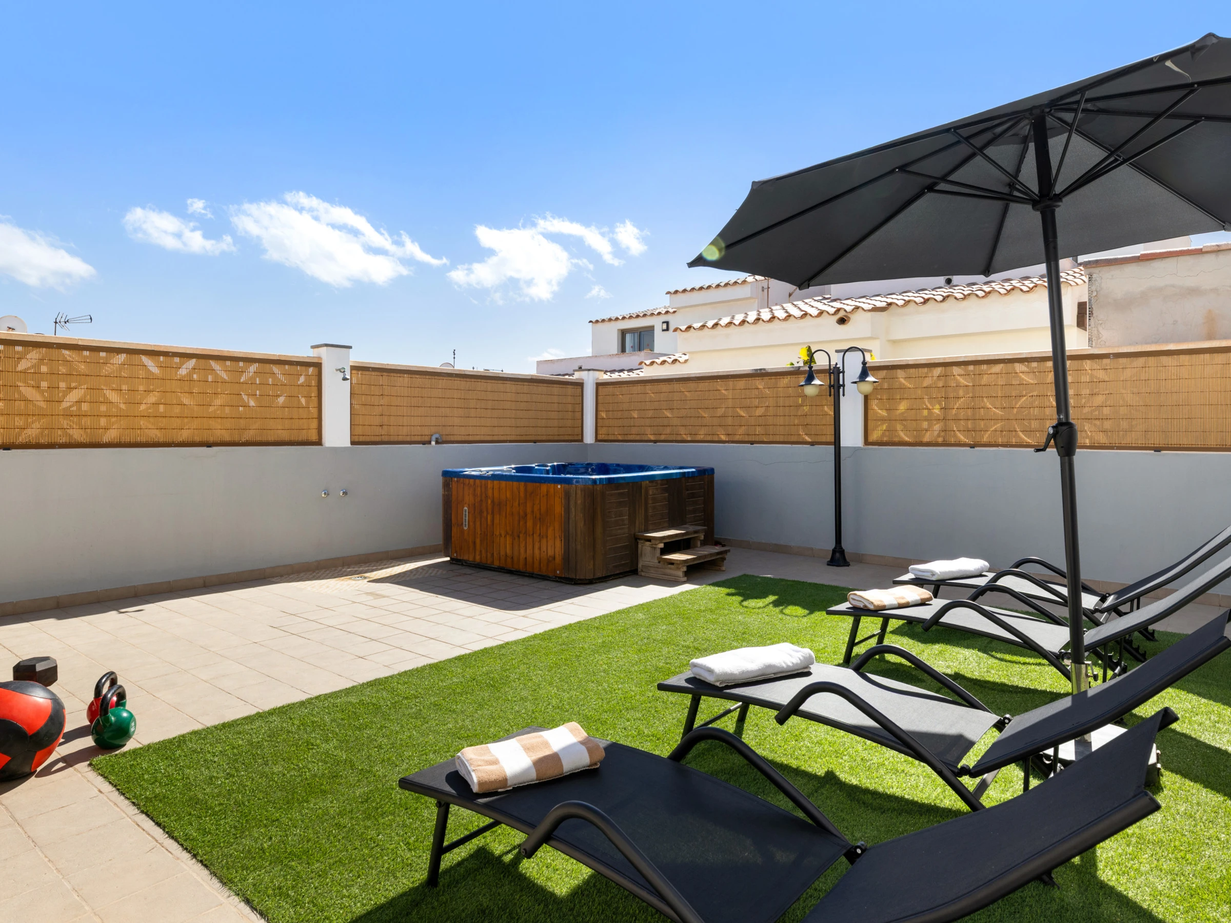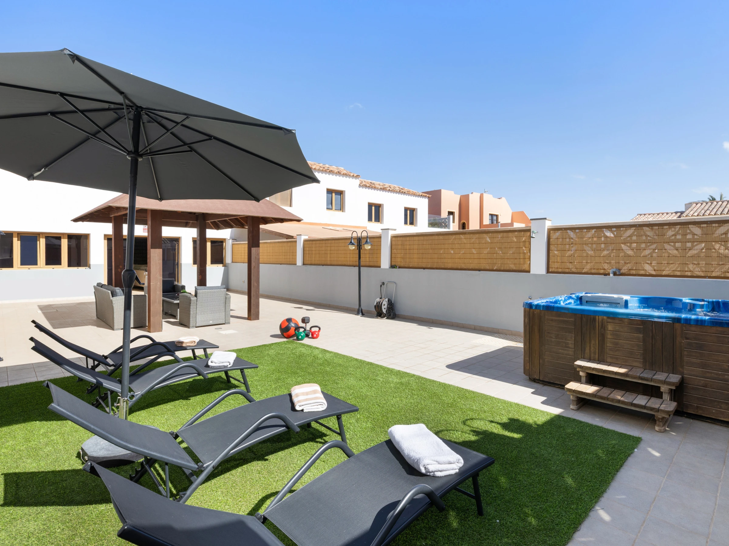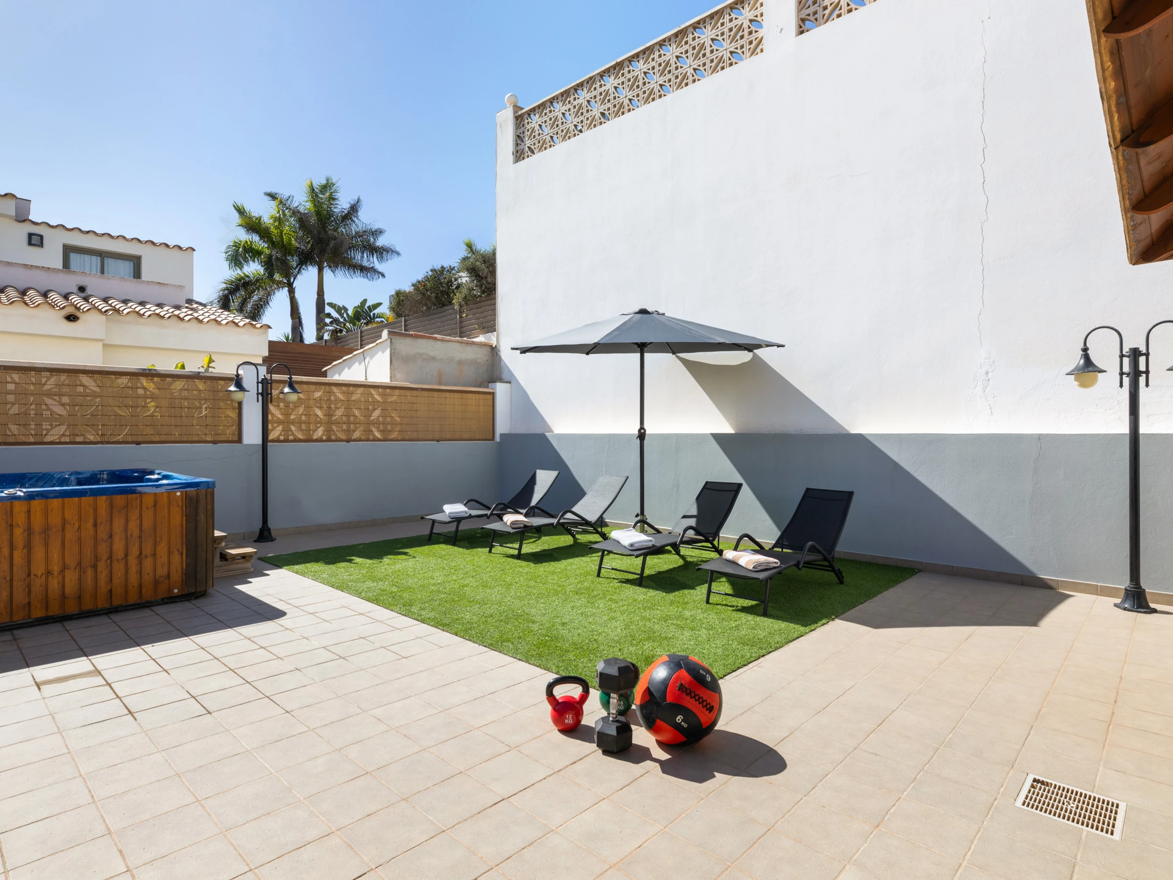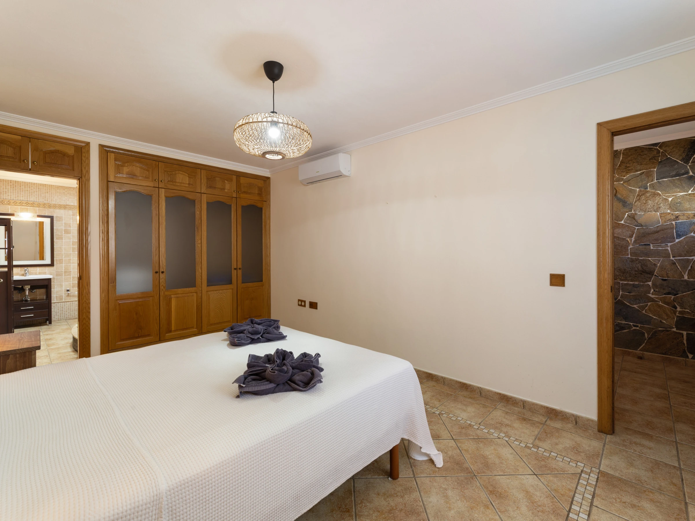 Die Außenterrasse bietet den authentischen kanarischen Touch: Ein riesiger Raum zum Sonnenbaden, zum Genießen von Mahlzeiten im Freien unter dem Pavillon oder zum Eintauchen in den Whirlpool, während der Abend hereinbricht. Darüber hinaus verfügen sowohl die Zimmer als auch der Wohnbereich über Klimaanlagen, um stets die ideale Temperatur zu halten.