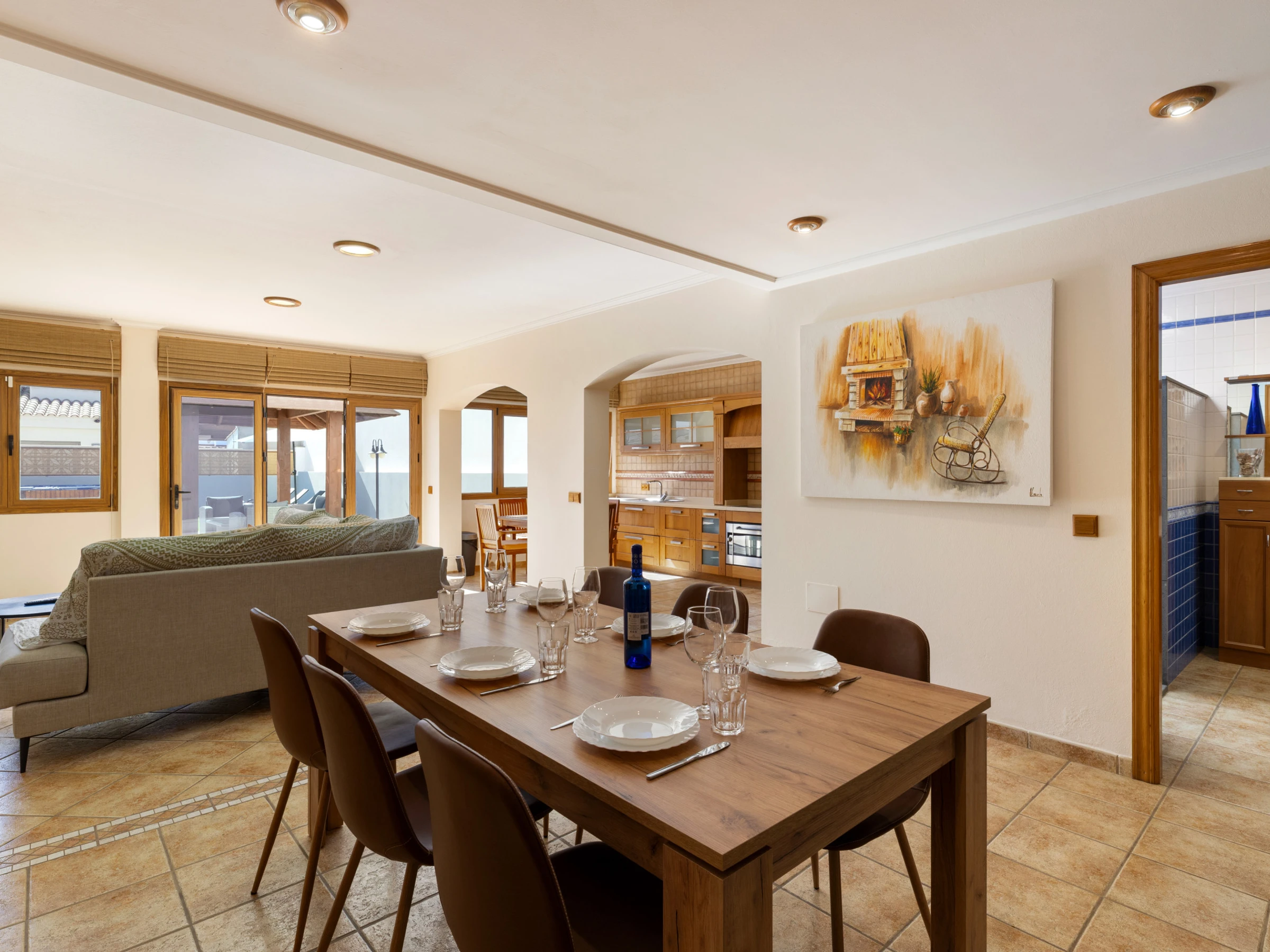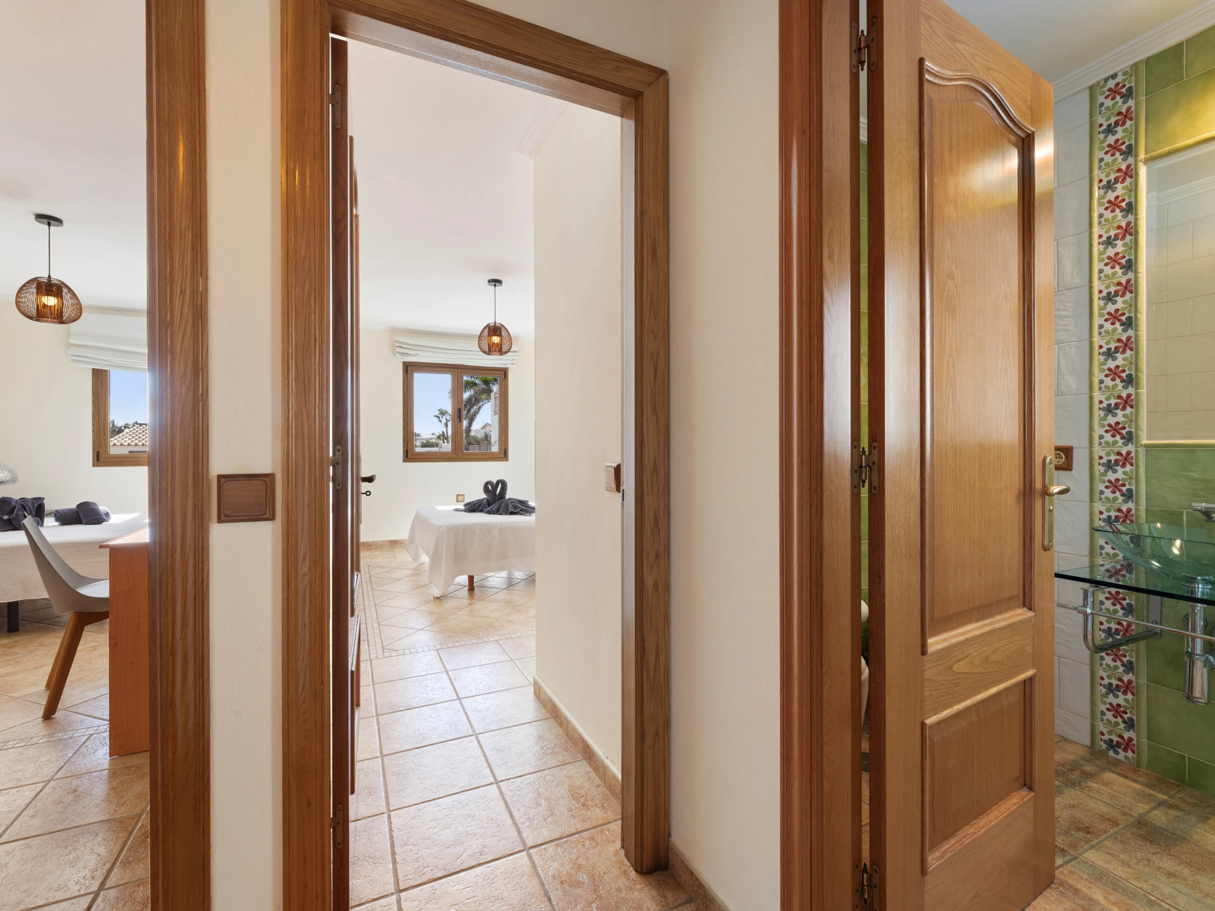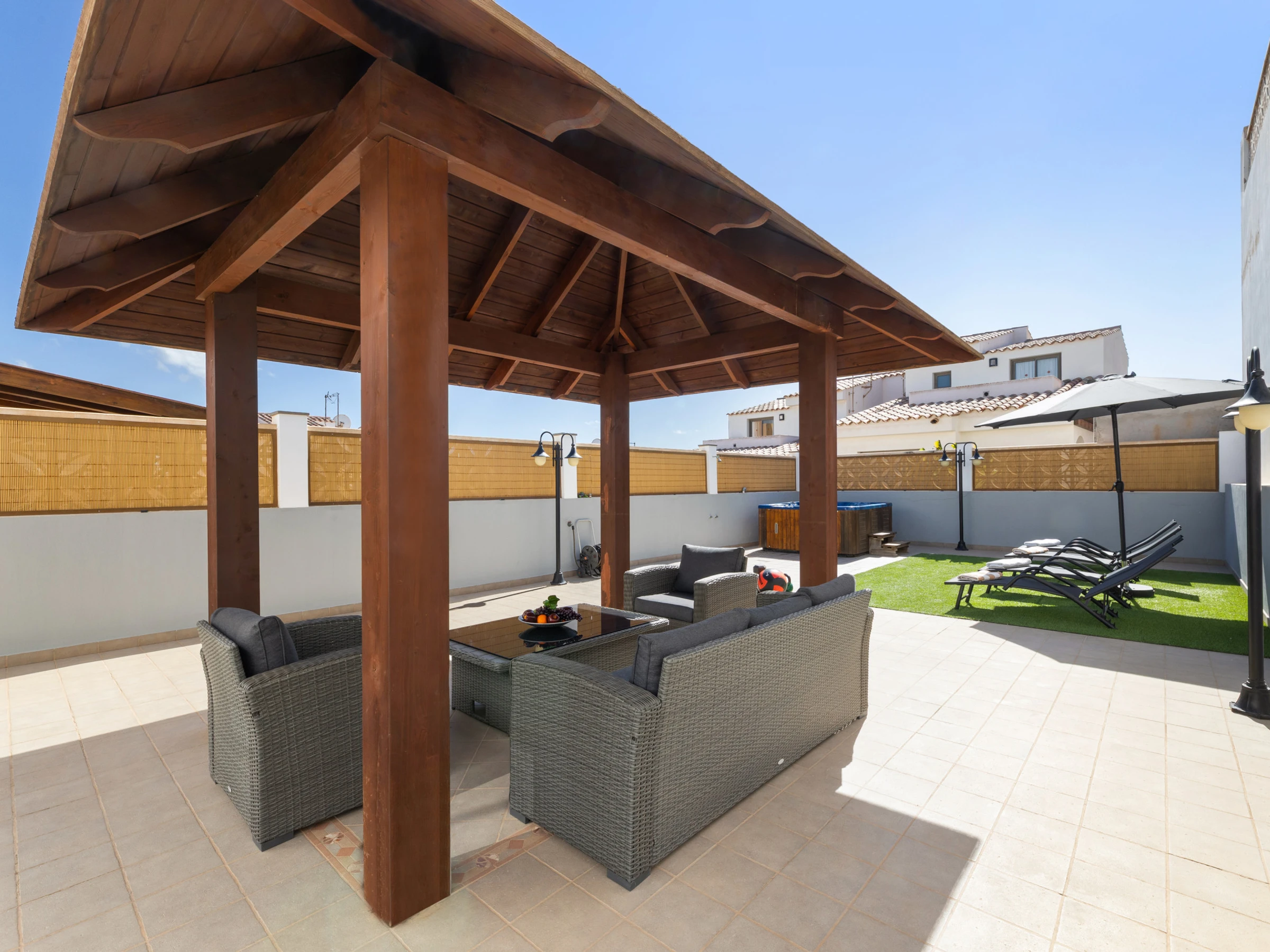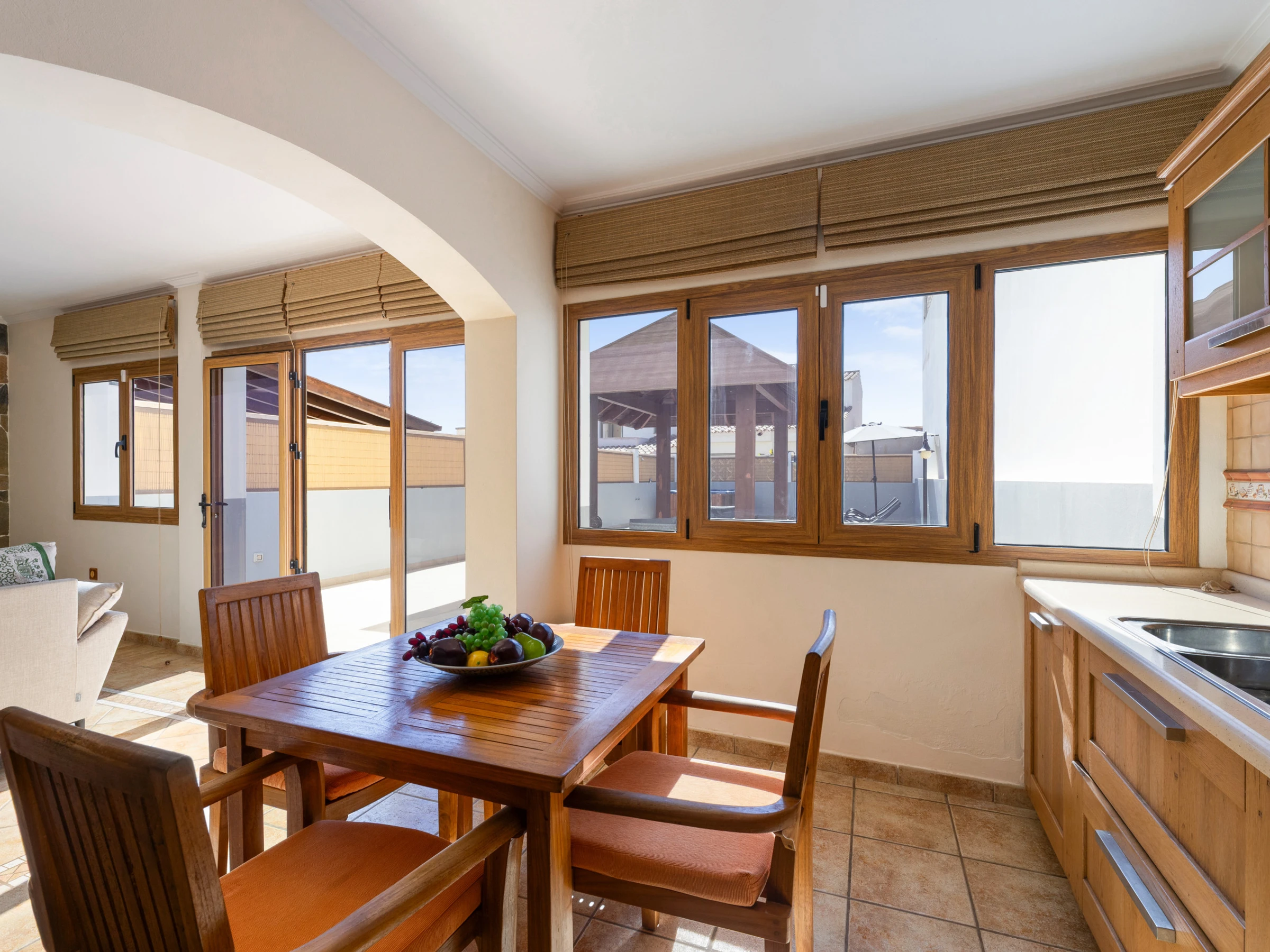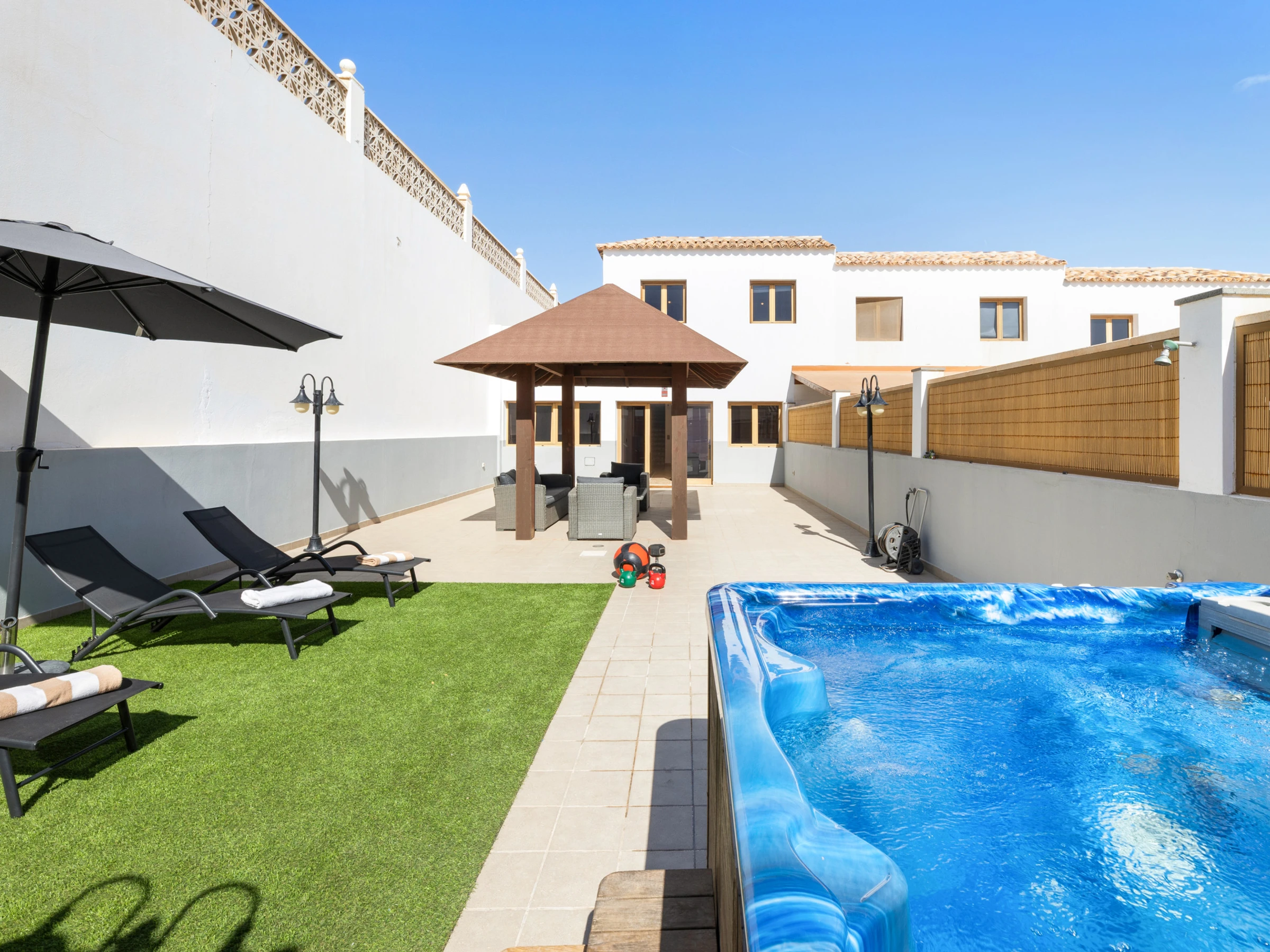 Die Außenterrasse bietet den authentischen kanarischen Touch: Ein riesiger Raum zum Sonnenbaden, zum Genießen von Mahlzeiten im Freien unter dem Pavillon oder zum Eintauchen in den Whirlpool, während der Abend hereinbricht. Darüber hinaus verfügen sowohl die Zimmer als auch der Wohnbereich über Klimaanlagen, um stets die ideale Temperatur zu halten.