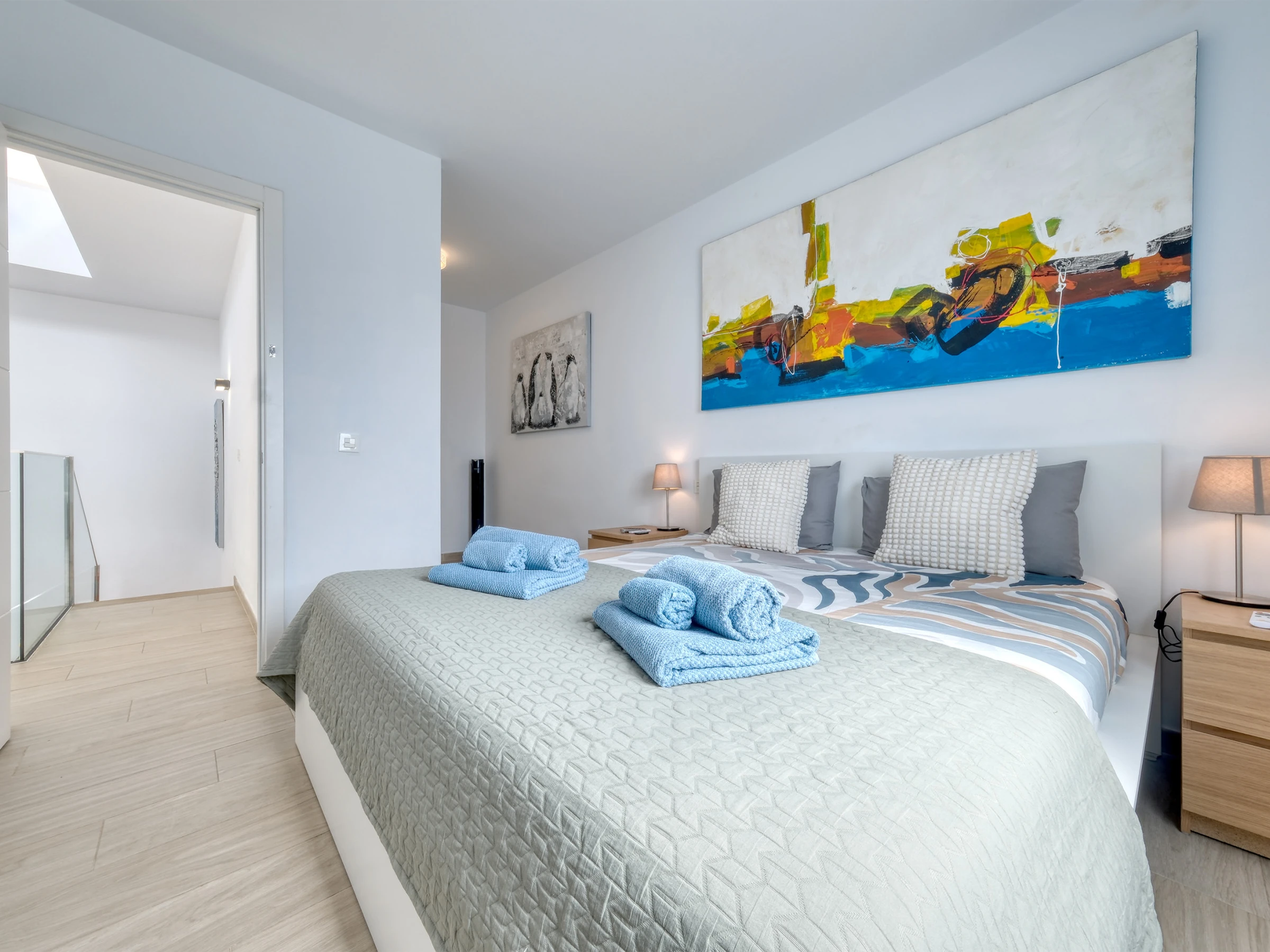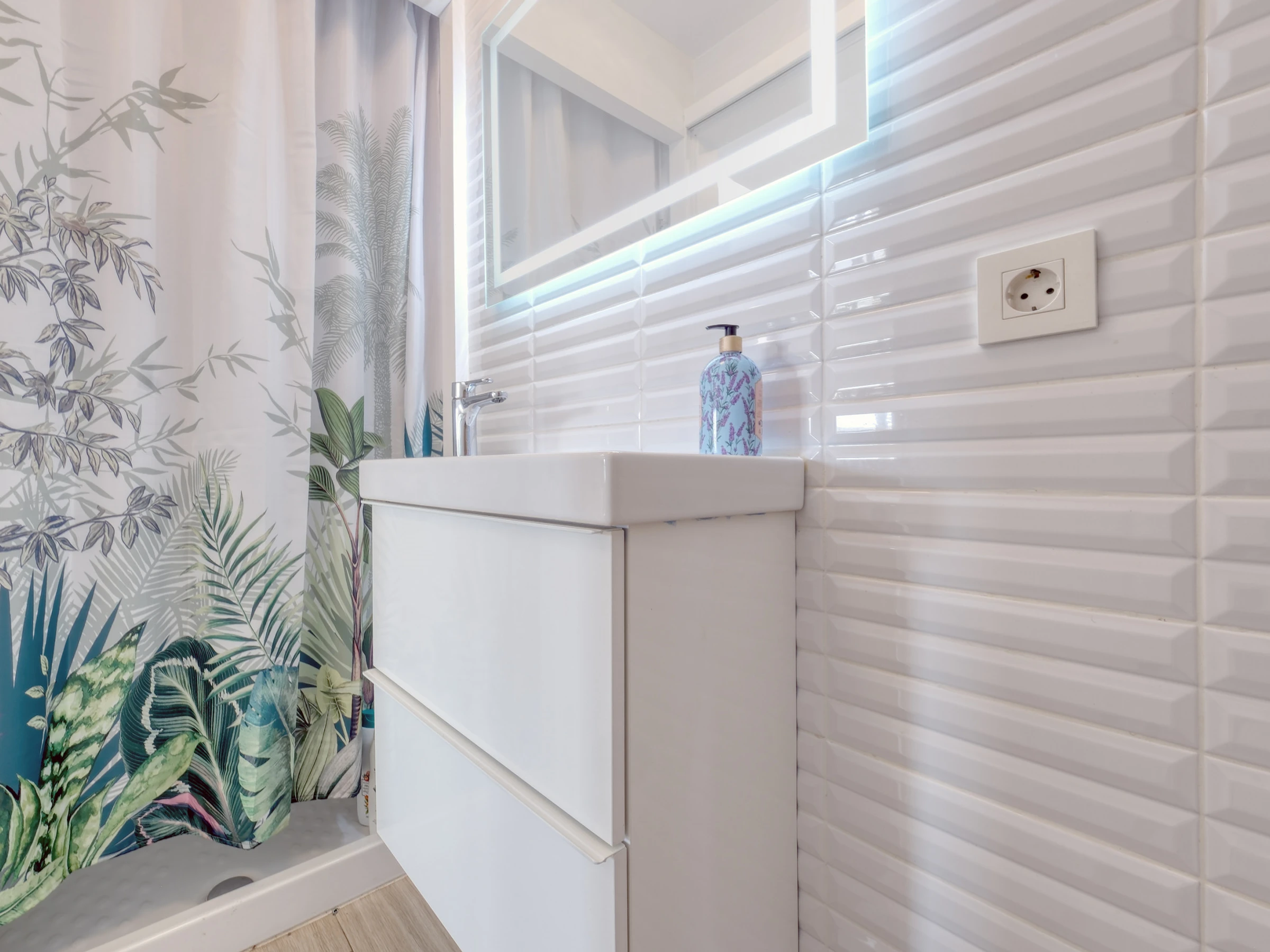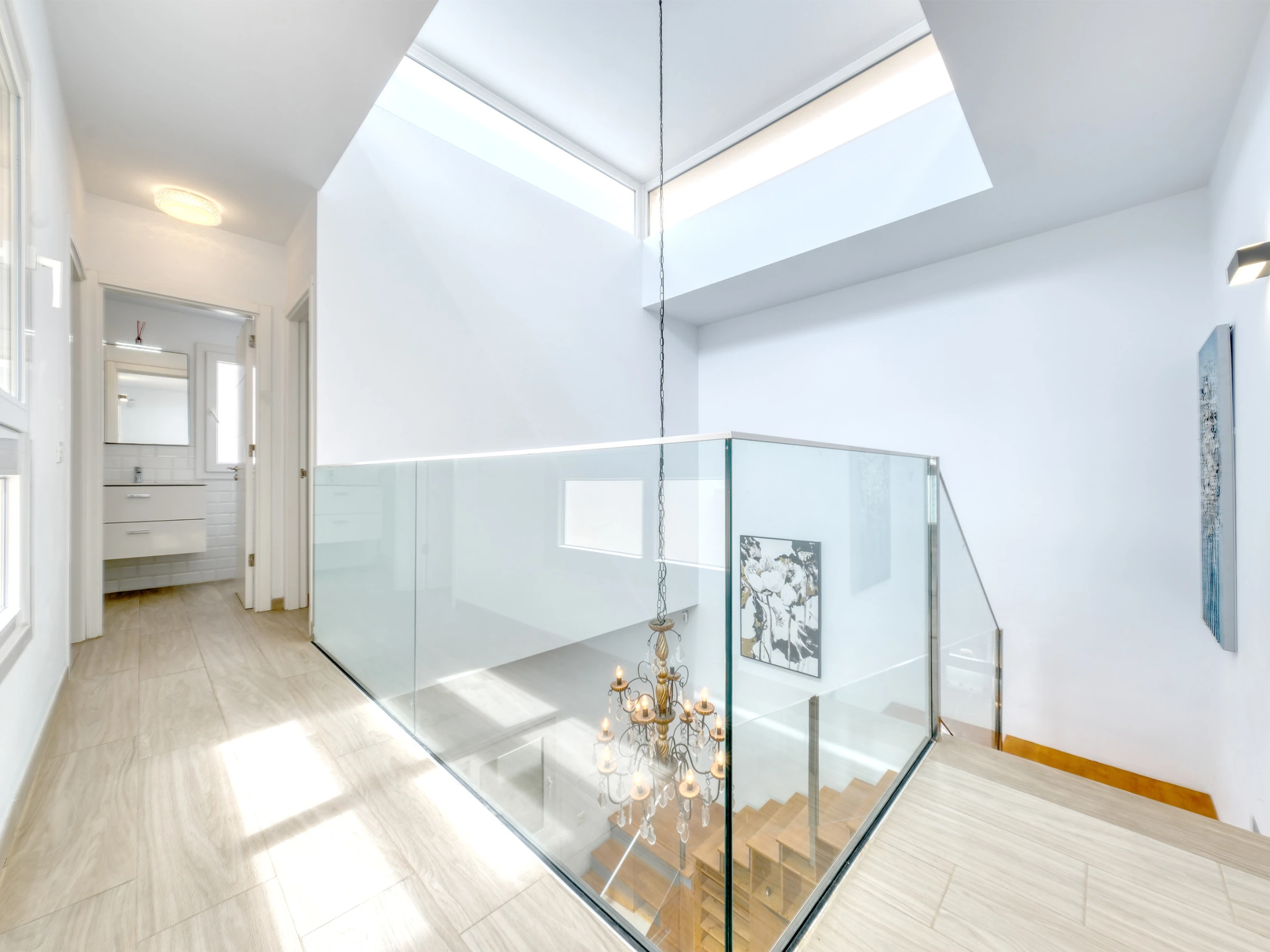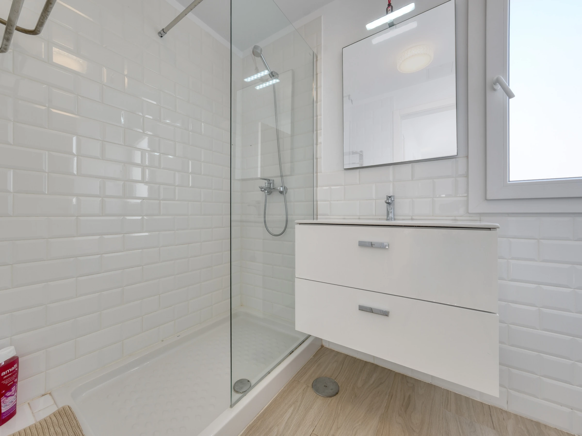 Außerdem verfügt es über drei vollständige Badezimmer mit Dusche und WC, die in der Wohnung verteilt sind: zwei im Obergeschoss und eines im Erdgeschoss, die darauf ausgelegt sind, allen Gästen Privatsphäre und Komfort zu gewährleisten.