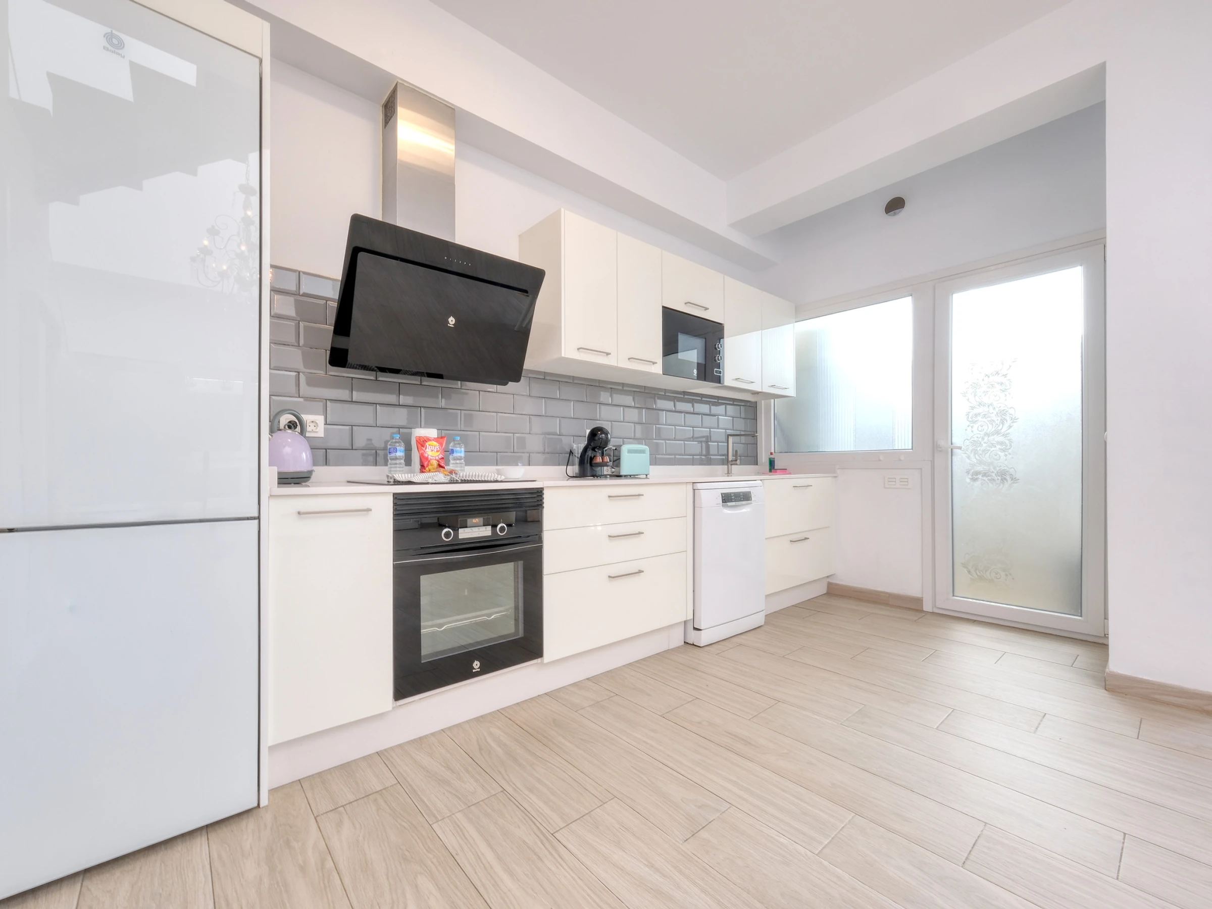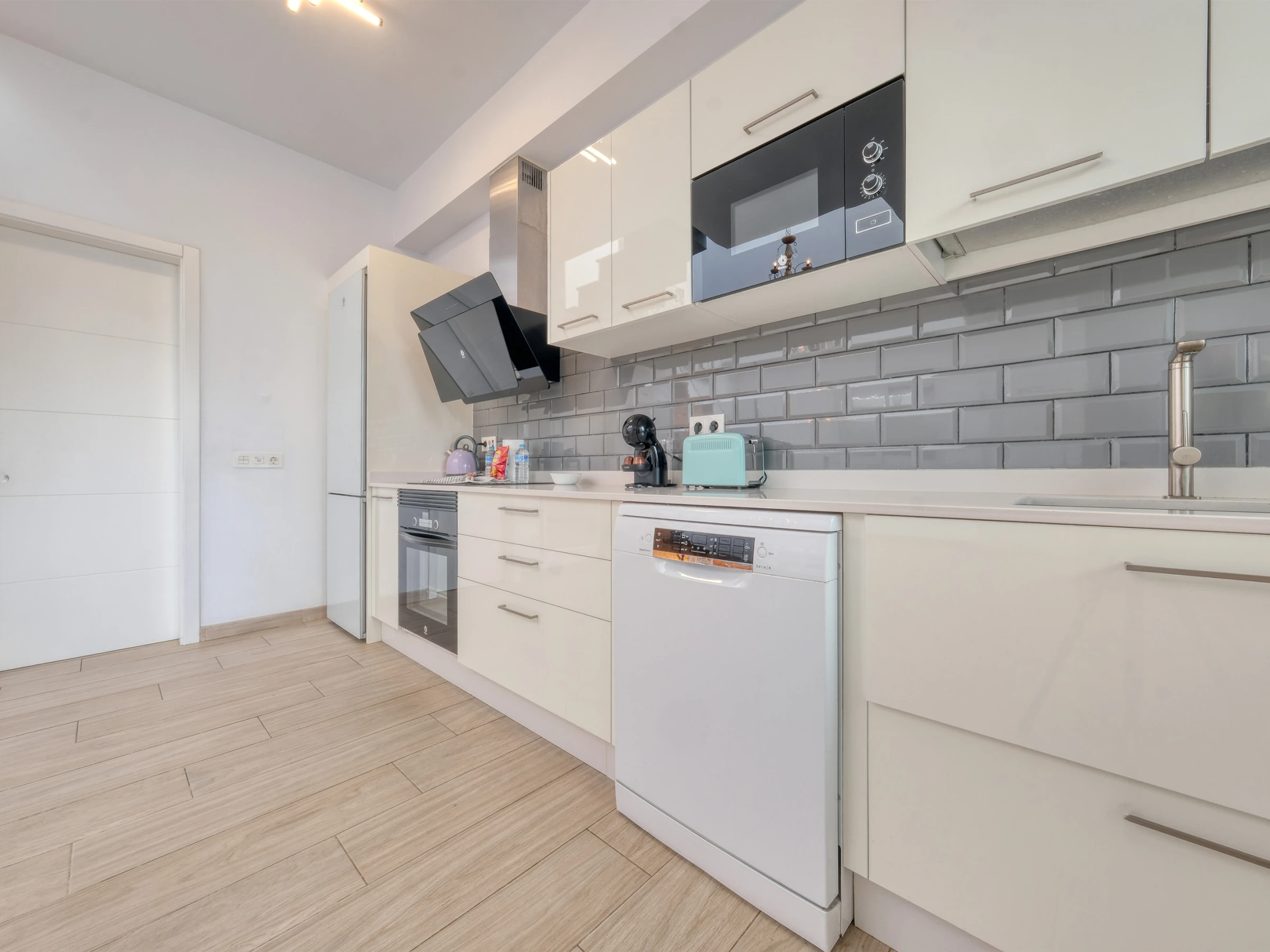 Die Einbauküche ist komplett ausgestattet mit Glaskeramikkochfeld, Backofen, Mikrowelle, Geschirrspüler, Kühlschrank, Gefrierschrank, Kaffeemaschine, Toaster, Wasserkocher und vollständigem Geschirr, damit Sie mit vollem Komfort kochen können.