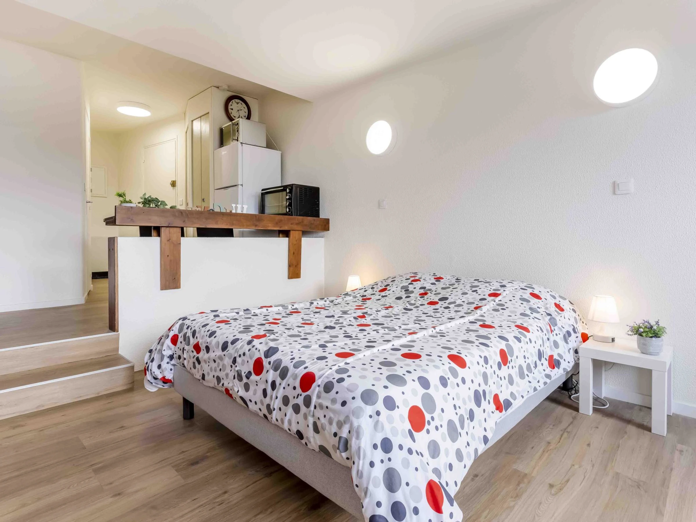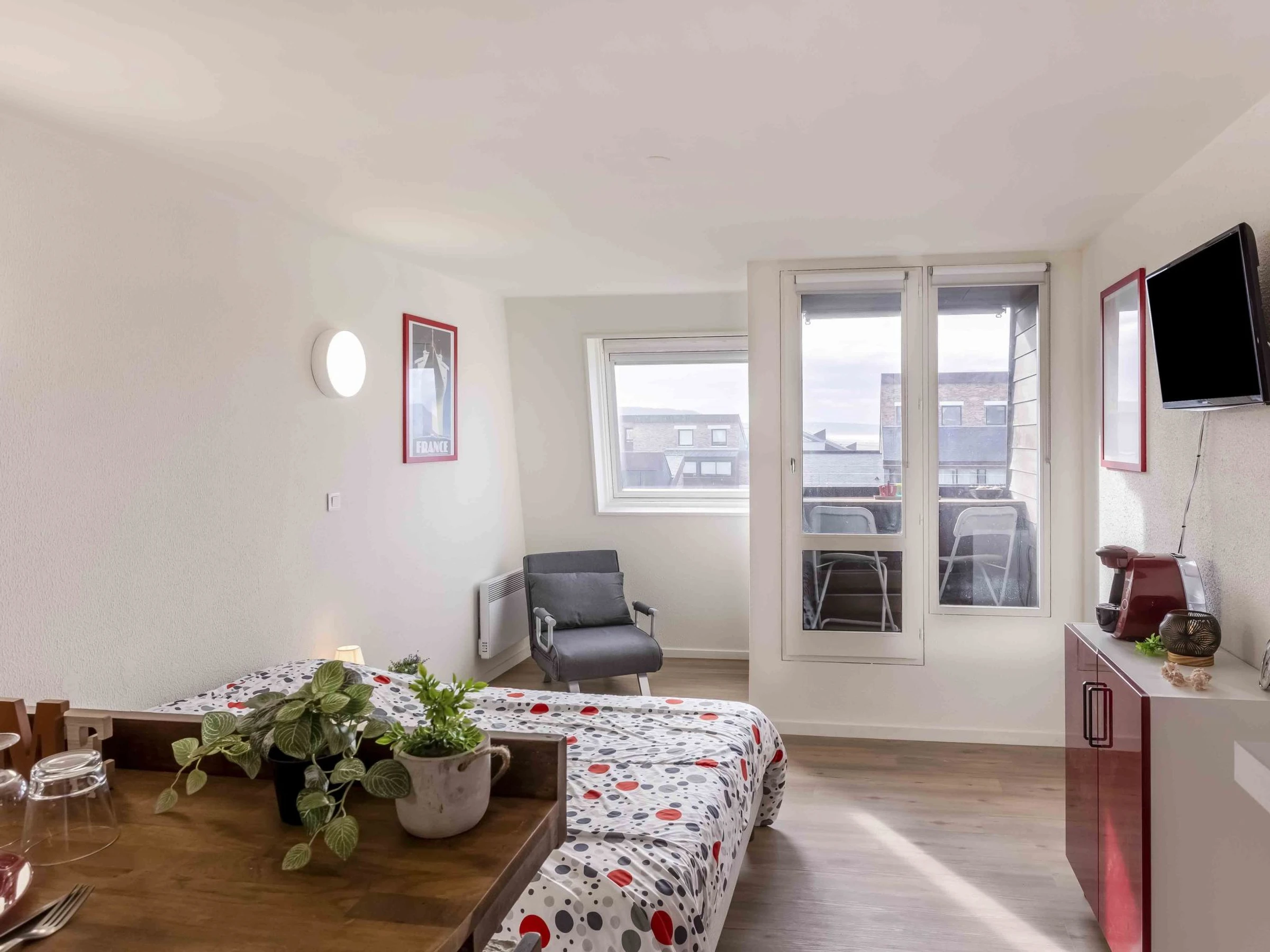 1-Zimmer-Studio 25 m2 im 5. Stock. Eingang. Wohn-/Esszimmer mit 1 franz. Bett (1 x 140 cm, Länge 190 cm), TV (Flachbildschirm). Ausgang zum Balkon. Kochnische (Backofen, 2 Induktionskochplatten, Toaster, Wasserkocher, Mikrowelle, elektrische Kaffeemaschine). Bad, sep. WC. E-Heizung. Kleiner Balkon, Westlage. Balkonmöbel. Schöne Sicht auf den Hafen. Zur Verfügung: Internet (WLAN, extra). Bitte beachten: Nichtraucher-Unterkunft. Maximal 1 Haustier/Hund erlaubt. Rauchmelder. Inserat einer Privatperson nach Artikel 155, IV, CGI. [hidden]