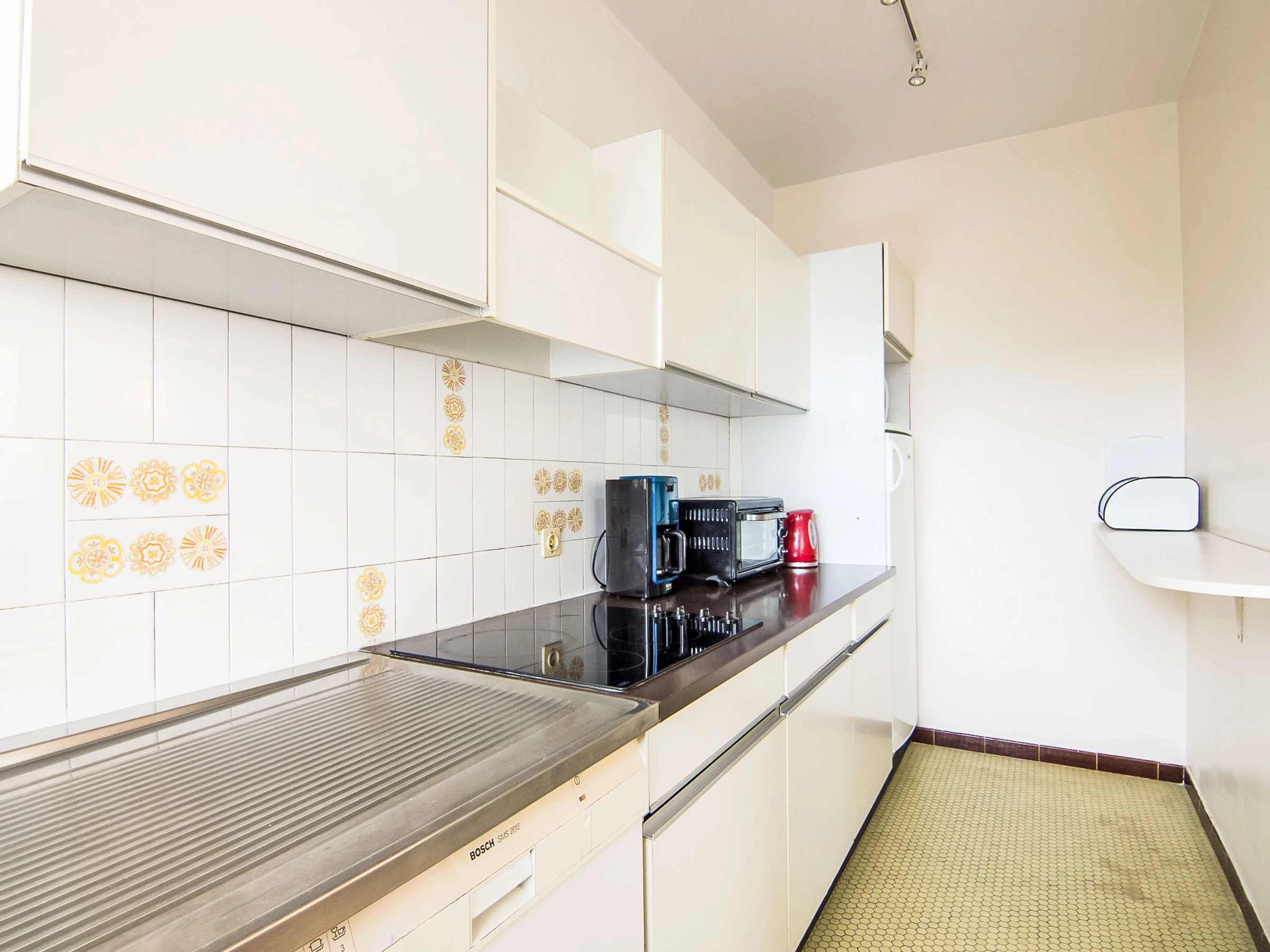 2-Zimmer-Wohnung 45 m2 im 2. Stock. Eingang. Wohn-/Esszimmer mit 1 Diwanbett (120 cm), TV (Flachbildschirm). Ausgang zum Balkon. 1 Zimmer mit 1 franz. Bett (140 cm). Küche (4 Kochplatten, Mini-Backofen, Geschirrspüler, Toaster, Wasserkocher, Mikrowelle, elektrische Kaffeemaschine). Bad/WC. Heizung. Balkon 6 m2, Westlage und Nordlage. Balkonmöbel. Eingeschränkte Sicht auf den Hafen. Zur Verfügung: Waschmaschine. Internet (Wireless LAN, gratis). Bitte beachten: Nichtraucher-Unterkunft, kein Parkplatz. Rauchmelder. [hidden]