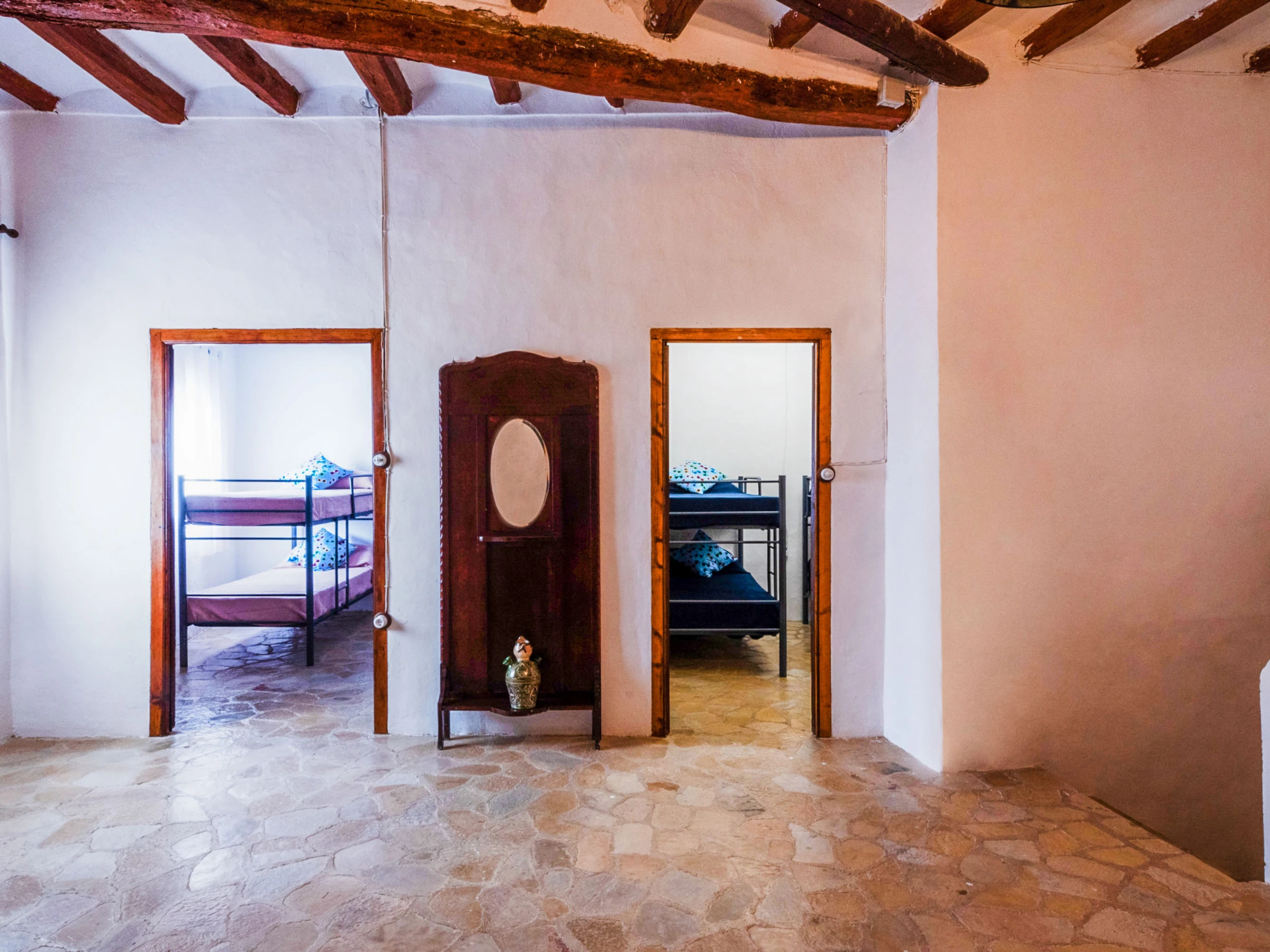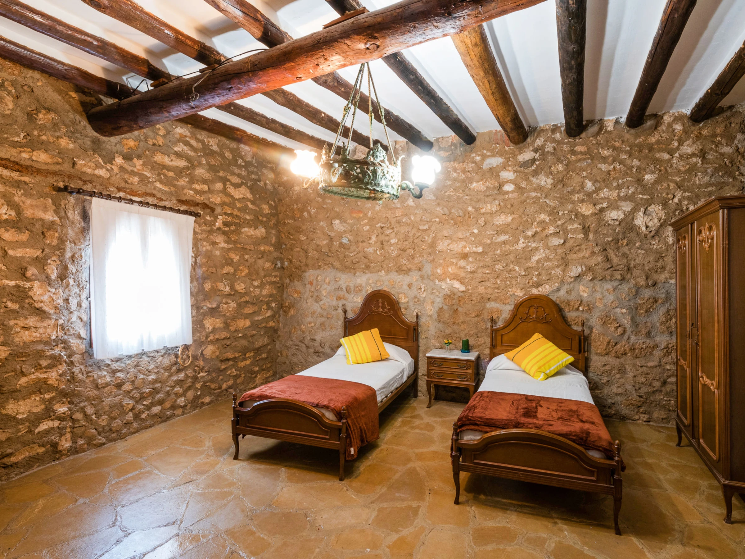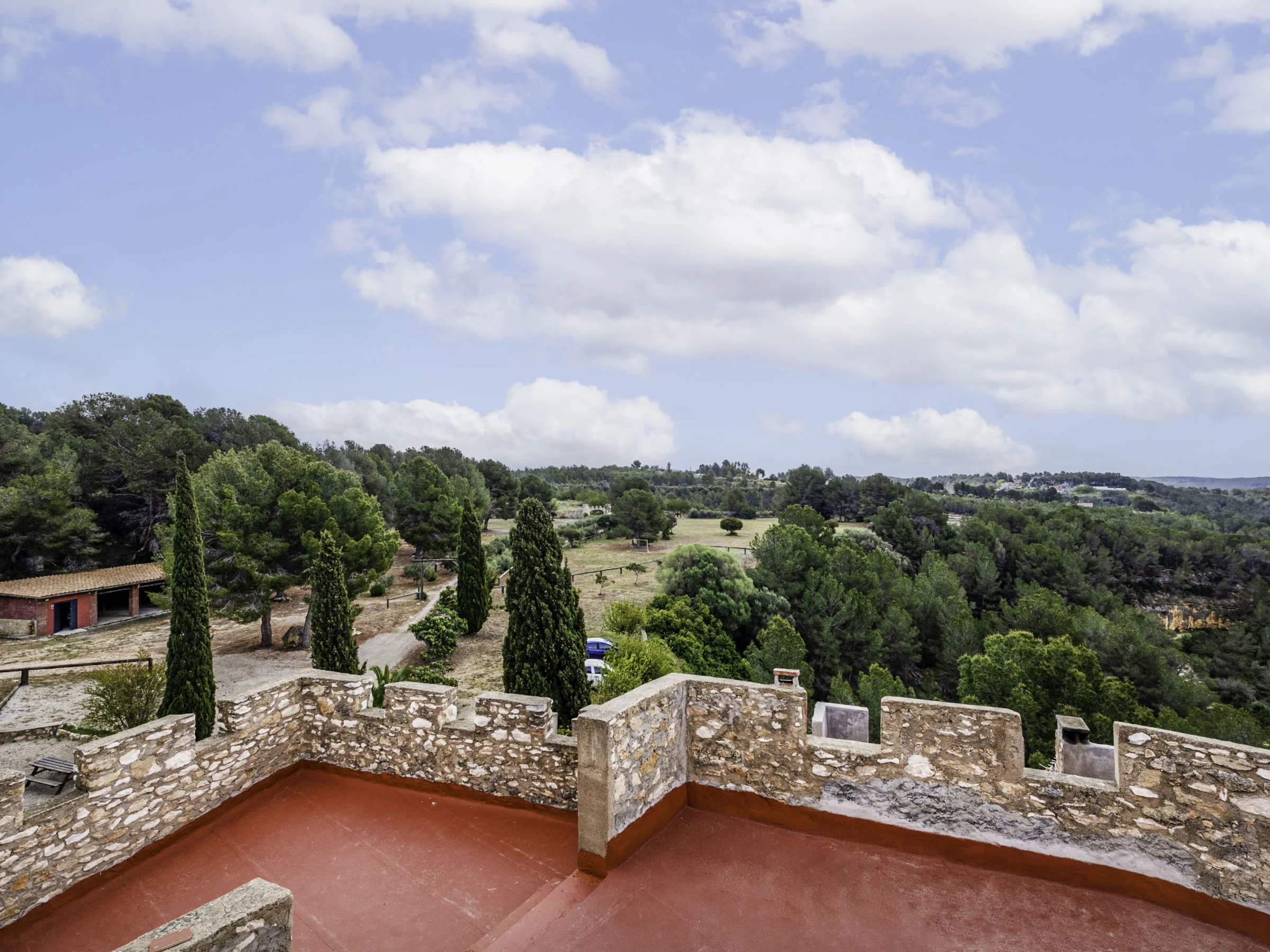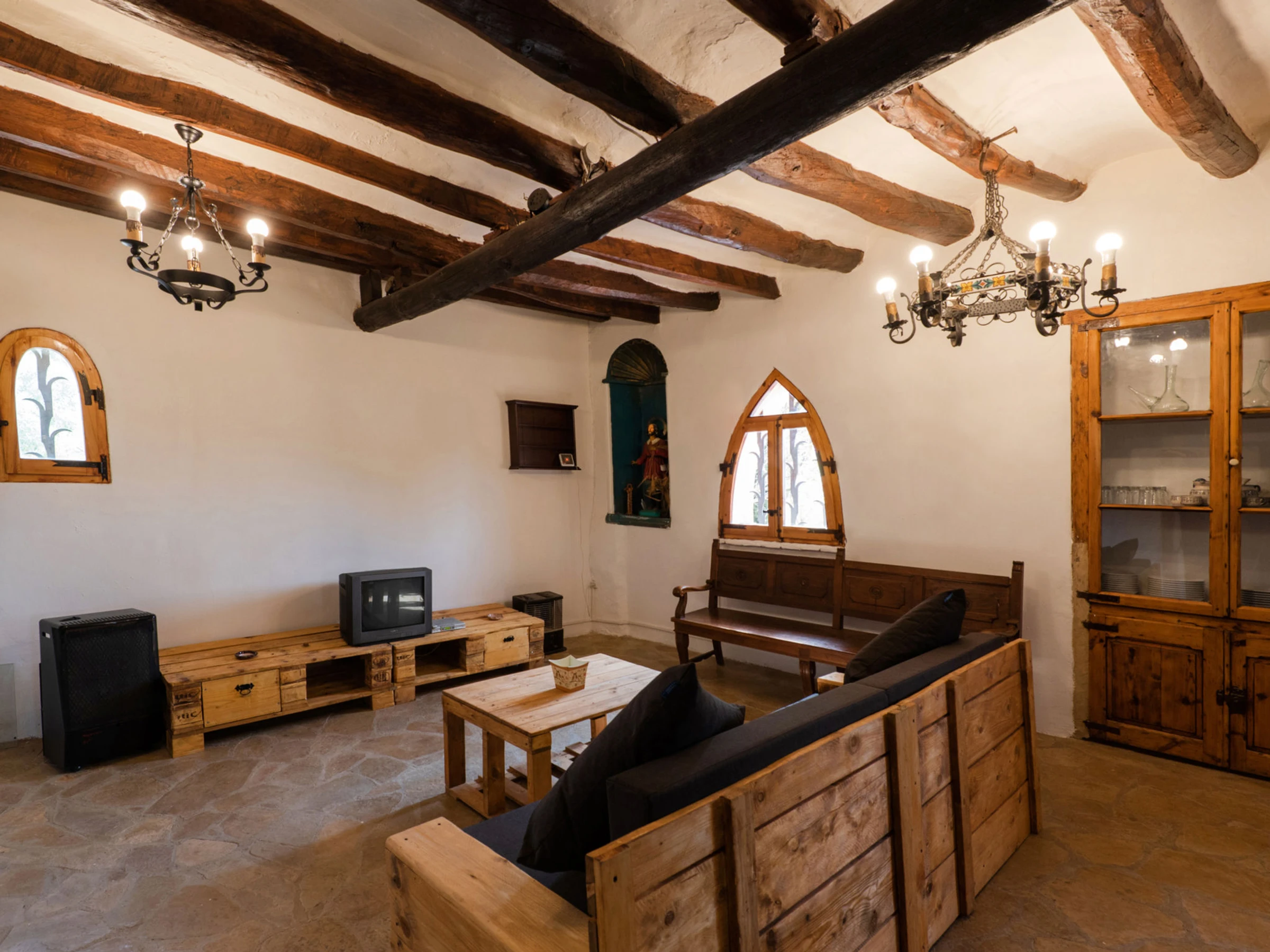 "Mas d´en Tarres", 7-Zimmer-Bauernhaus 460 m2. Objekt geeignet für 20 Erwachsene. Geräumig, sehr einfach und rustikal eingerichtet: Wohn-/Esszimmer mit offenem Kamin. 1 Zimmer mit 2 Betten (90 cm, Länge 190 cm), 1 franz. Bett (1 x 135 cm, Länge 200 cm). Offene Küche (4 Kochplatten, Toaster, Mikrowelle, elektrische Kaffeemaschine) mit offenem Kamin, Esstisch und Digital-TV. Bad/Dusche. Obergeschoss: 2 Zimmer, jedes Zimmer mit 2 x 2 Etagenbetten (90 cm, Länge 190 cm). 1 Zimmer mit 1 franz. Bett (1 x 140 cm, Länge 190 cm), offenem Kamin. 1 Zimmer mit 2 Betten (80 cm, Länge 190 cm). 1 Zimmer mit 4 Betten (80 cm, Länge 190 cm). Dusche/WC. Schöne Panoramasicht auf die Landschaft. Zur Verfügung: Waschmaschine, Bügeleisen, Kinderhochstuhl, Babybett bis 2 Jahre, Haartrockner. Internet (WLAN, gratis). Bitte beachten: Maximal 3 Haustiere/Hunde erlaubt. TV nur ES. [hidden] // Reg. Nr.: ESFCTU00004301800001857900000000000000000[hidden]8
